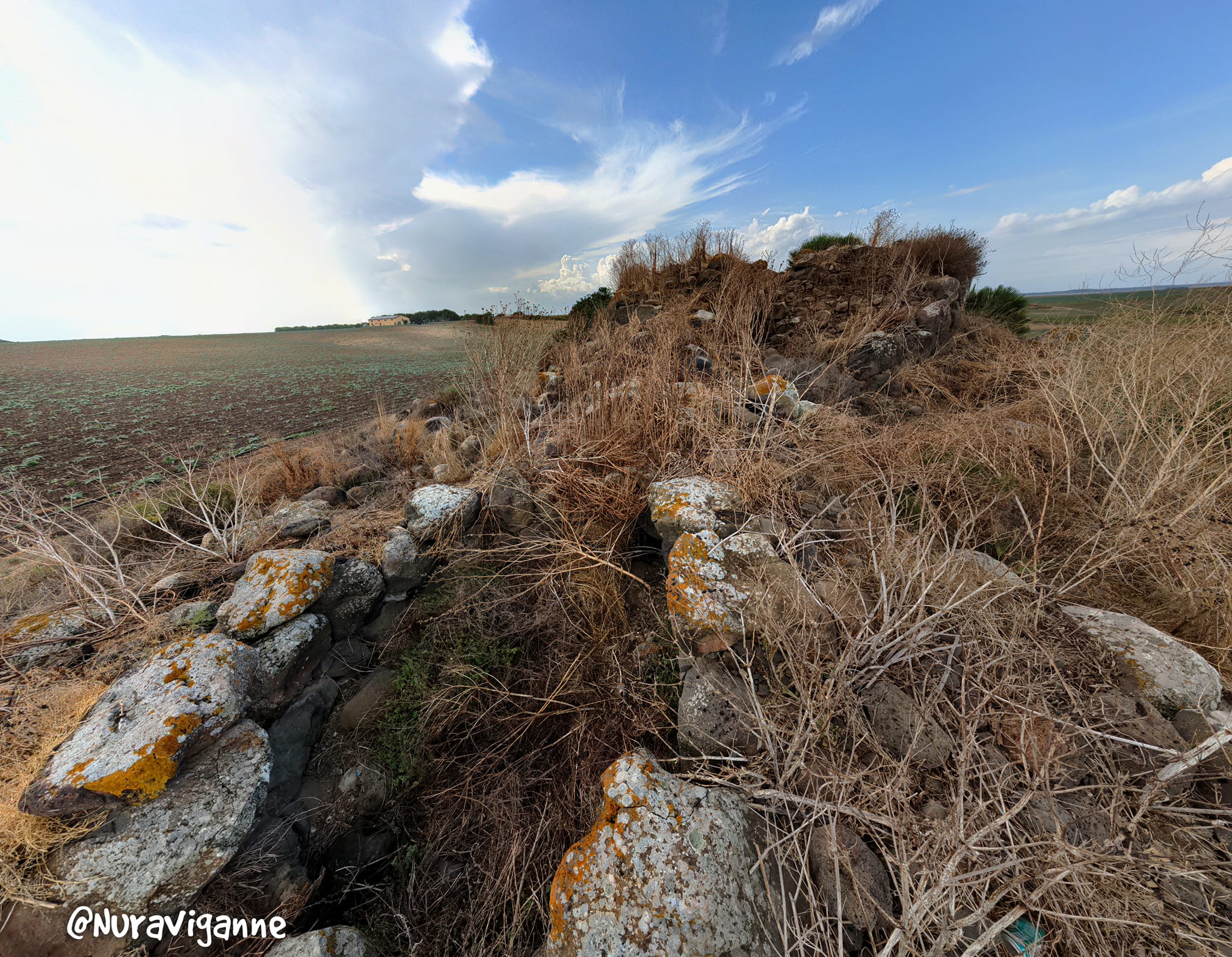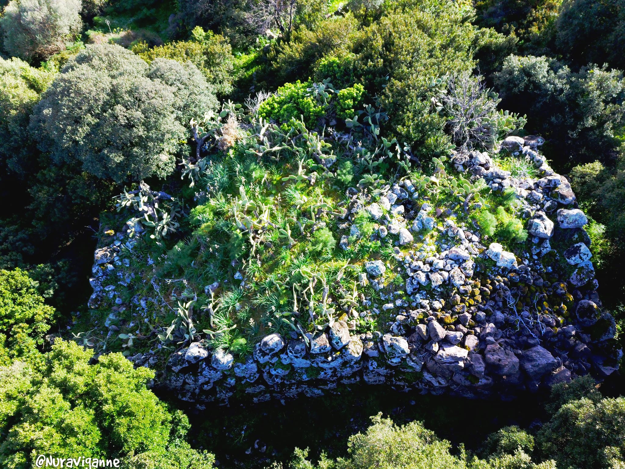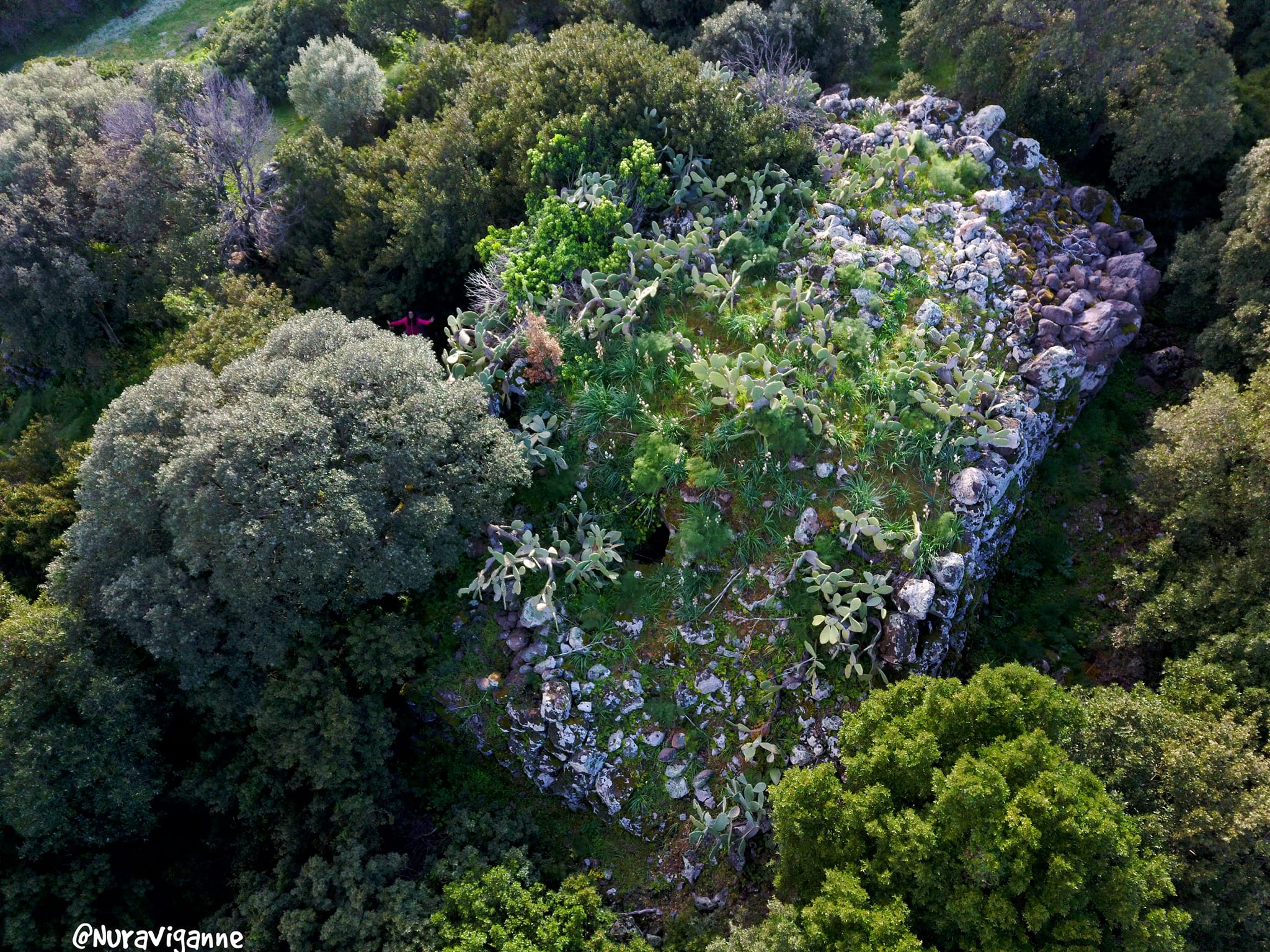 Il nuraghe, di tipo arcaico a corridoio, fabbricato in grandi blocchi poligonali di basalto locale, ha pianta quadrangolare– ellittica. Presenta, osservabili, due ingressi intercomunicanti, rispettivamente sui lati N e S. Gli ingressi si presentano architravati e di forma vagamente trapezoidale. Il corridoio interno è osservabile e si presenta in ottimo stato di conservazione con la consueta copertura costituita da lastroni posizionati a piattabanda. (Giuseppe Maisola)