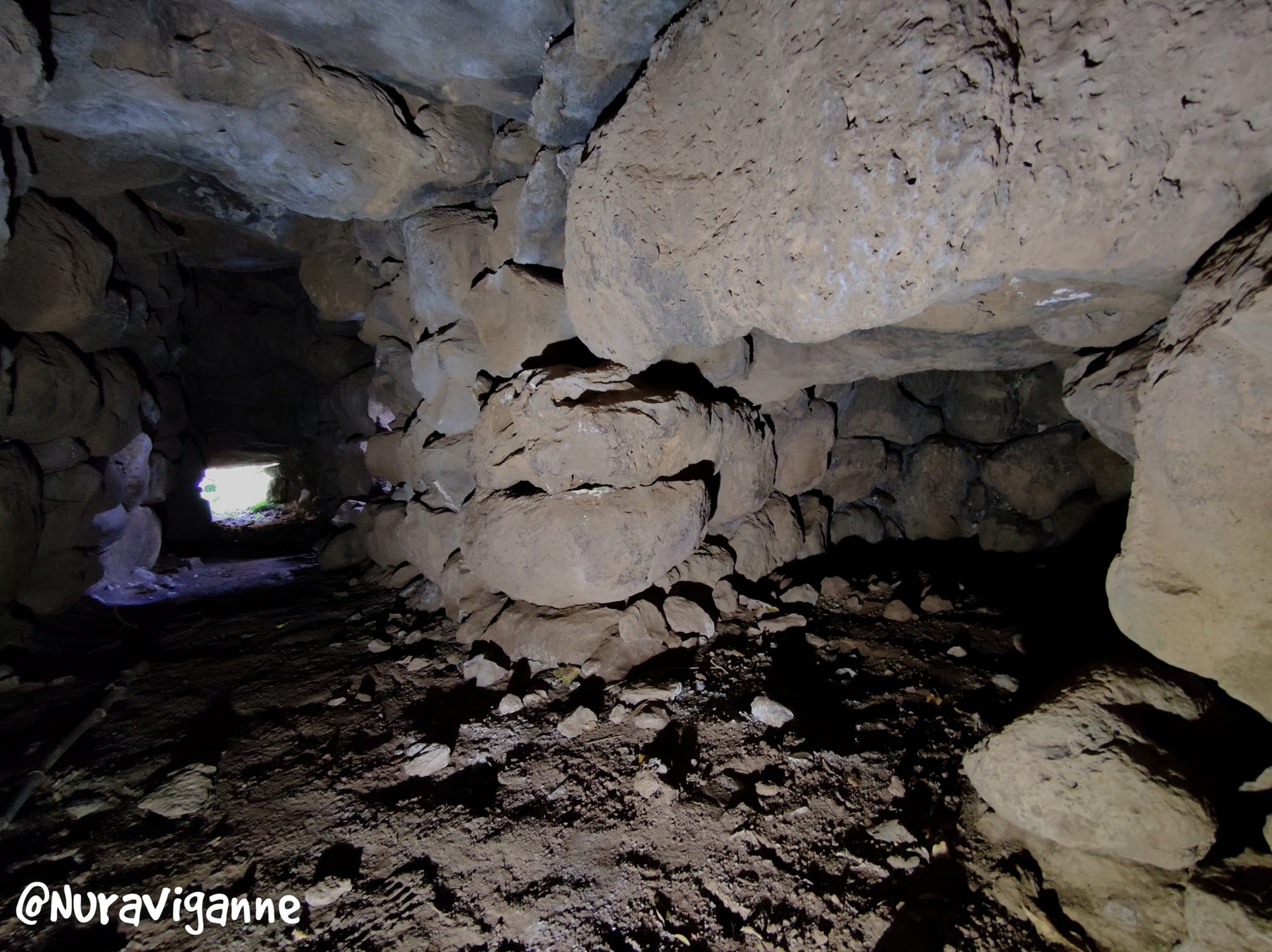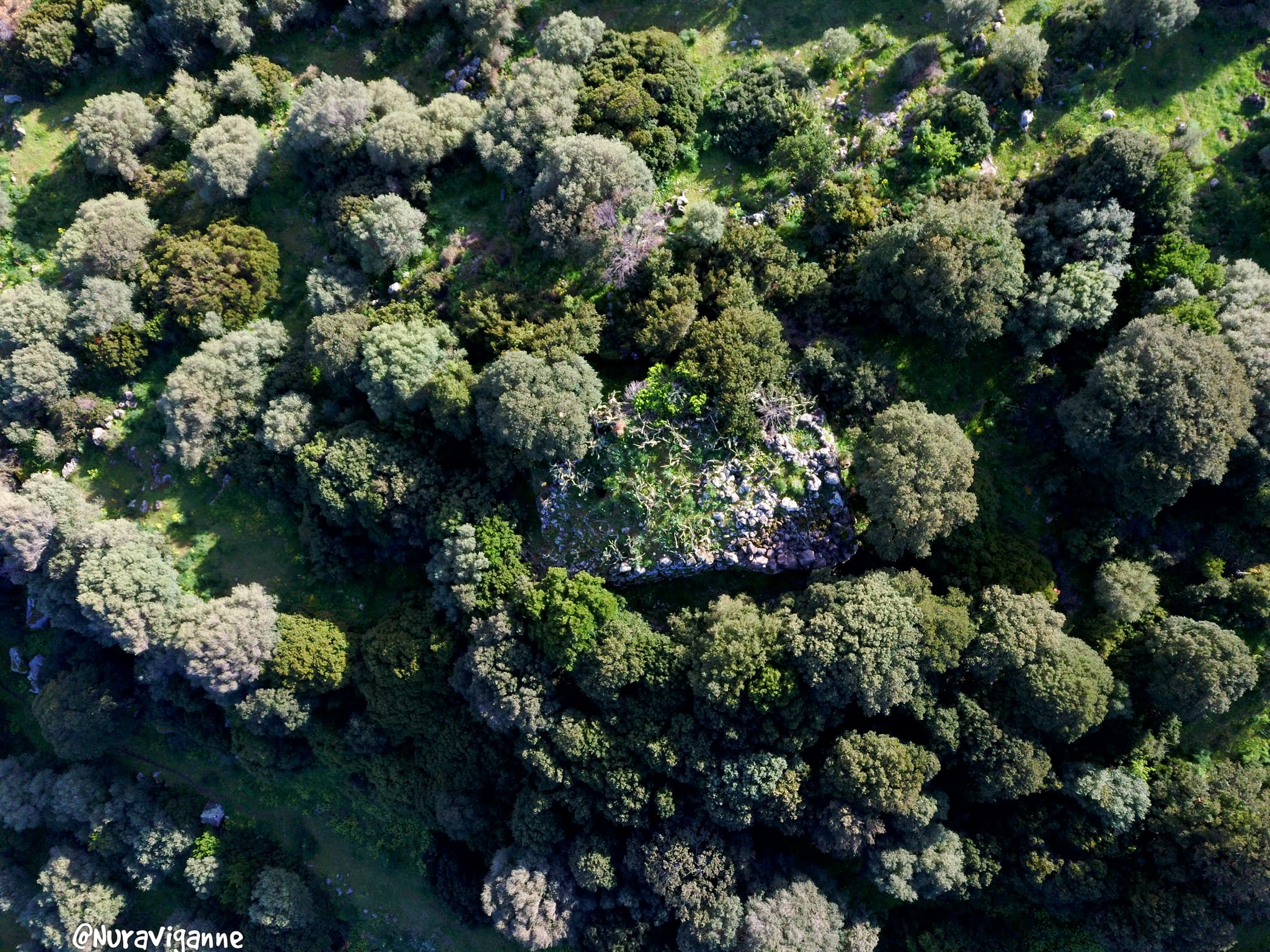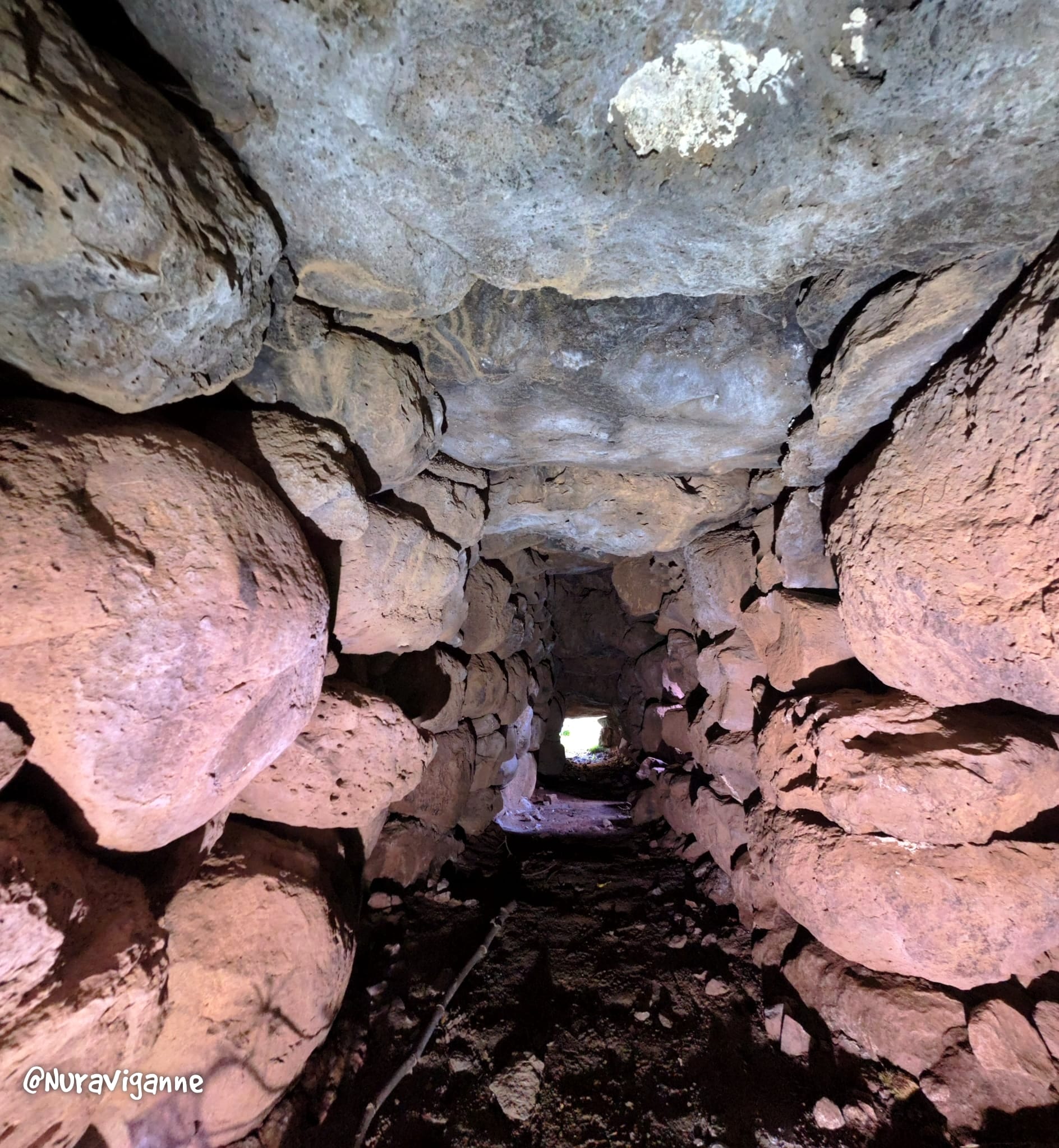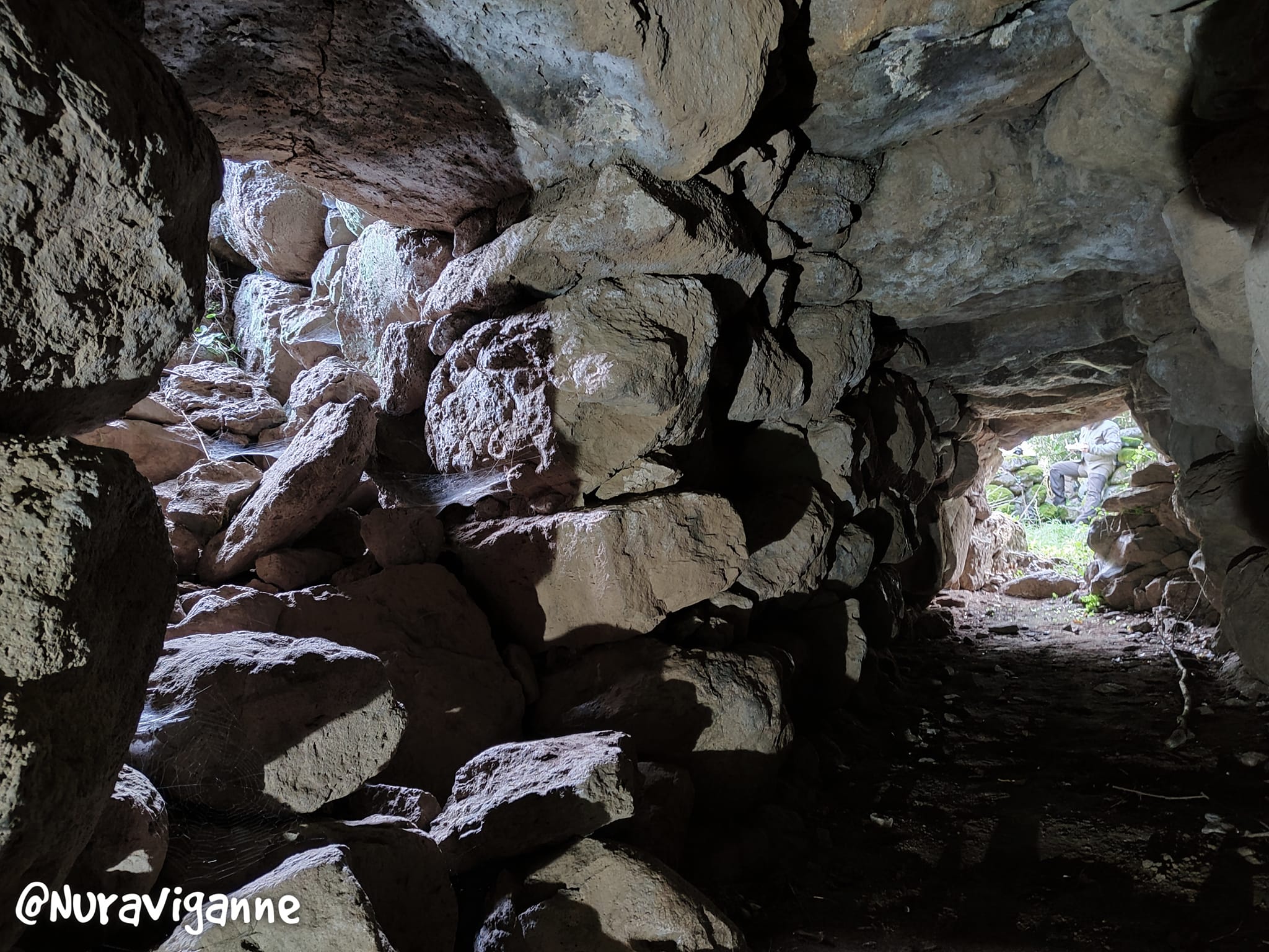 Il nuraghe, di tipo arcaico a corridoio, fabbricato in grandi blocchi poligonali di basalto locale, ha pianta quadrangolare– ellittica. Presenta, osservabili, due ingressi intercomunicanti, rispettivamente sui lati N e S. Gli ingressi si presentano architravati e di forma vagamente trapezoidale. Il corridoio interno è osservabile e si presenta in ottimo stato di conservazione con la consueta copertura costituita da lastroni posizionati a piattabanda. (Giuseppe Maisola)