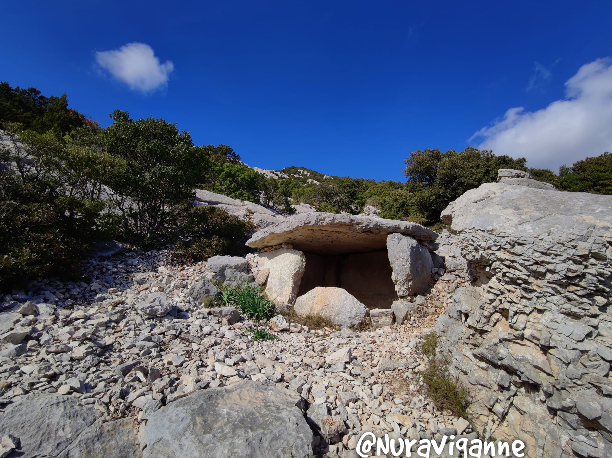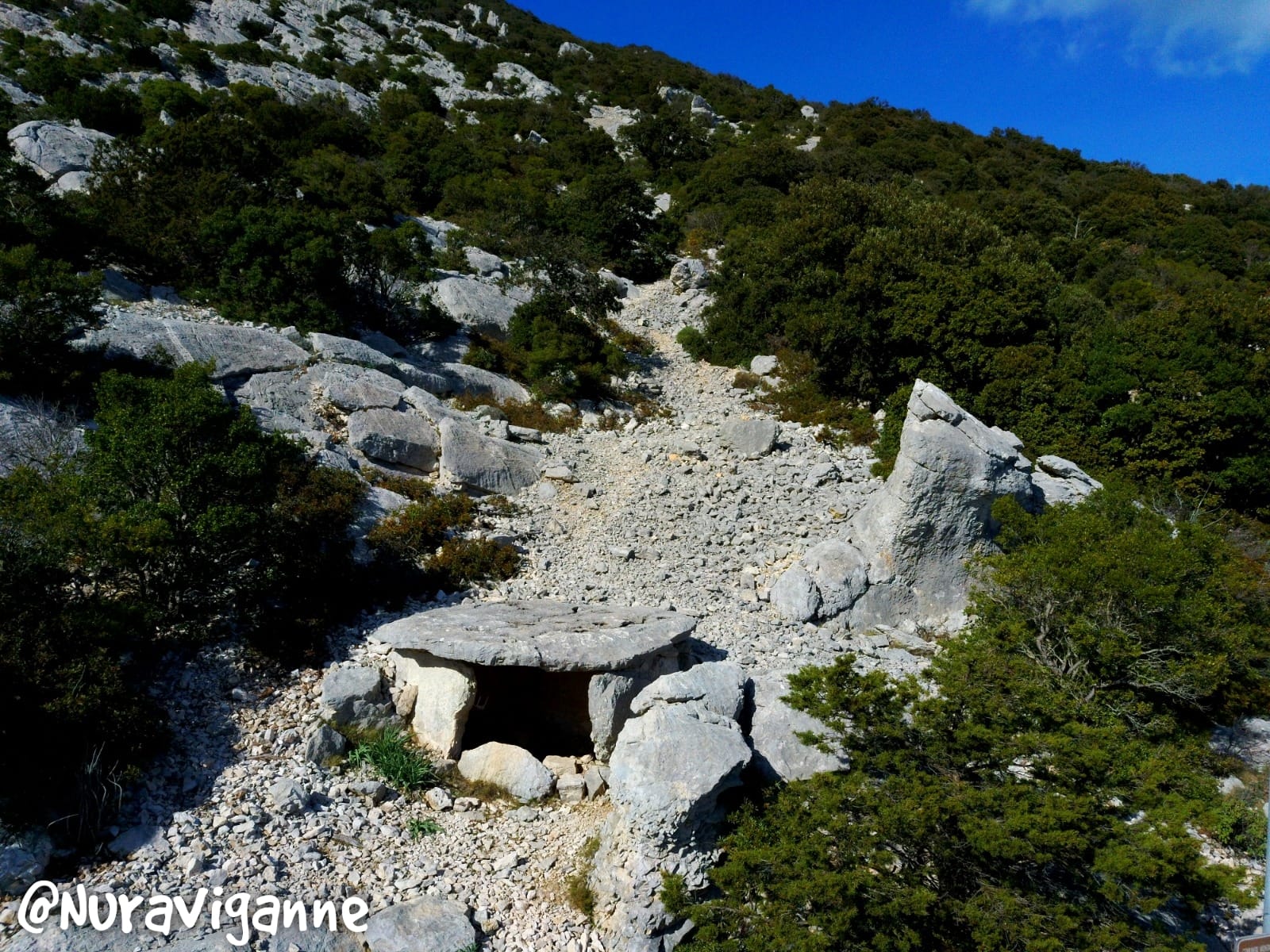 Conosciuto anche col nome di S’Aspru, si trova sulle pendici meridionali del monte Bardia a poca distanza dalla Roccia de Monte Longu, ad una altezza di 513 m s.l.m. e domina l’ampia valle che guarda verso il centro di Cala Gonone. È raggiungibile attraverso un piccolo trekking. Di pianta rettangolare in pietra calcarea è costituito da quattro lastroni parallelepipedi (in origine dovevano essere cinque) che delimitano un’ampia camera coperta da un lastrone pentagonale.