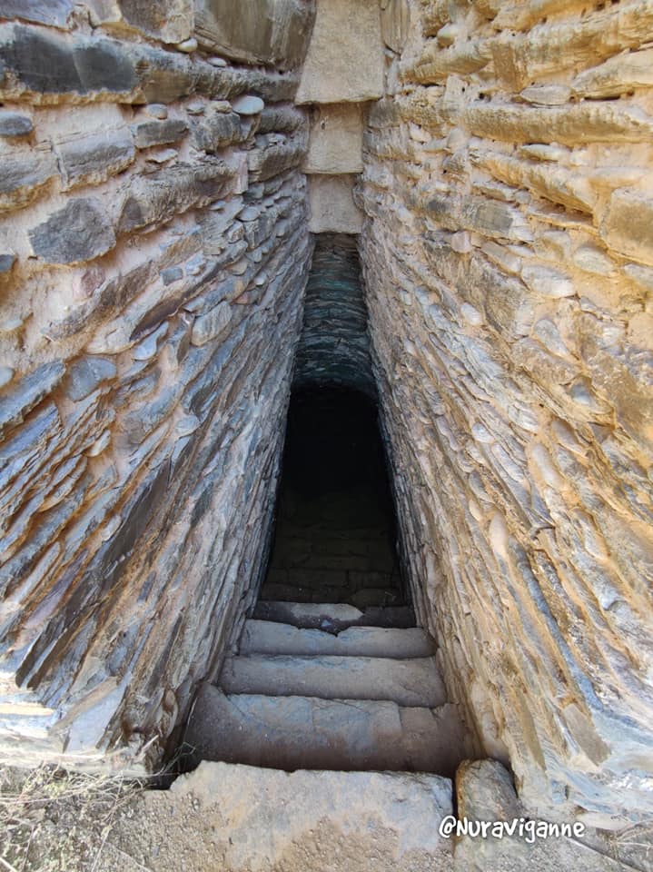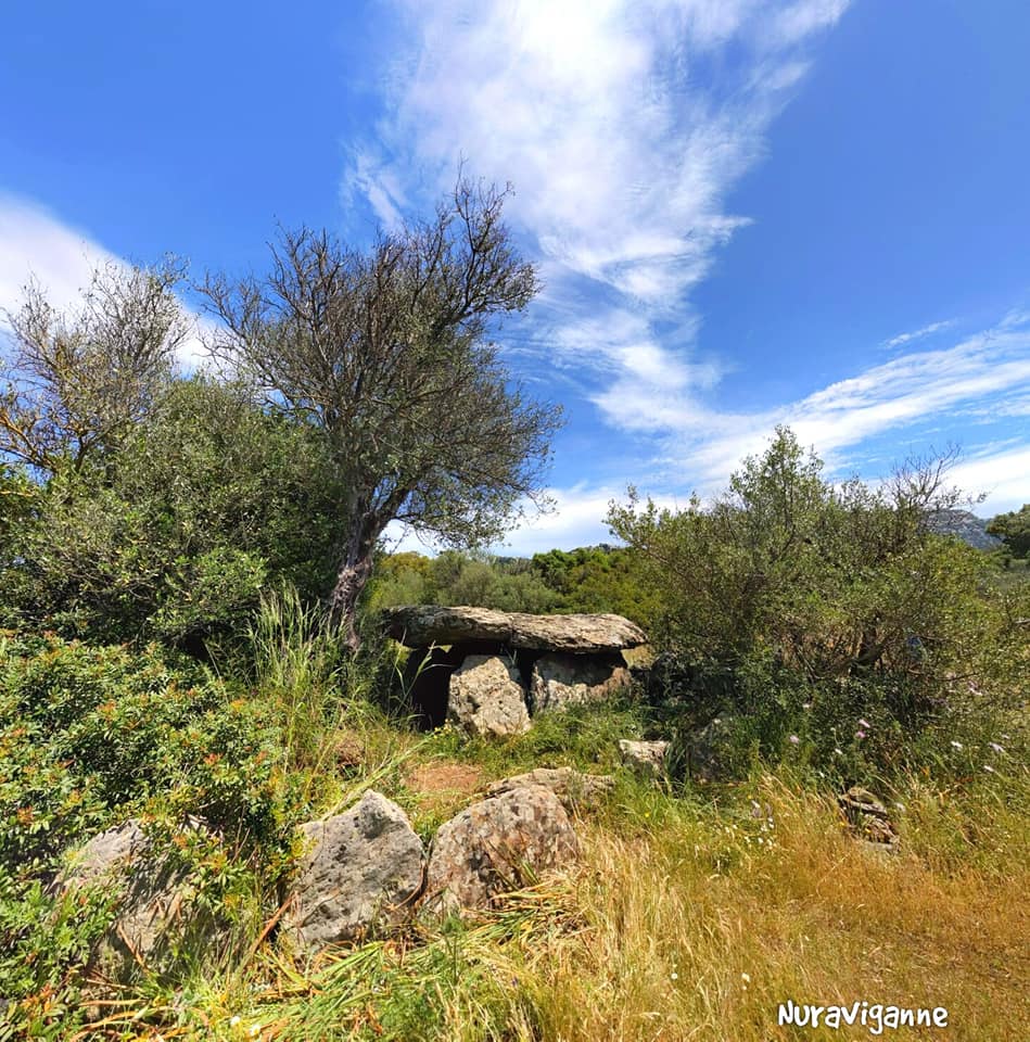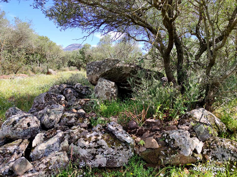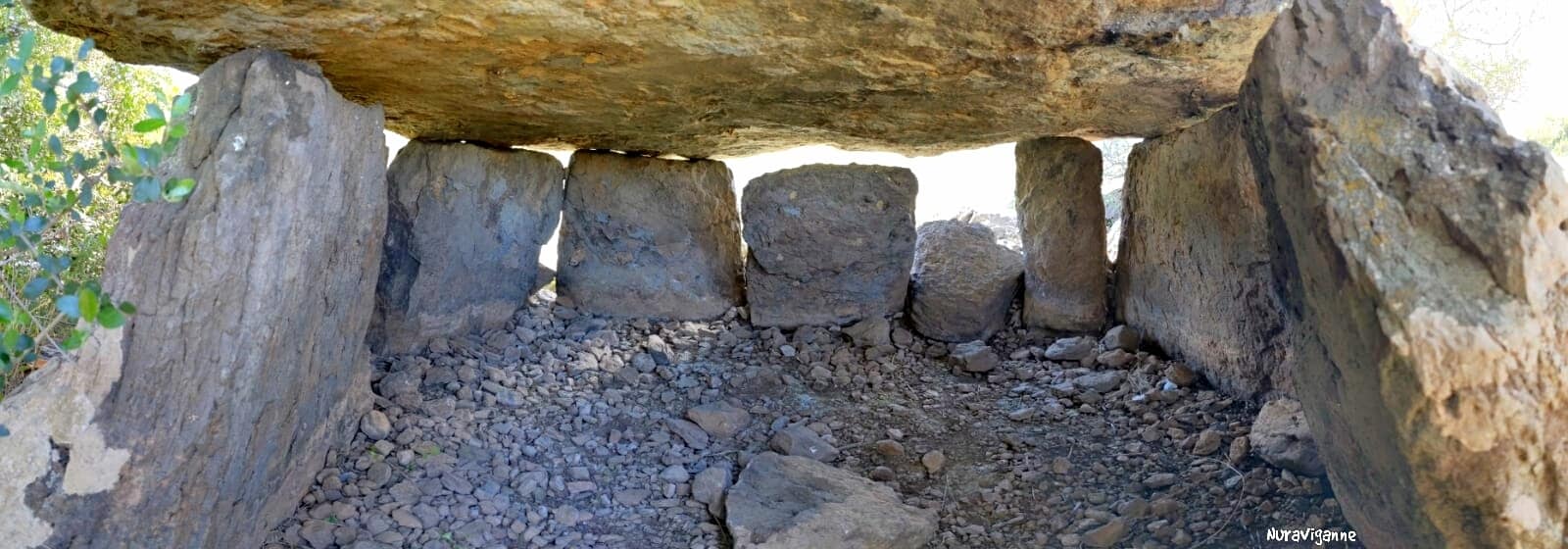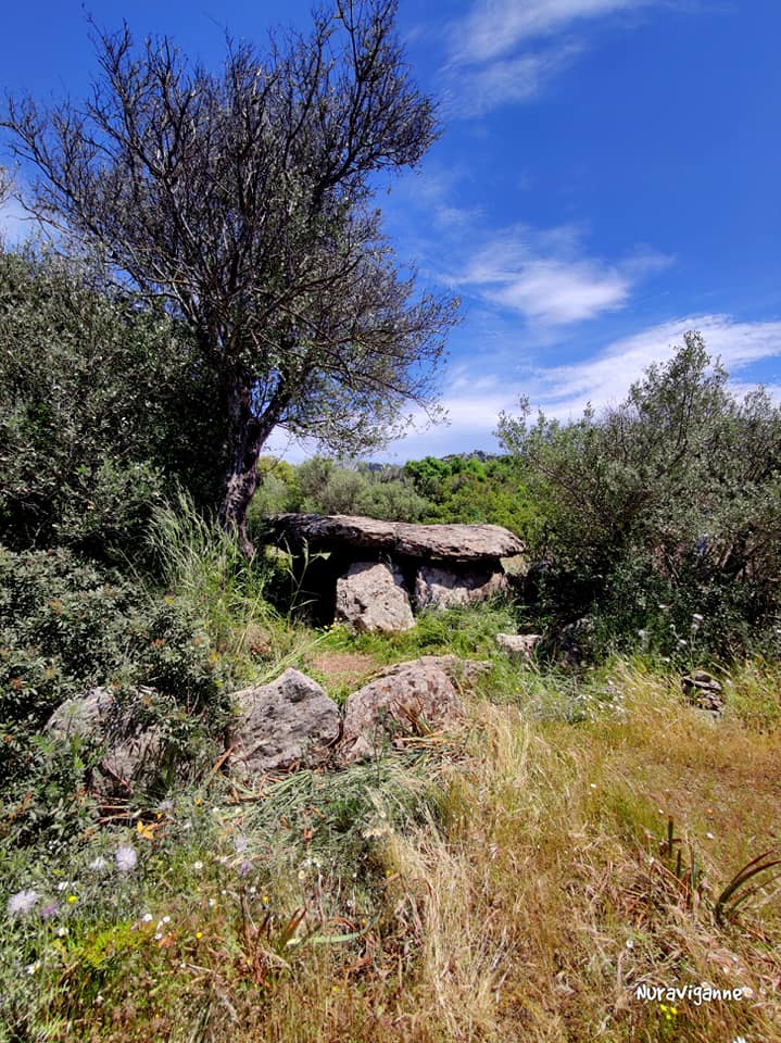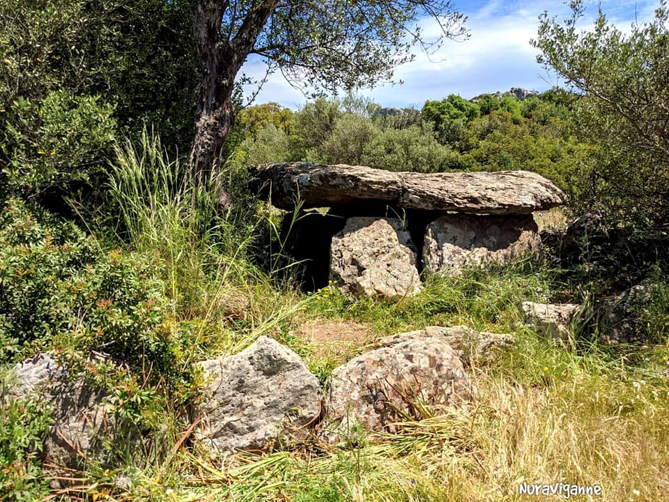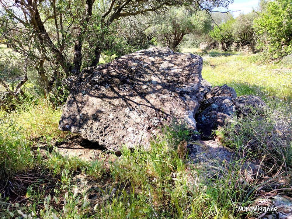 La struttura è composta da una grande lastra basaltica orizzontale che poggia su sette pietre più piccole che formano una camera poligonale. Intorno è presente un circolo di pietre che doveva essere il contenimento della terra che formava il tumulo di copertura. La costruzione di questo monumento funerario viene fatta risalire al terzo millennio a.C.