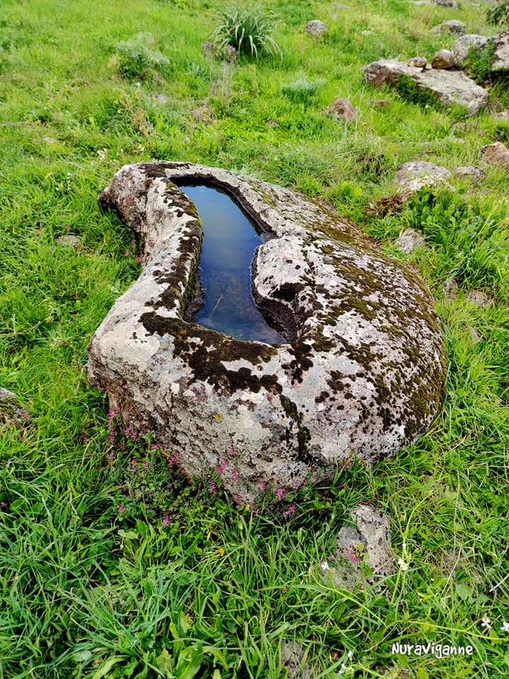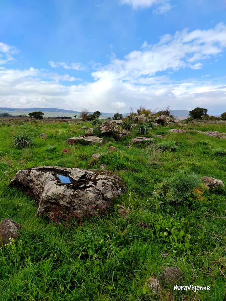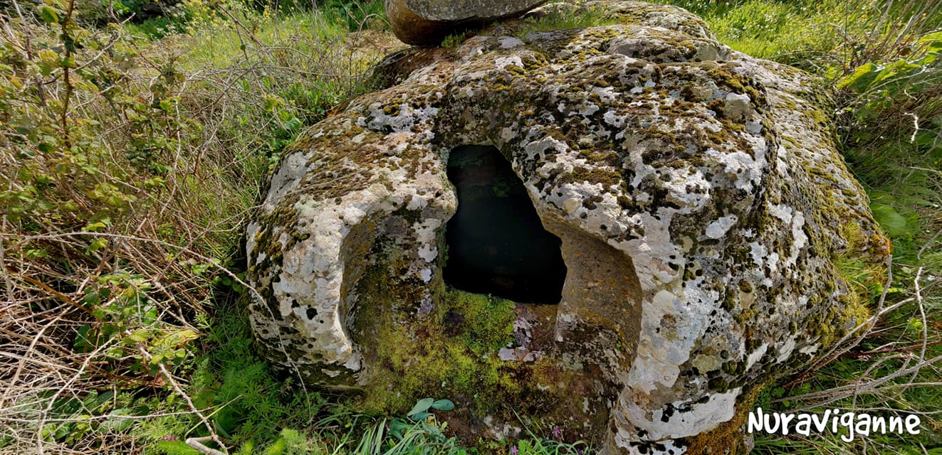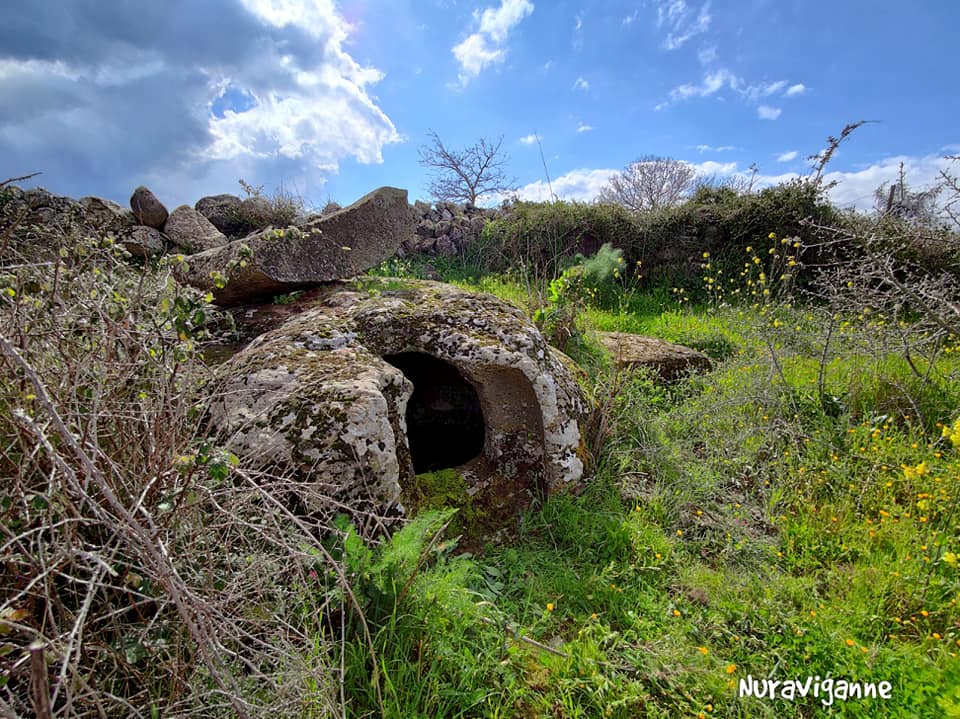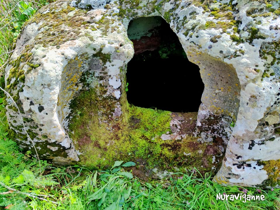 Sepoltura di epoca nuragica scarsamente leggibile nel suo profilo di pianta. Residua solamente un frammento della stele centinata.