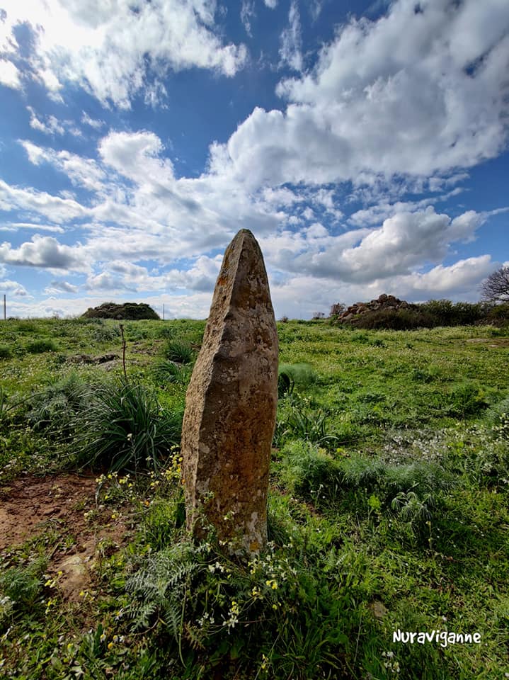 A breve distanza della tomba ipogeica di Putzu, al di là della strada agraria che attraversa la località di Busola, sono stati individuati due menhir. Uno dei menhir risulta ancora infisso nel terreno nella sua posizione originaria. Un secondo menhir, a profilo laterale appuntito e a sezione ellittica nel lato maggiore piatto, si trova inglobato nello stipite dell’ingresso al campo. (A.Moravetti)