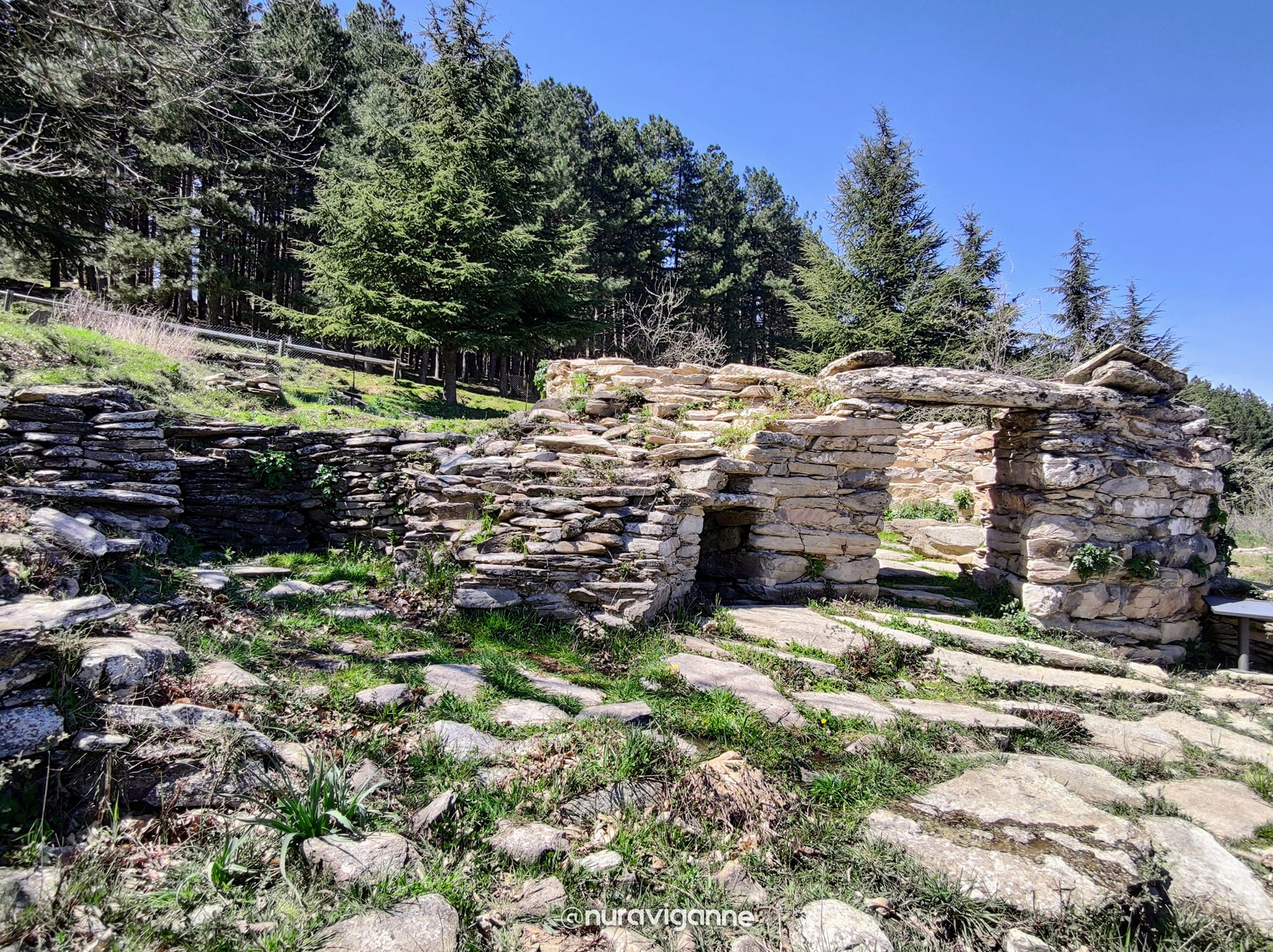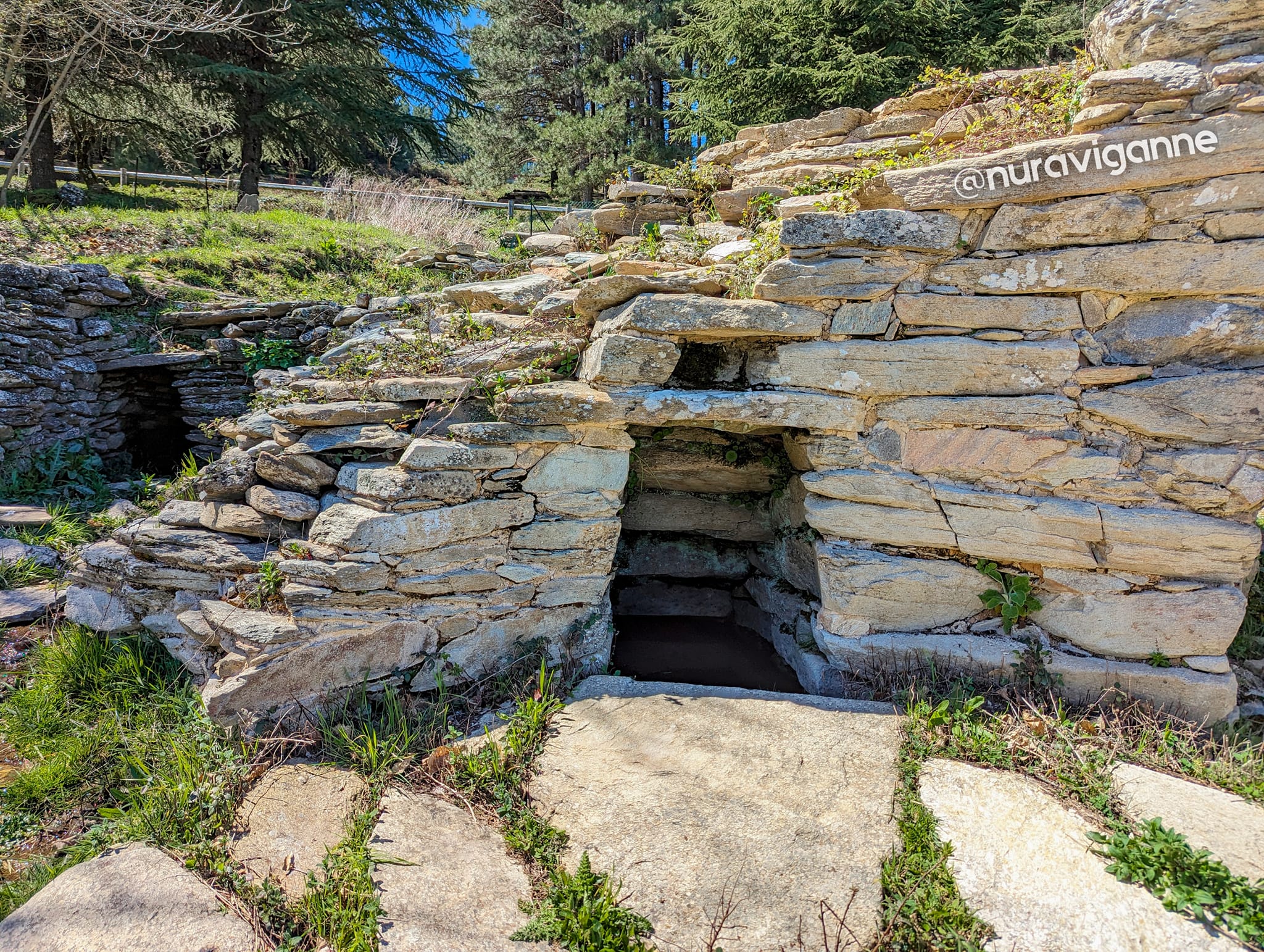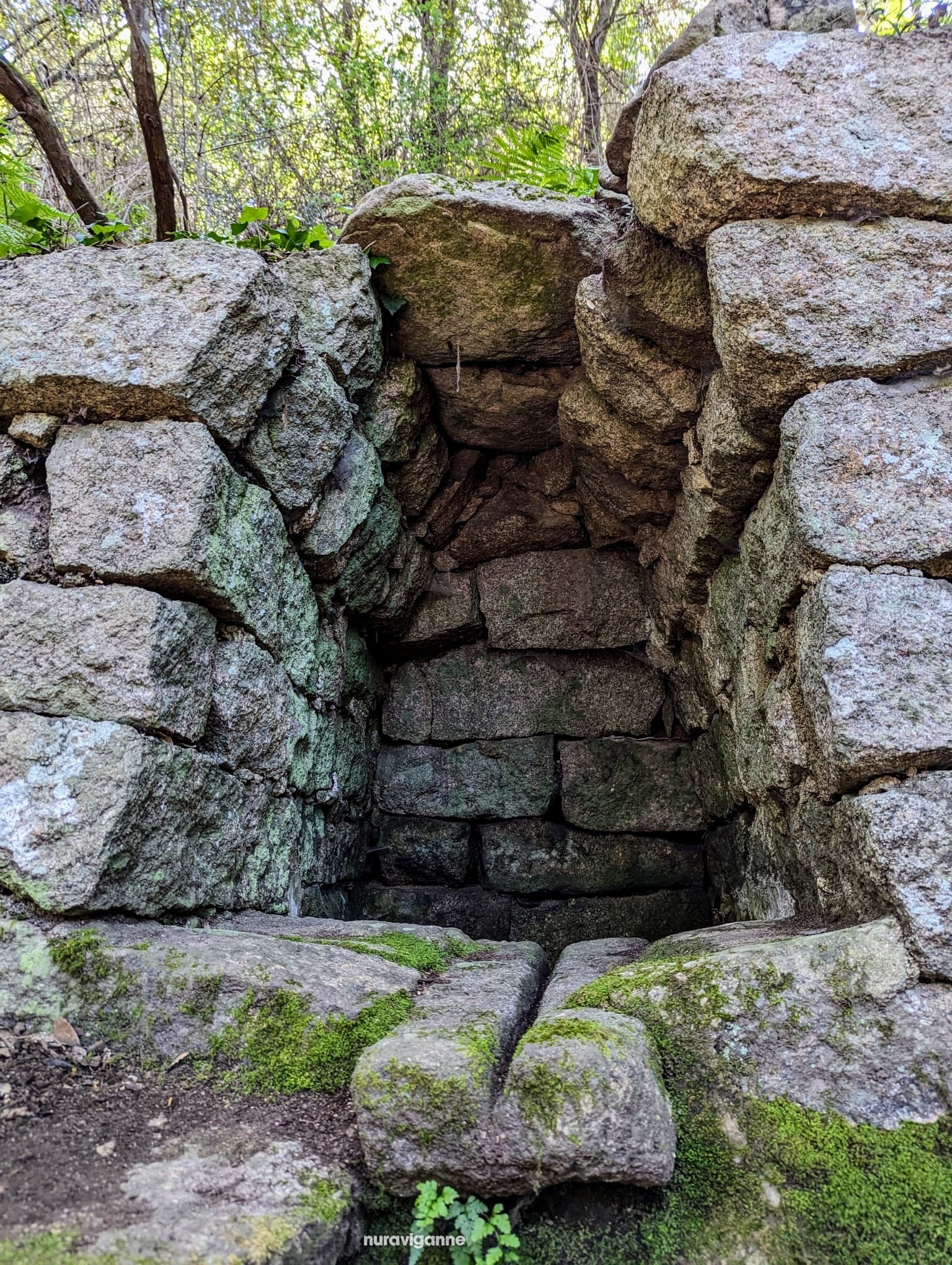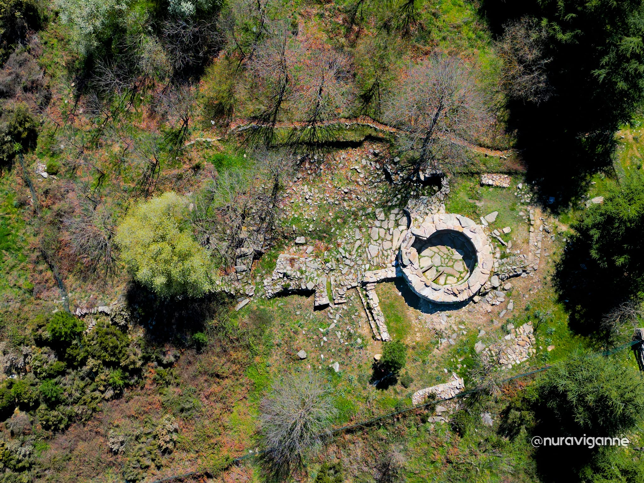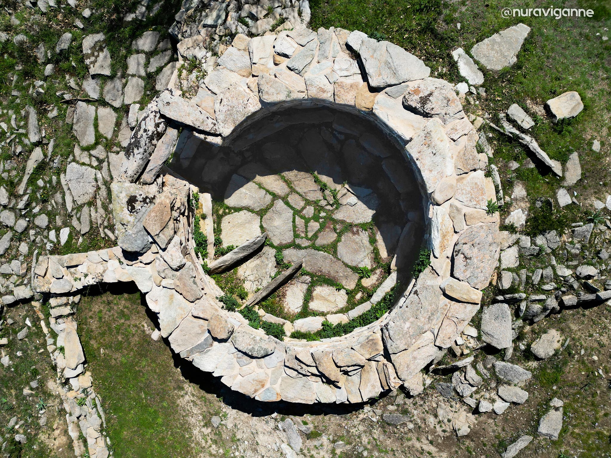 Il complesso consta di due pozzi sacri, una grande capanna e altri ambienti. I vari manufatti sono delimitati da muretti a secco montati a spina di pesce.
