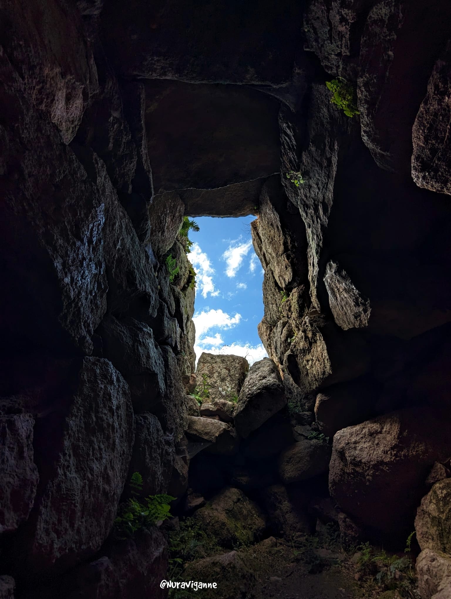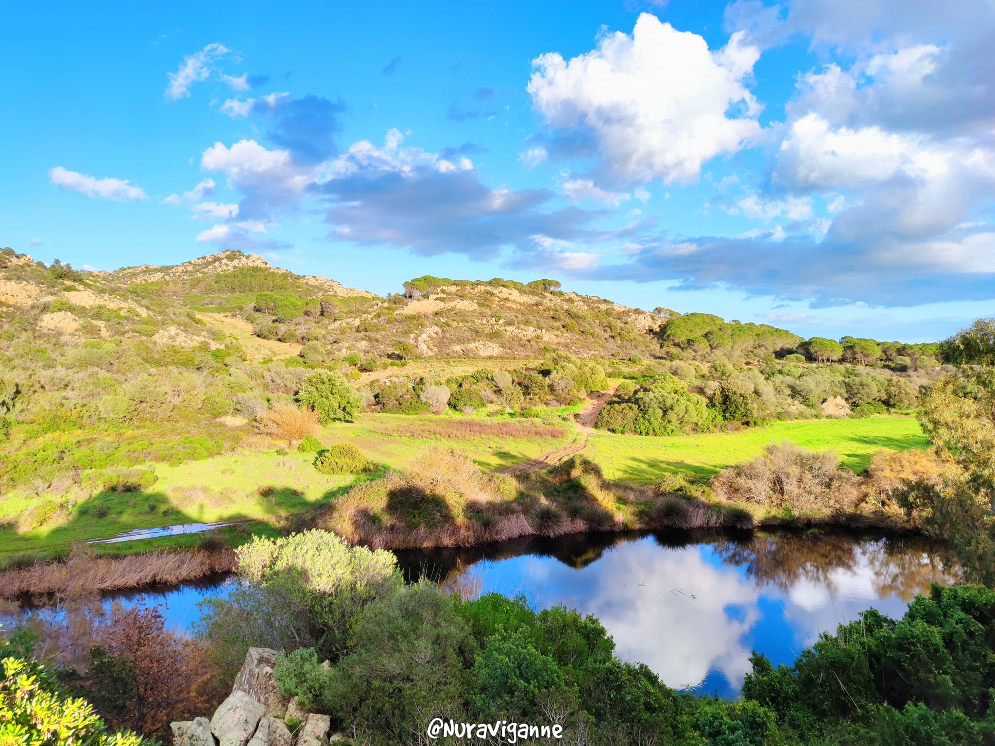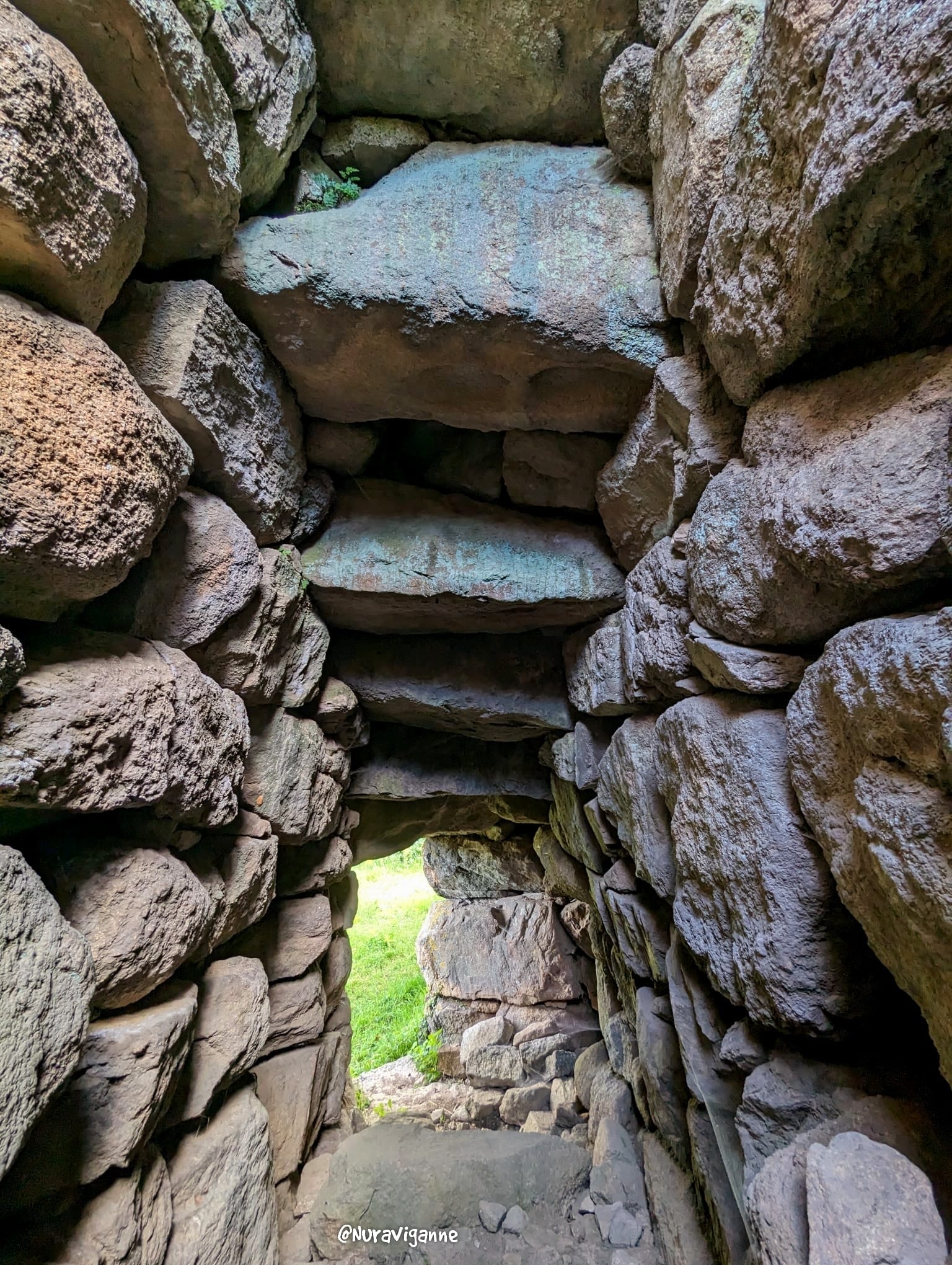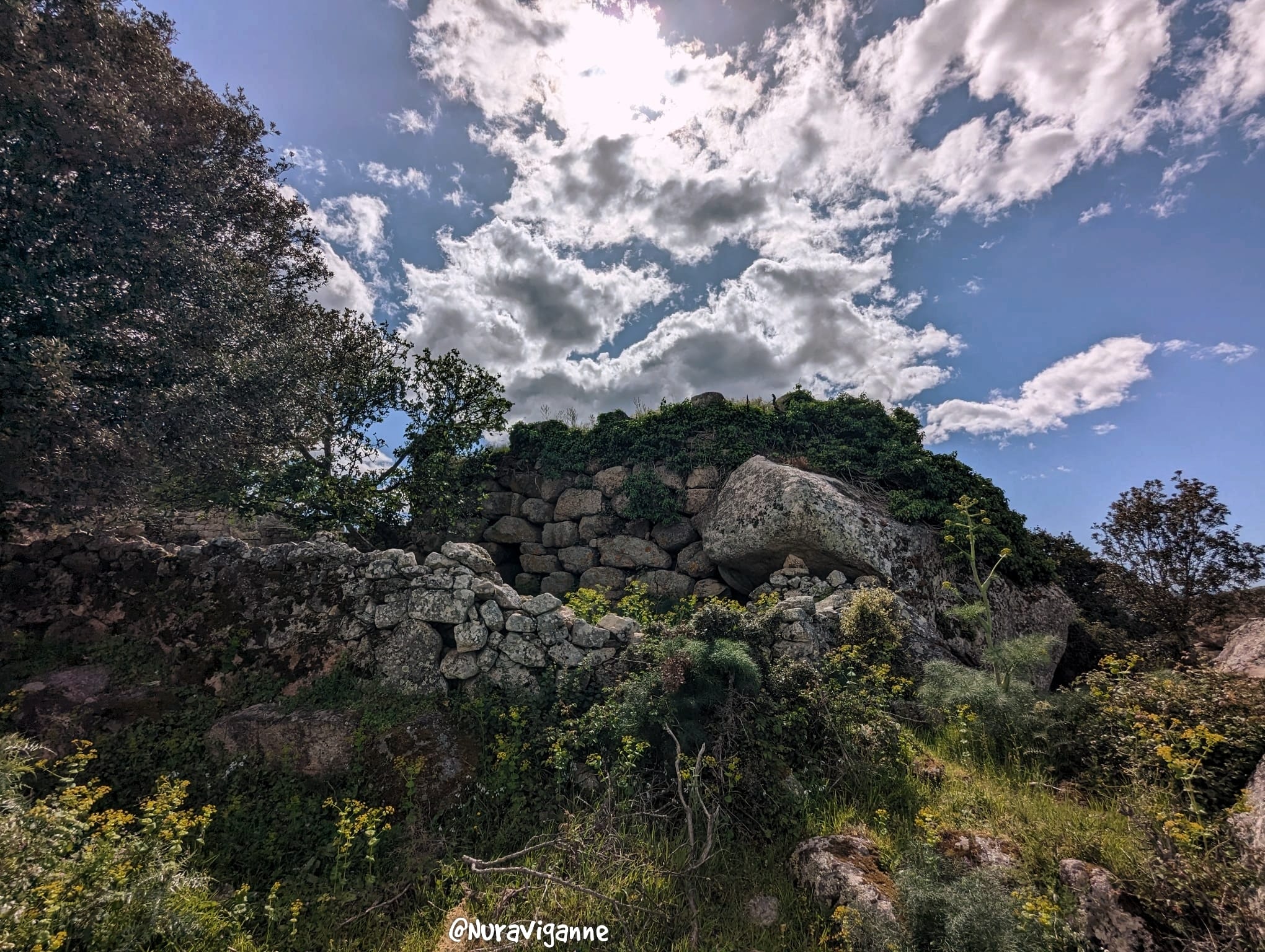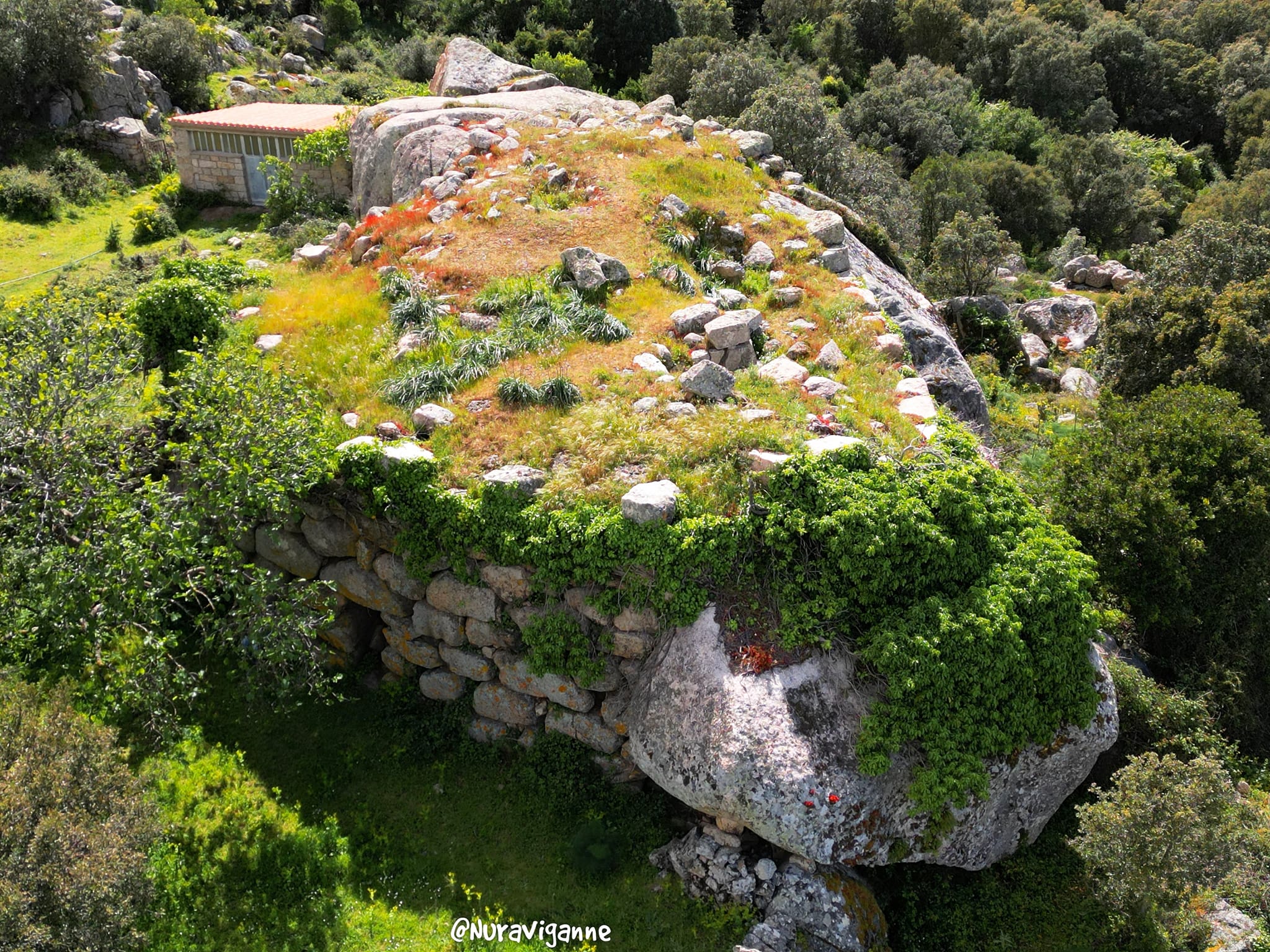 Il Nuraghe Agnu è realizzato in granito, con pianta a ferro di cavallo, in quanto è in parte addossato alla parete rocciosa. Presenta un monumentale ingresso, orientato a est e dotato di architrave, da cui si penetra in un corridoio che era caratterizzato da una porta scorrevole in legno, che scendeva dall’alto. Sui lati si aprono due corridoi , uno dei quali porta ad una celletta cupolata, l’altro passa all’interno dal muro e porta all’esterno, attraverso la roccia naturale.