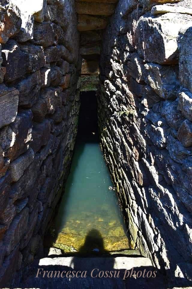 Realizzato in blocchi di granito, è composto da un cortile circolare, dal vestibolo, piccolo ambiente di raccordo tra il cortile e il pozzo, e dal pozzo vero e proprio, raggiungibile dal vestibolo tramite alcuni gradini; la sorgente si trova a 17 gradini di profondità Scavato interamente nel 1938, il pozzo sacro di Sa Testa, ha una lunghezza complessiva di 17,50 metri. Era un luogo di culto delle acque sorgive. Numerosi sono i reperti rinvenuti negli scavi, come dei bruciaprofumi di età punica.