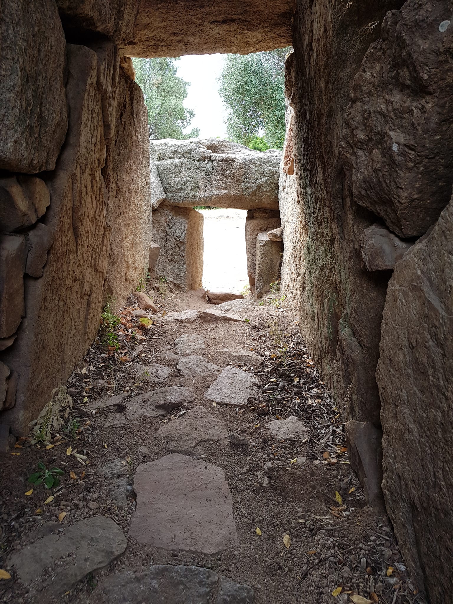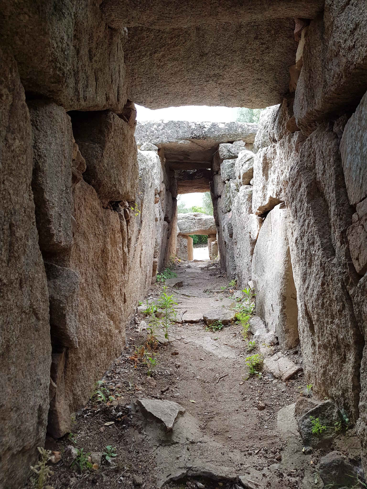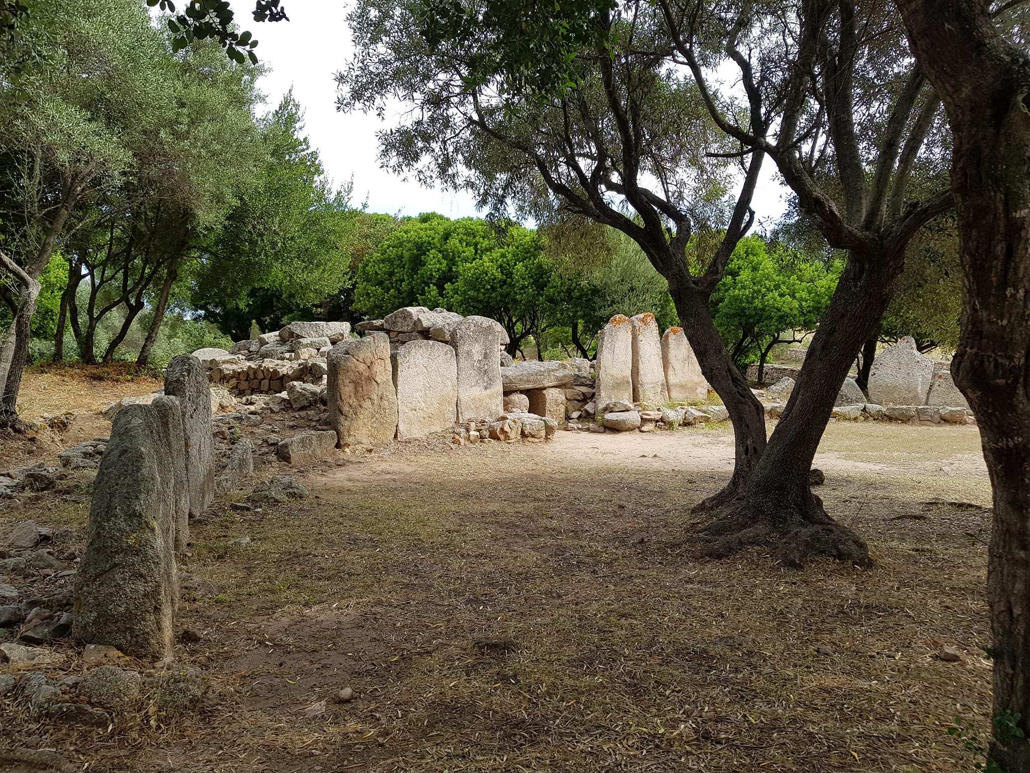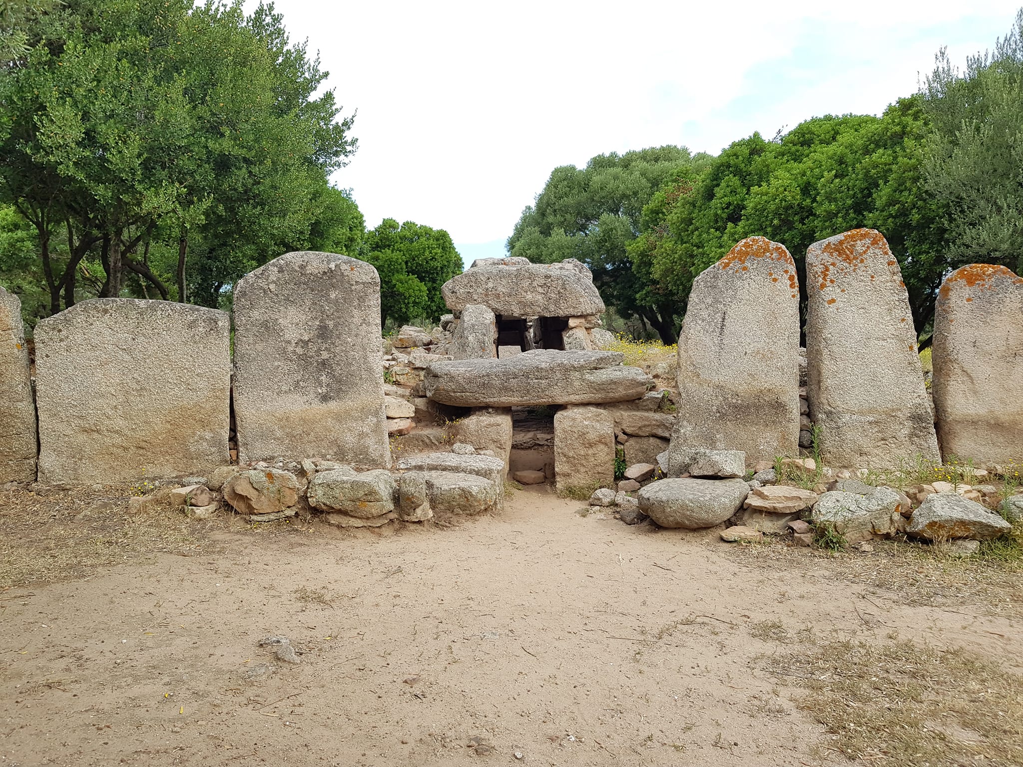 La costruzione fu edificata in due fasi. Nella prima, risalente al periodo della cultura di Bonnanaro, venne costruita la tomba ad allée couverte – una sorta di dolmen allungato -, successivamente, attorno al 1600 a.C., fu trasformata in tomba di Giganti con esedra e stele, delle quali potrai ammirare alcune tracce.