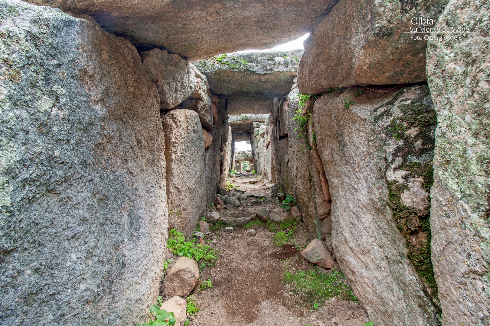 La costruzione fu edificata in due fasi. Nella prima, risalente al periodo della cultura di Bonnanaro, venne costruita la tomba ad allée couverte – una sorta di dolmen allungato -, successivamente, attorno al 1600 a.C., fu trasformata in tomba di Giganti con esedra e stele, delle quali potrai ammirare alcune tracce.