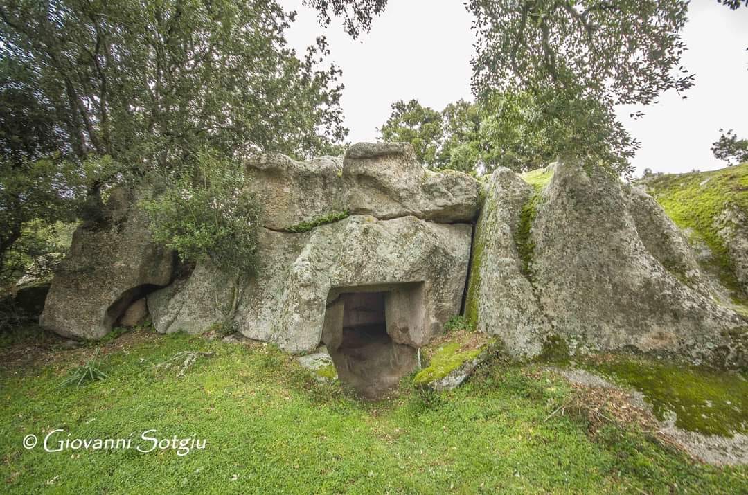 La necropoli è scavata in un affioramento granitico dell’altopiano di Buddusò. E’ costituita da 6 ipogei e datata al 3200-2800 a.C. Alcune domus presentano ambienti monocellulari mentre altre hanno pianta pluricellulare. Una delle domus riportano tracce di pittura murale rossa a bande parallele su fasce in rilievo.