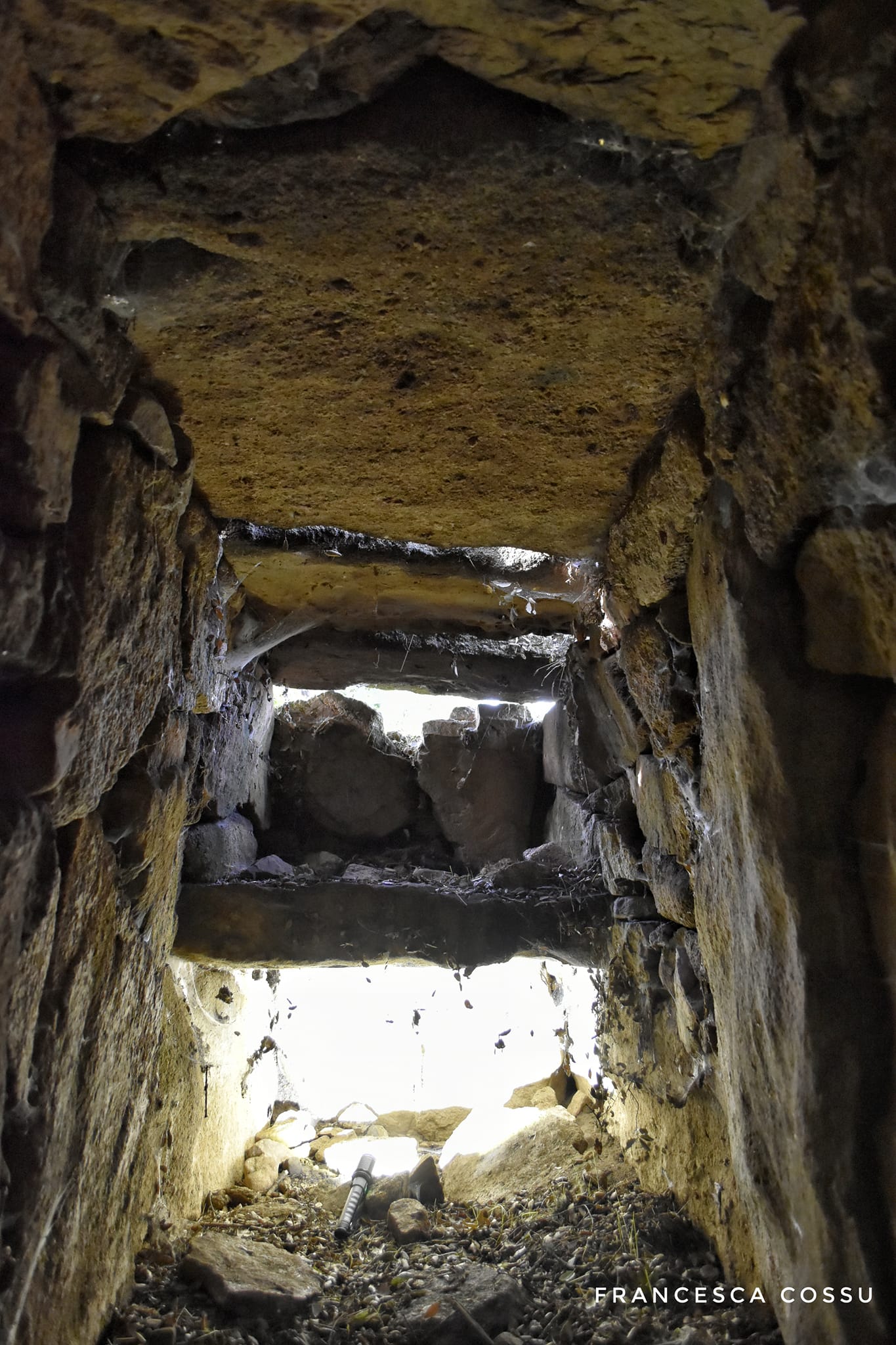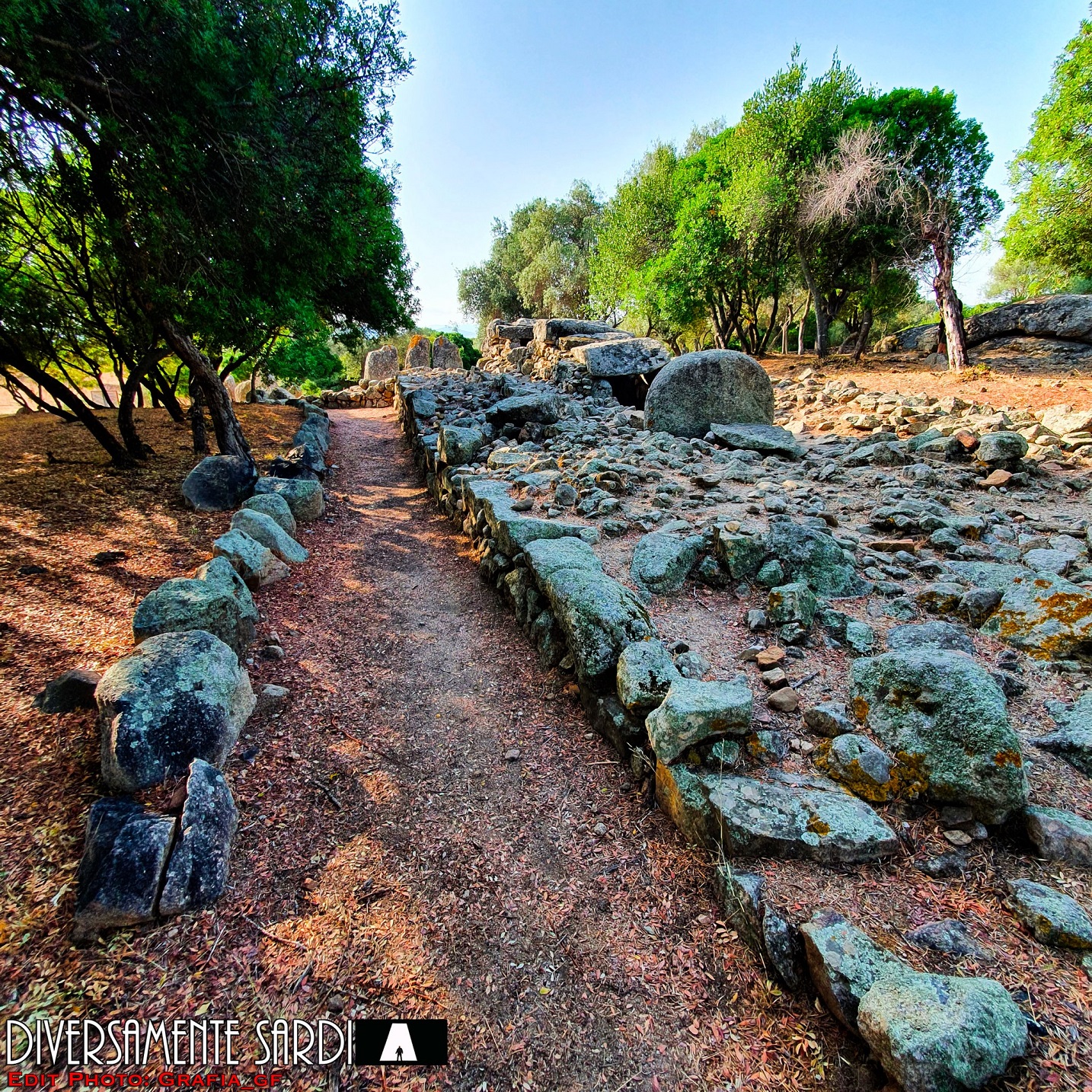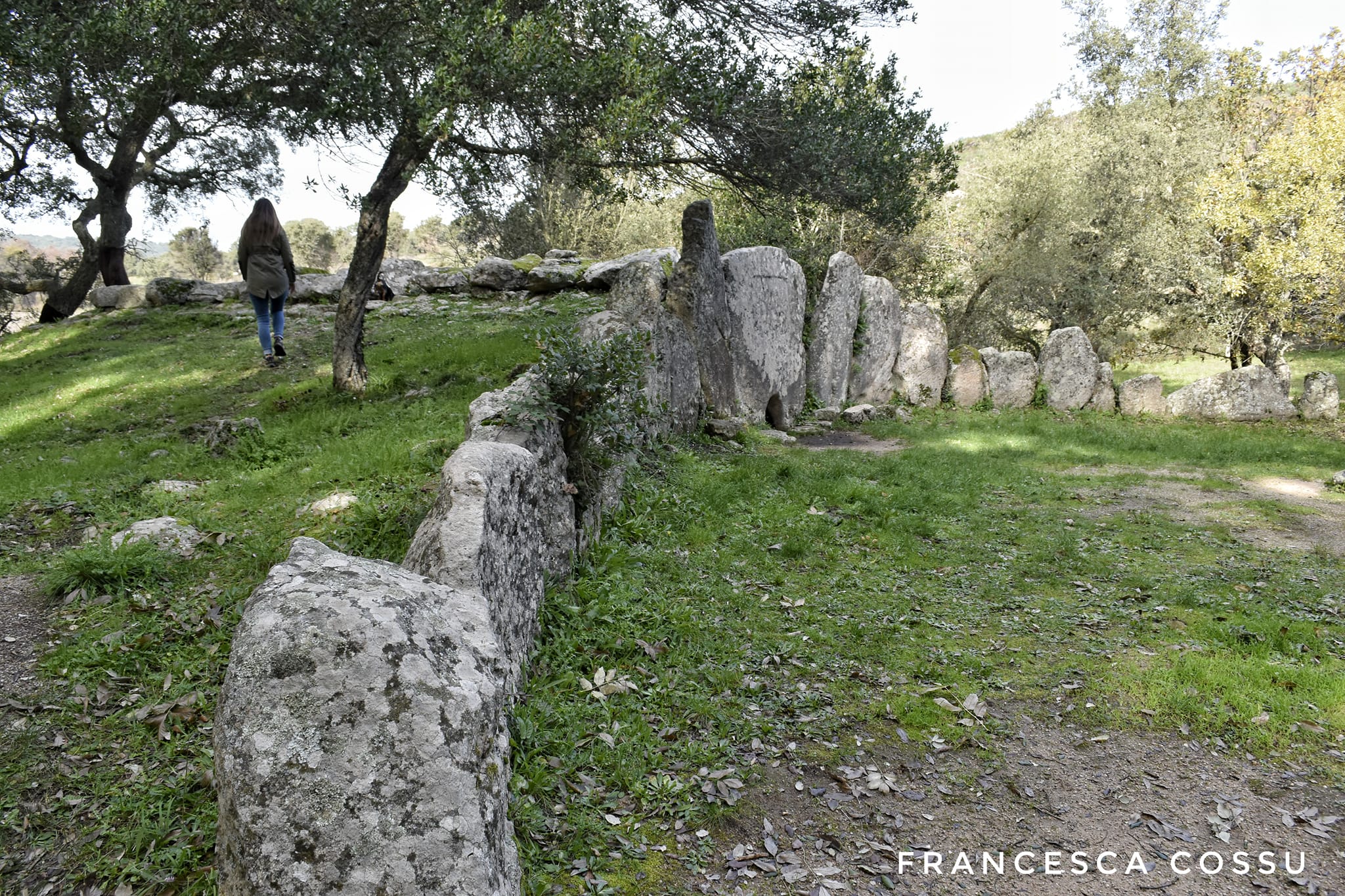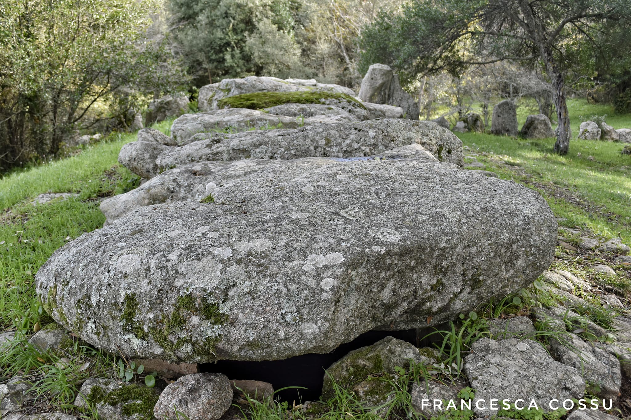La costruzione fu edificata in due fasi. Nella prima, risalente al periodo della cultura di Bonnanaro, venne costruita la tomba ad allée couverte – una sorta di dolmen allungato -, successivamente, attorno al 1600 a.C., fu trasformata in tomba di Giganti con esedra e stele, delle quali potrai ammirare alcune tracce.