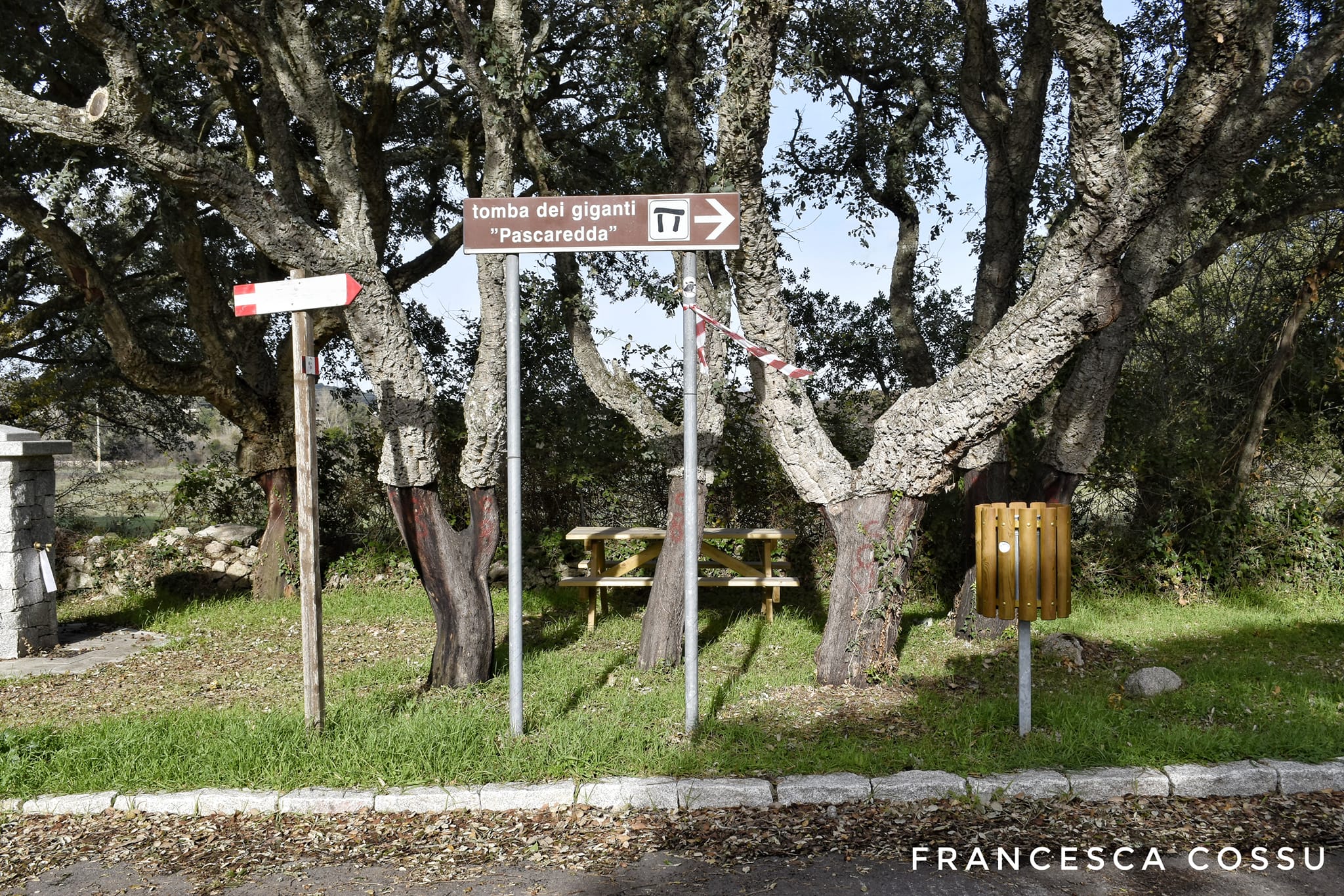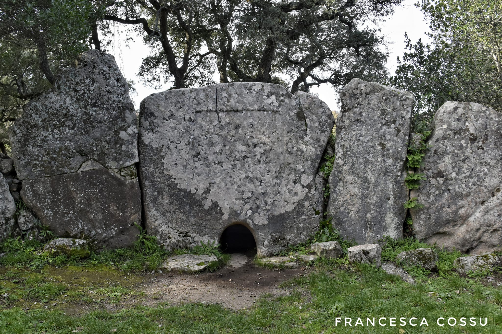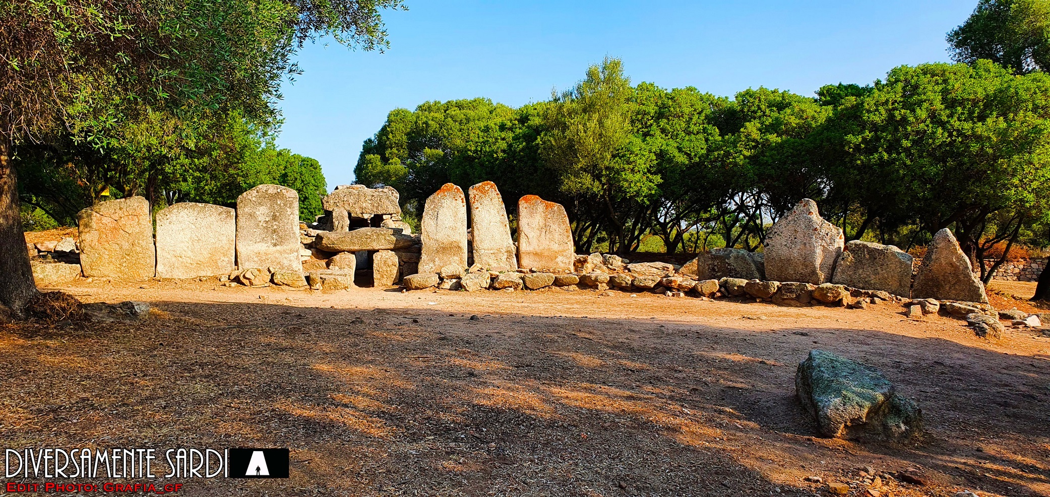Interessante tomba di giganti a stele centinata bilitica di cui si conserva la parte inferiore con portello. Presente anche l’esedra e la camera funerari