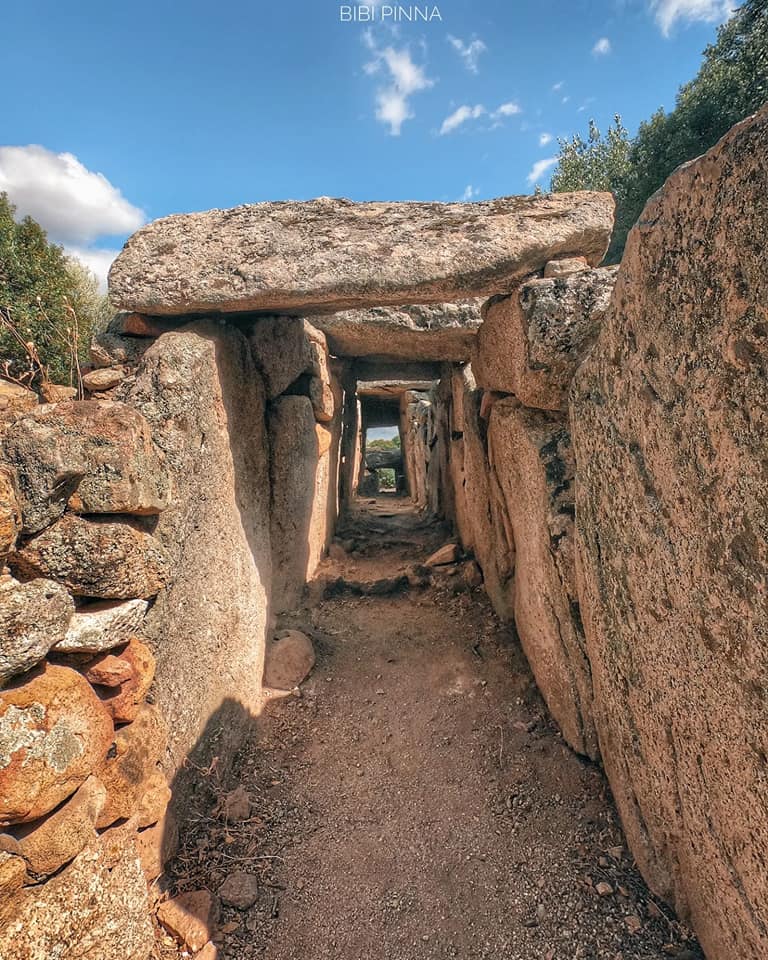 La costruzione fu edificata in due fasi. Nella prima, risalente al periodo della cultura di Bonnanaro, venne costruita la tomba ad allée couverte – una sorta di dolmen allungato -, successivamente, attorno al 1600 a.C., fu trasformata in tomba di Giganti con esedra e stele, delle quali potrai ammirare alcune tracce.