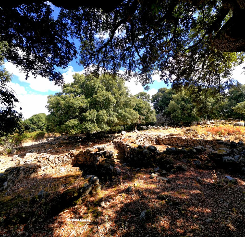 Nell’area si può ammirare un piccolo nuraghe monotorre, costruito su uno spuntone di roccia. La camera internamente è molto piccola, e priva di nicchie. Pochi metri più a valle si trova un pozzo nuragico semi distrutto ed un villaggio, con capanne grandi e piccole. I suoi ambienti sono stati riconvertiti parzialmente, secondo le esigenze Romane, intorno al II secolo dopo Cristo.