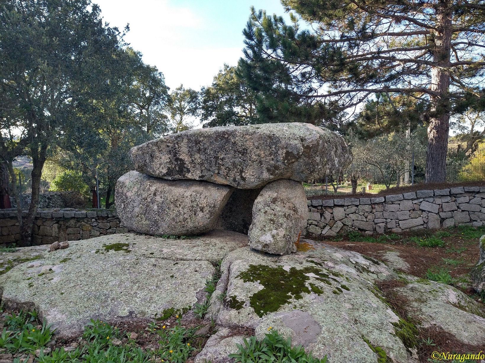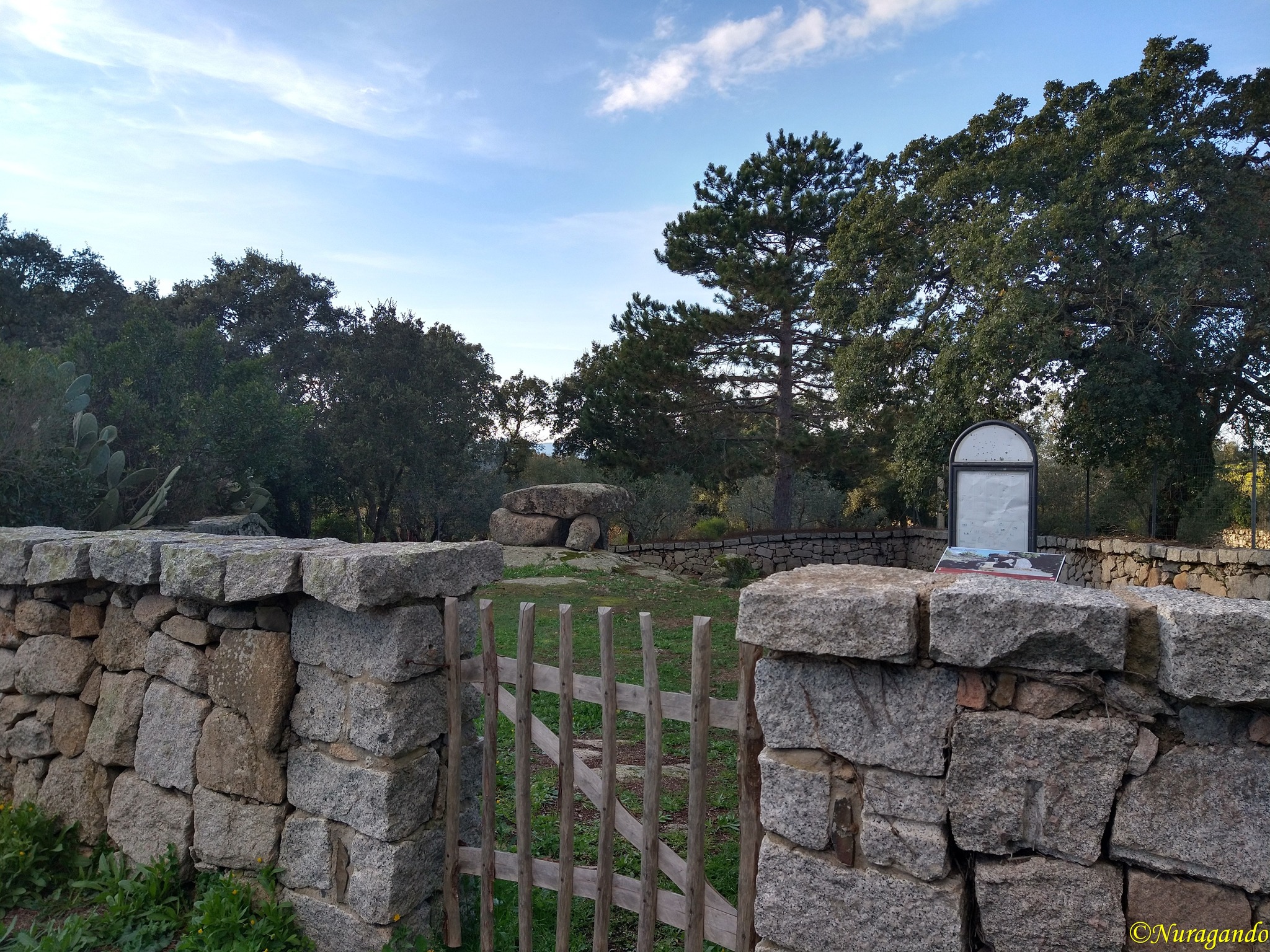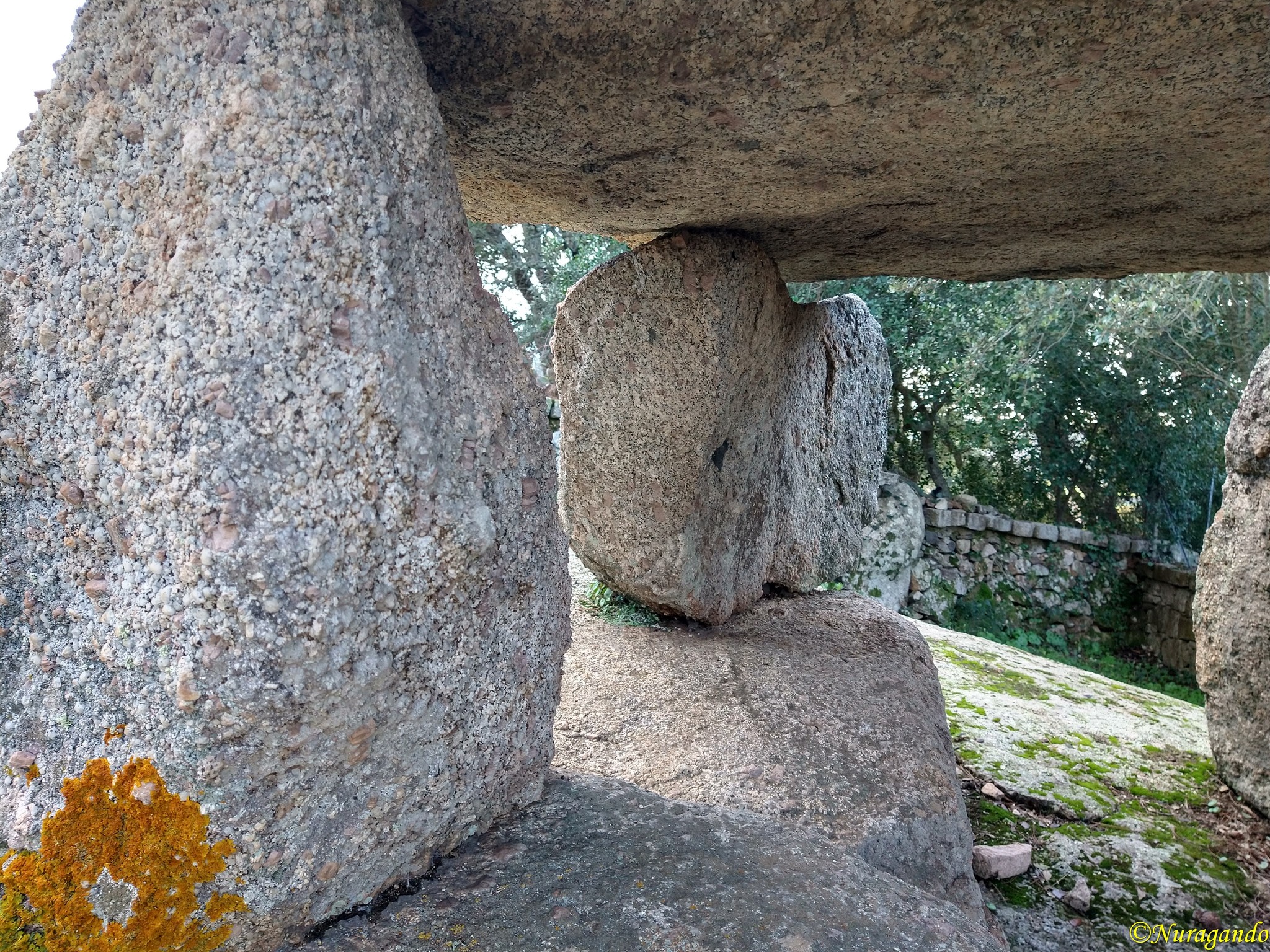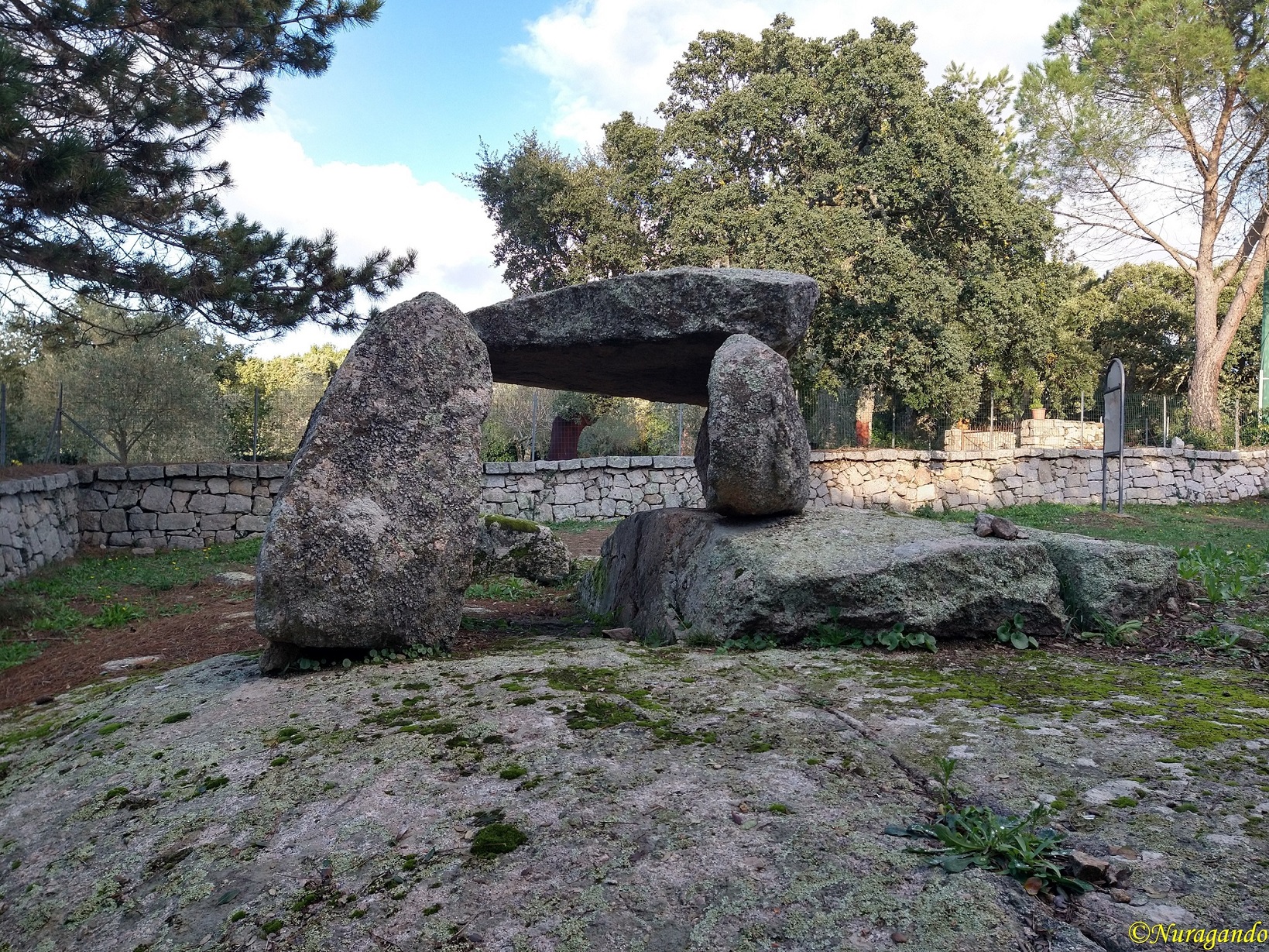 Dolmen semplice, con pianta rettangolare e ingresso rivolto a Nord-Est. La parete di destra è costituita da un lastrone rettangolare, quella di sinistra da due massi semilavorati, poggianti su roccia naturale. Il lastrone di copertura è appiattito nella superficie inferiore e lasciato al naturale in quella superiore. EPOCA: Civiltà di Ozieri (3500-2700 a. C.)
