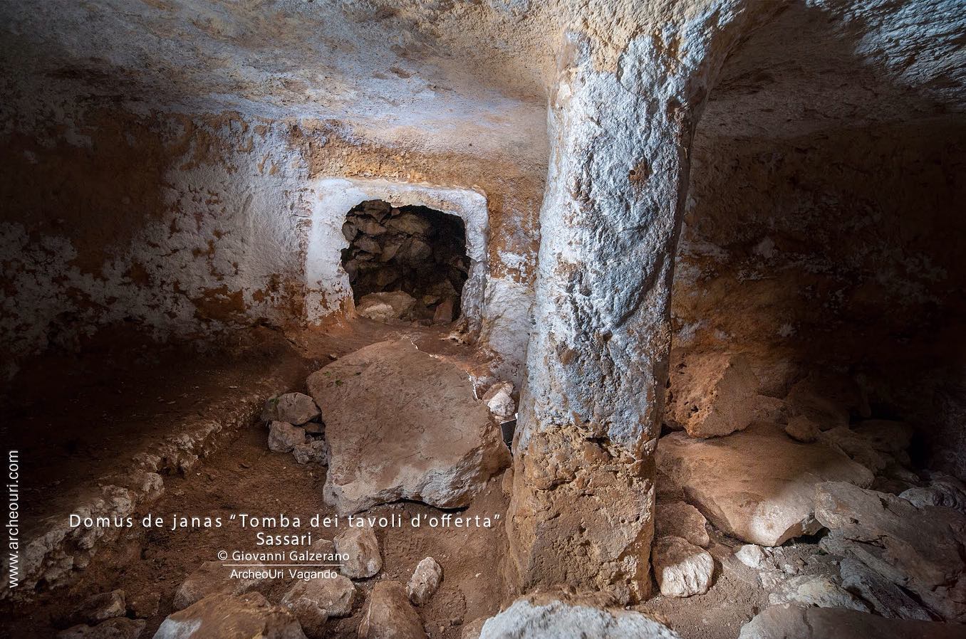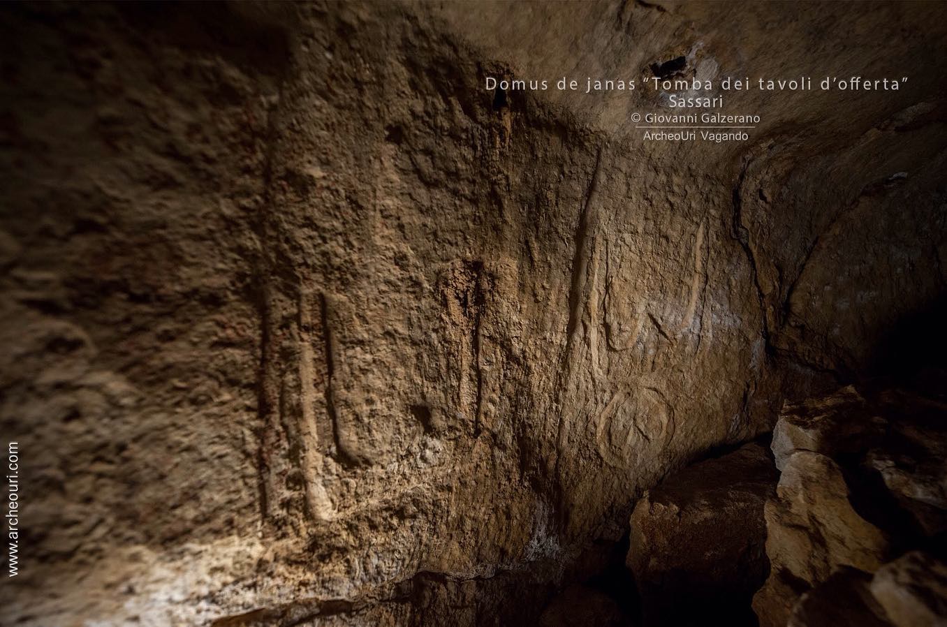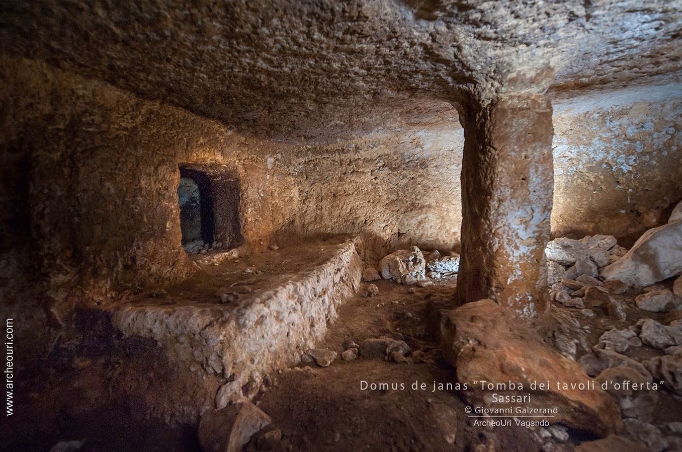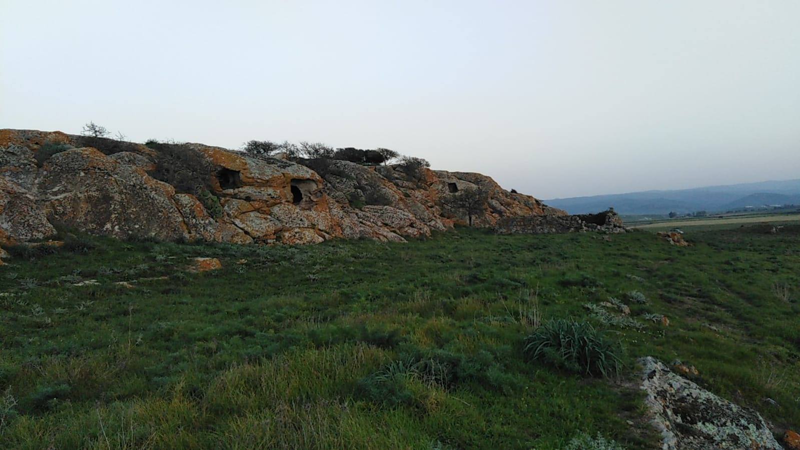 Nella piana, sono presenti 2 massicci rocciosi che affiorano piu o meno di lunghi 200 metri, larghi 30m, alti 6m. Il sito I l’ho visto solo in lontananza ma si notano molto bene e confermato dal proprietario del terreno, che sono presenti diverse domus. Il sito II ha una decina di domus rivolte perfettamente a ovest tutte molto piccole a parte 2 che con diverse camere Sono allocate a diverse altezze nella roccia. Da 30 cm di altezza a 4 metri dal livello del terreno