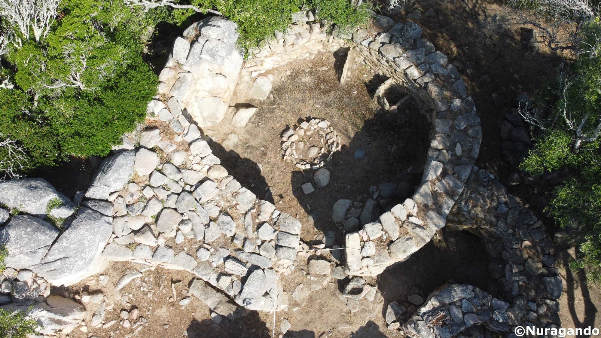 Costruito con massi di granito locale, ha una pianta di forma vagamente triangolare e presenta caratteristiche miste fra i nuraghi a corridoio (la tipologia di nuraghe più arcaica) e i nuraghi a tholos (evoluzione della precedente). La camera centrale con la copertura a tholos è ancora integra mentre sono parzialmente crollate le camere laterali. L’edificio è dotato di due ingressi, uno a sud-ovest (l’ingresso principale) e un altro a sud-est.