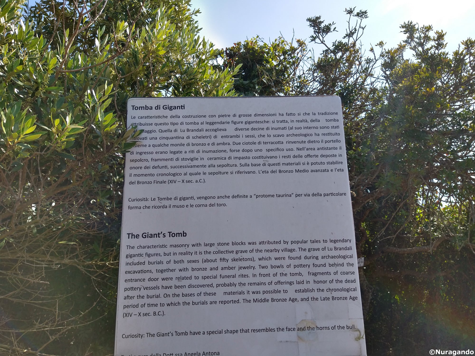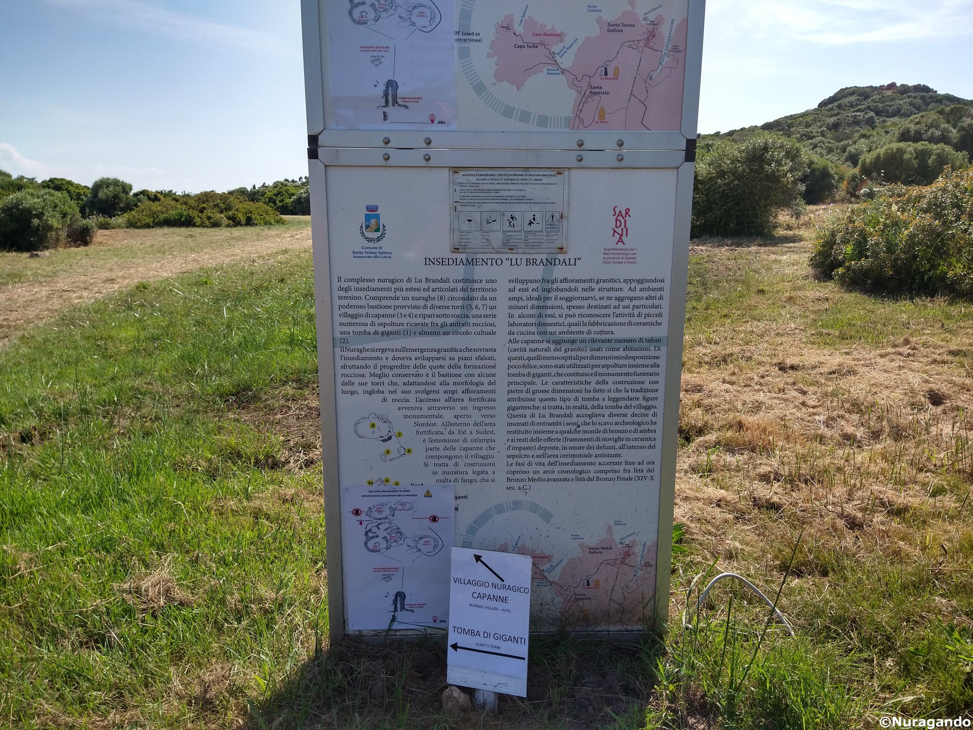Il complesso nuragico di Lu Brandali è composto da un nuraghe con antemurale, un villaggio, una tomba dei giganti, una serie di tombe “a tafone” e dei ripari sotto roccia. Per raggiungere il Sito Archeologico Lu Brandali dal semaforo di Via Nazionale di Santa Teresa Gallura, si svolta a sinistra in direzione Capo Testa, dopo circa 700 mt. sulla sinistra si accede all”ingresso principale