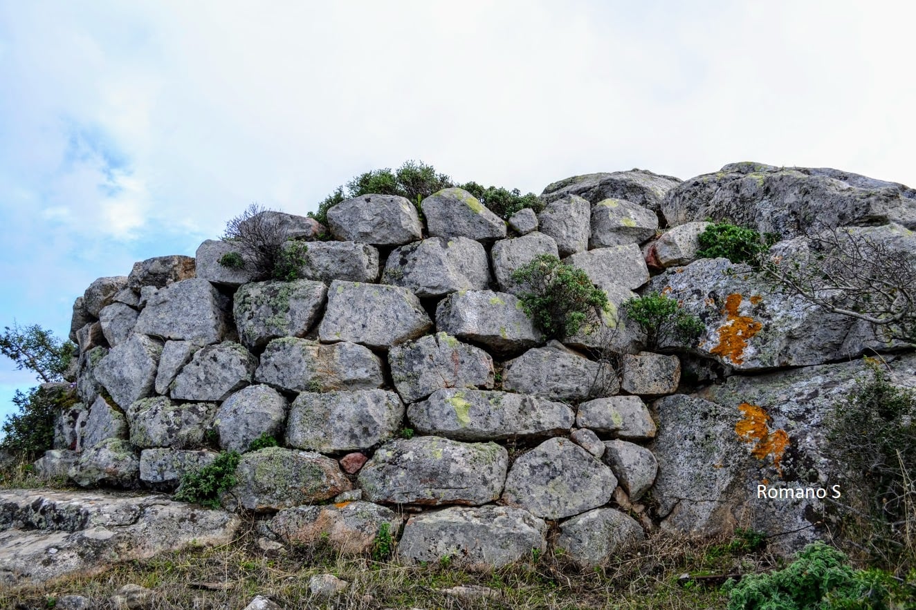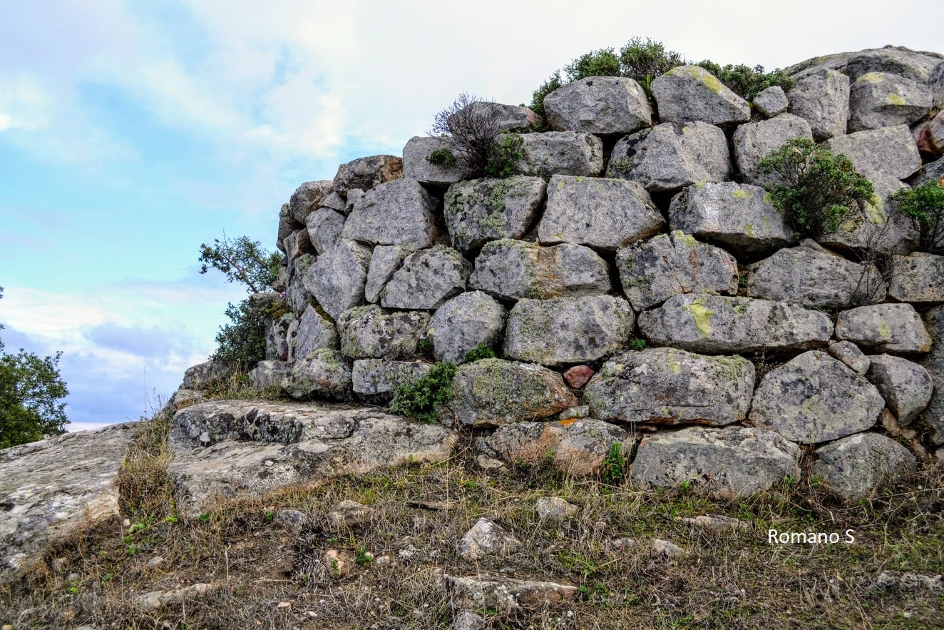 La punta piú settentrionale del monte che sovrasta Luogosanto si chiama Monti Ruju, “monte rosso”, per via del colore che fino a pochi decenni fa gli dava la terra trattenuta dalla struttura di un nuraghe. Oggi del monumento restano soltanto sette filari di pietre addossate al monolite della cima, ma il luogo è comunque di grande fascino per il bel sentiero che lo collega alla Capanna delle Riunioni e per lo spettacolo vertiginoso offerto dalla vista delle valli di Crisciuleddu e Lu Sfussatu e di buona parte della Gallura nord-occidentale, dal Monte Limbara alle Bocche di Bonifacio. (Ufficio turistico Luogosanto)