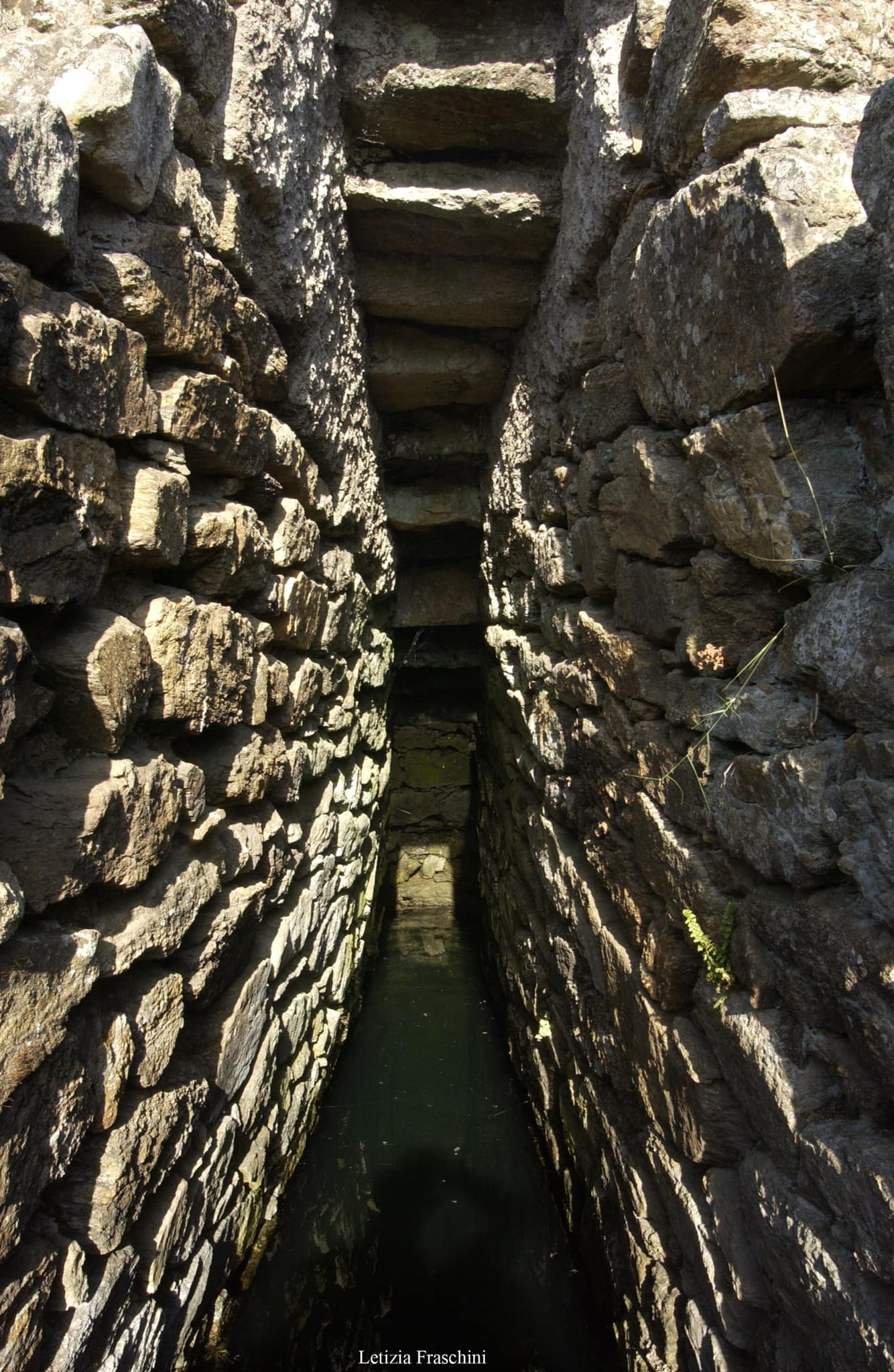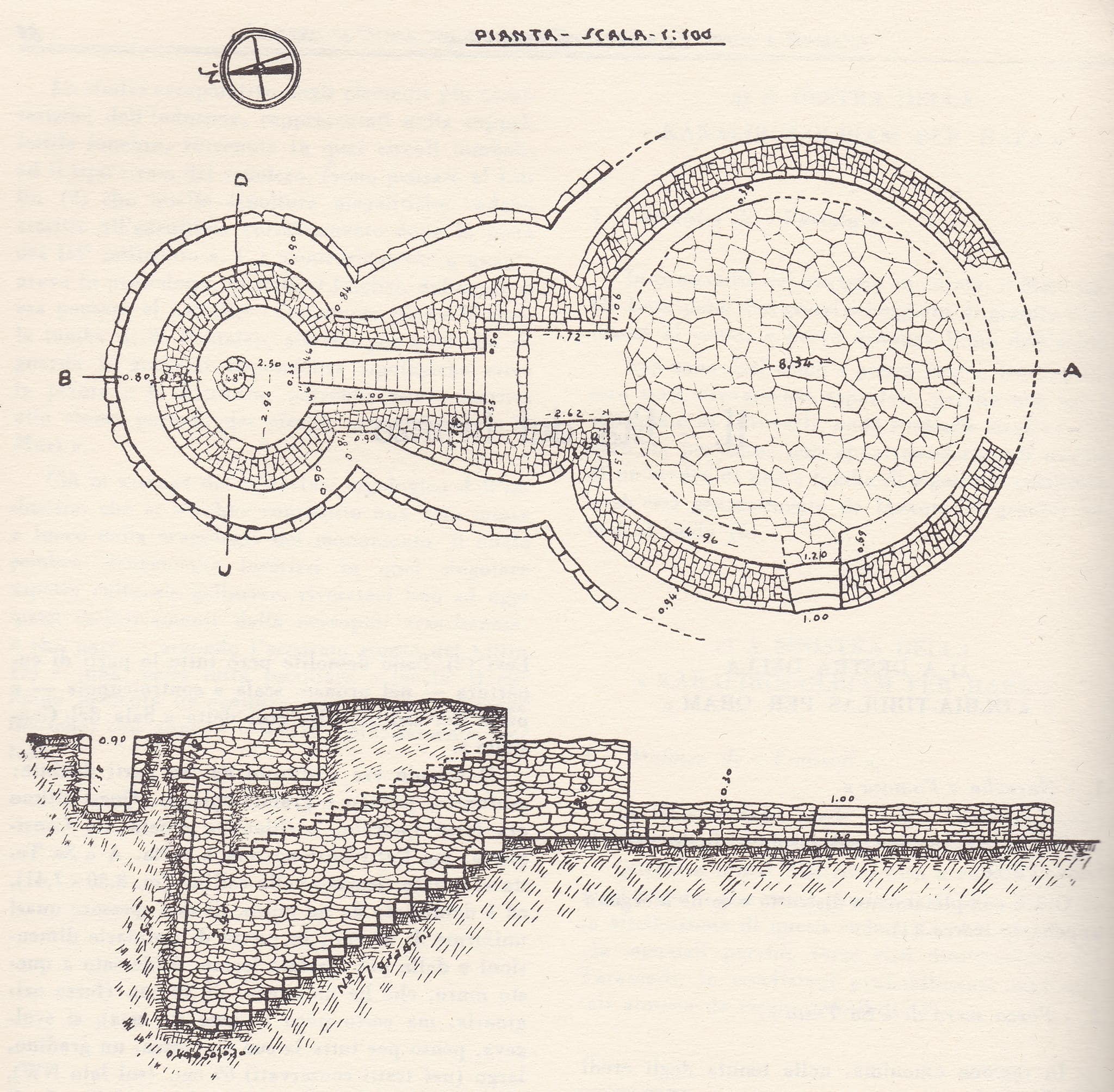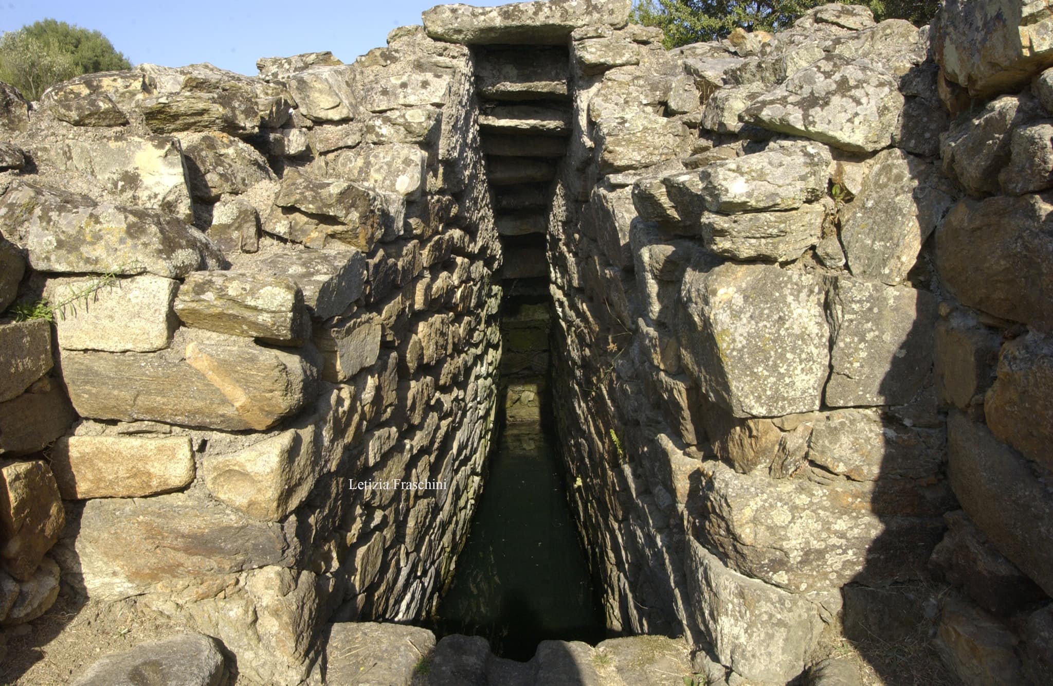 Realizzato in blocchi di granito, è composto da un cortile circolare, dal vestibolo, piccolo ambiente di raccordo tra il cortile e il pozzo, e dal pozzo vero e proprio, raggiungibile dal vestibolo tramite alcuni gradini; la sorgente si trova a 17 gradini di profondità Scavato interamente nel 1938, il pozzo sacro di Sa Testa, ha una lunghezza complessiva di 17,50 metri. Era un luogo di culto delle acque sorgive. Numerosi sono i reperti rinvenuti negli scavi, come dei bruciaprofumi di età punica.