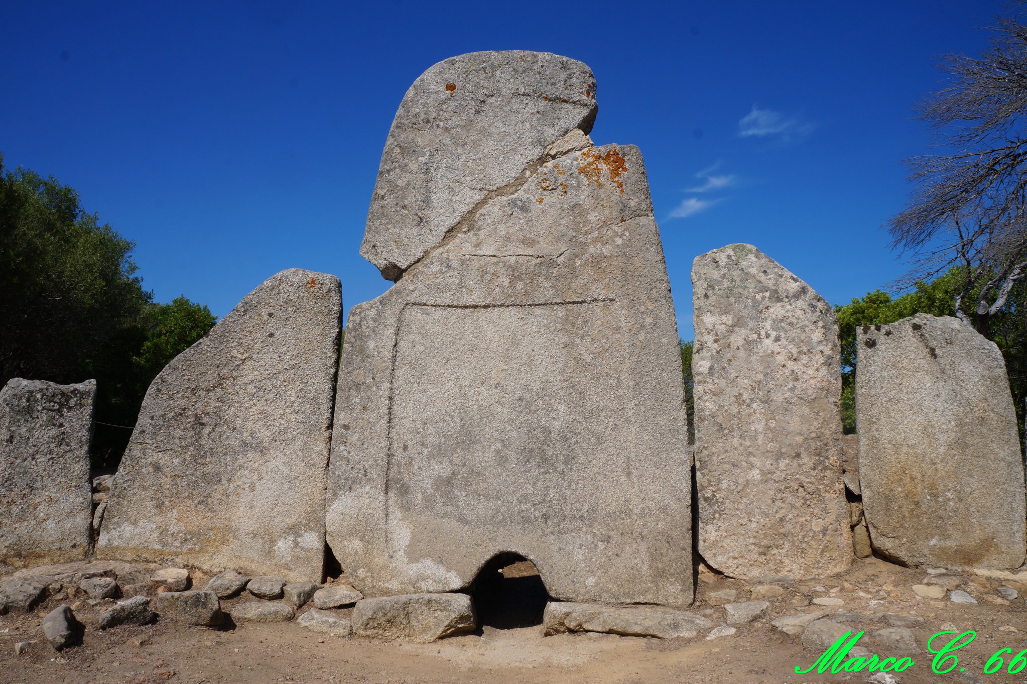 La tomba venne costruita in più fasi. La prima è databile alla prima età del bronzo, durante il periodo in cui in Sardegna era diffusa la cultura di Bonnanaro (1800 a.C. circa). All’epoca la tomba doveva apparire come un dolmen a cista, ricoperto da un tumulo. In epoca nuragica il sito venne riadattato in tomba dei giganti con l’ampliamento della camera funeraria e la realizzazione dell’esedra, composta da 14 lastre tra cui spicca la stele centrale, dotata di ingresso alta quasi 4 metri.