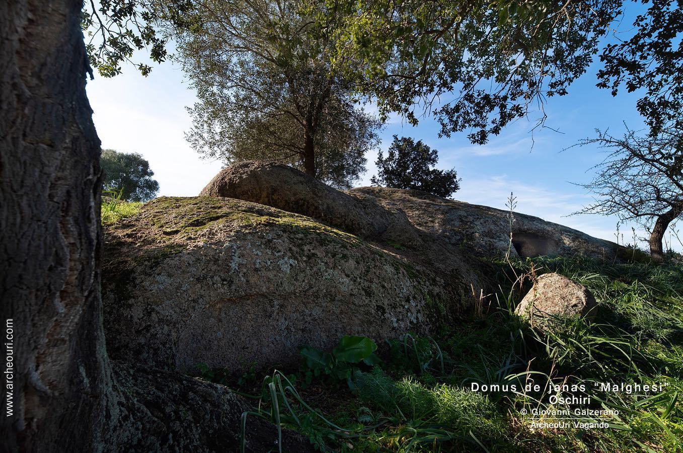 Databile al XIII secolo a.C. Pertinente al Nuraghe Albucciu. In questa tomba il corpo rettangolare, a lastroni piani, è circondato da un tumulo di pietrame . L’esedra si riduce ad una serie di blocchi e piccole lastre che privano il monumento del senso di grandiosità che connota le altre sepolture megalitiche. Notevole lo spessore murario della tomba, di circa 6 metri. La struttura ha subito rimaneggiamenti in epoche diverse ed è stata riutilizzata varie volte.
