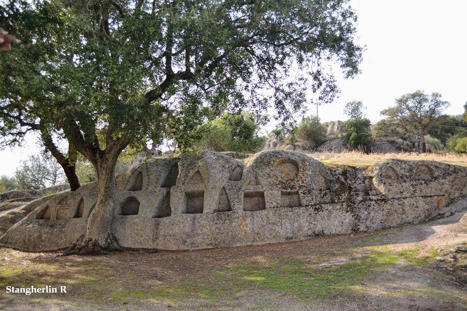 Necropoli costituita da svariate tombe scavate nel granito. Non risultano decori scolpiti a parete