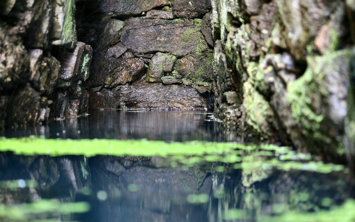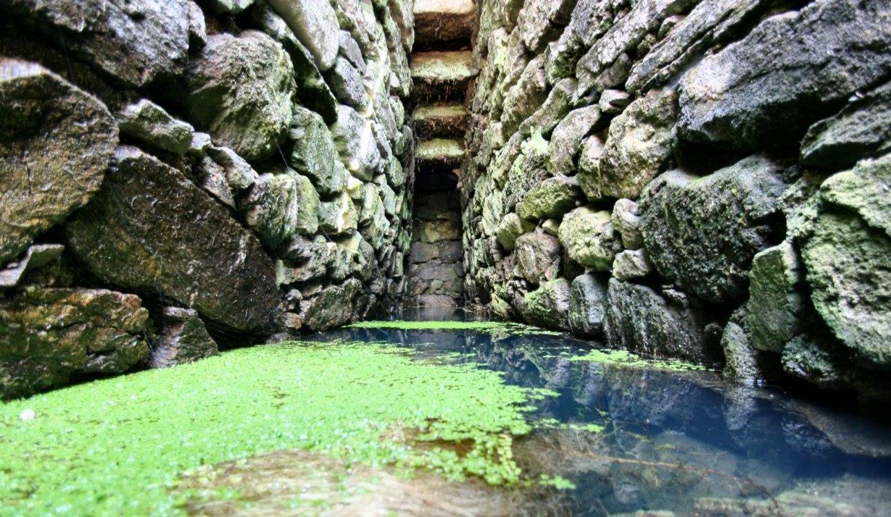 Realizzato in blocchi di granito, è composto da un cortile circolare, dal vestibolo, piccolo ambiente di raccordo tra il cortile e il pozzo, e dal pozzo vero e proprio, raggiungibile dal vestibolo tramite alcuni gradini; la sorgente si trova a 17 gradini di profondità