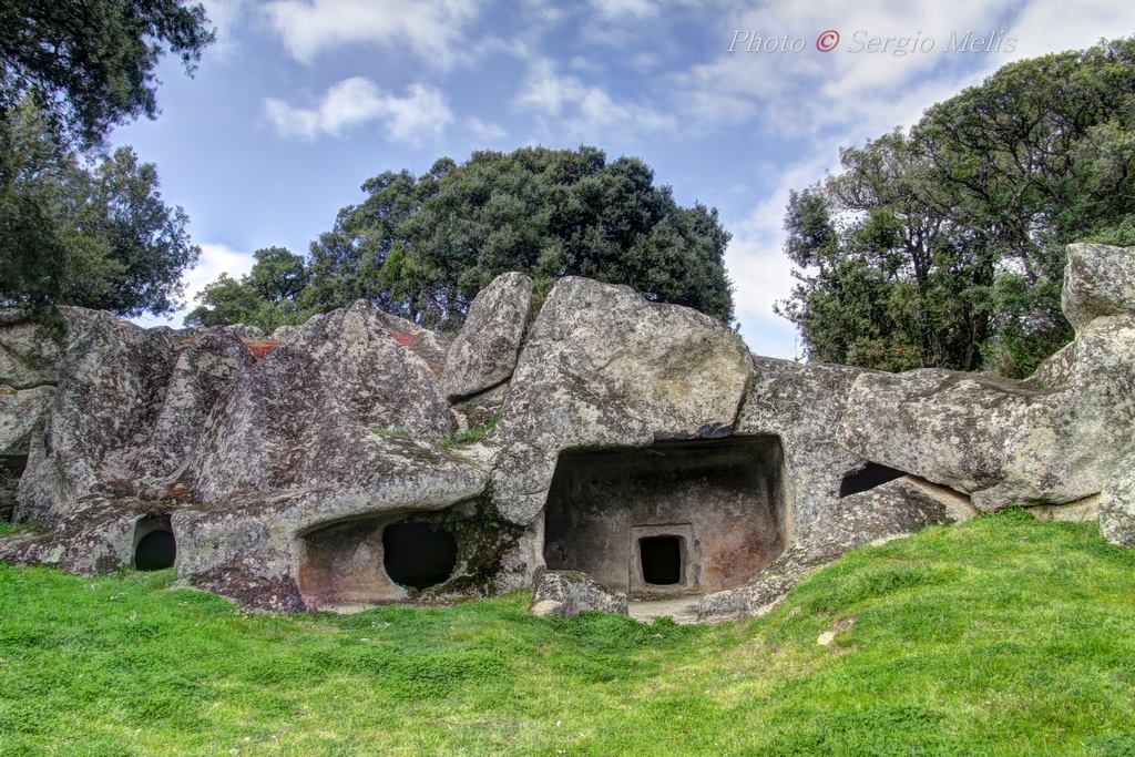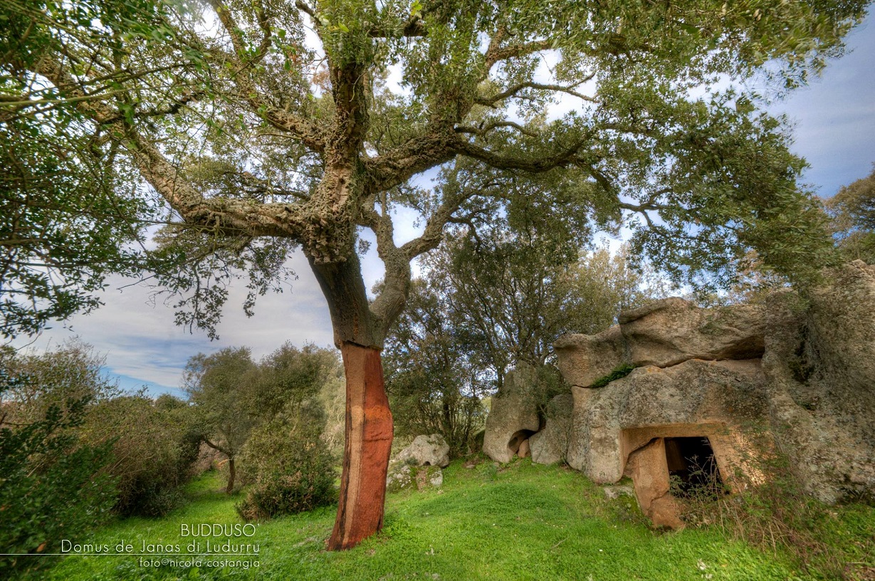 La necropoli è scavata in un affioramento granitico dell’altopiano di Buddusò. E’ costituita da 6 ipogei e datata al 3200-2800 a.C. Alcune domus presentano ambienti monocellulari mentre altre hanno pianta pluricellulare. Una delle domus riportano tracce di pittura murale rossa a bande parallele su fasce in rilievo.