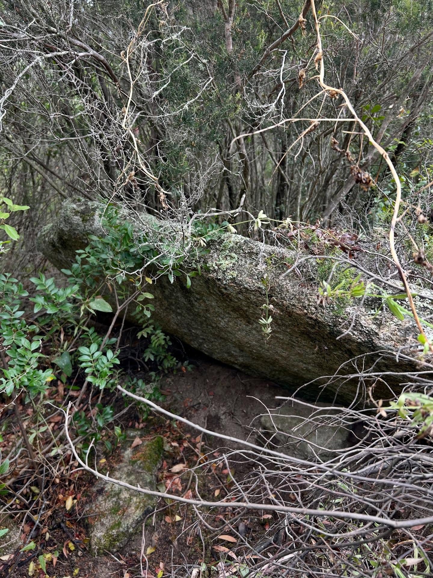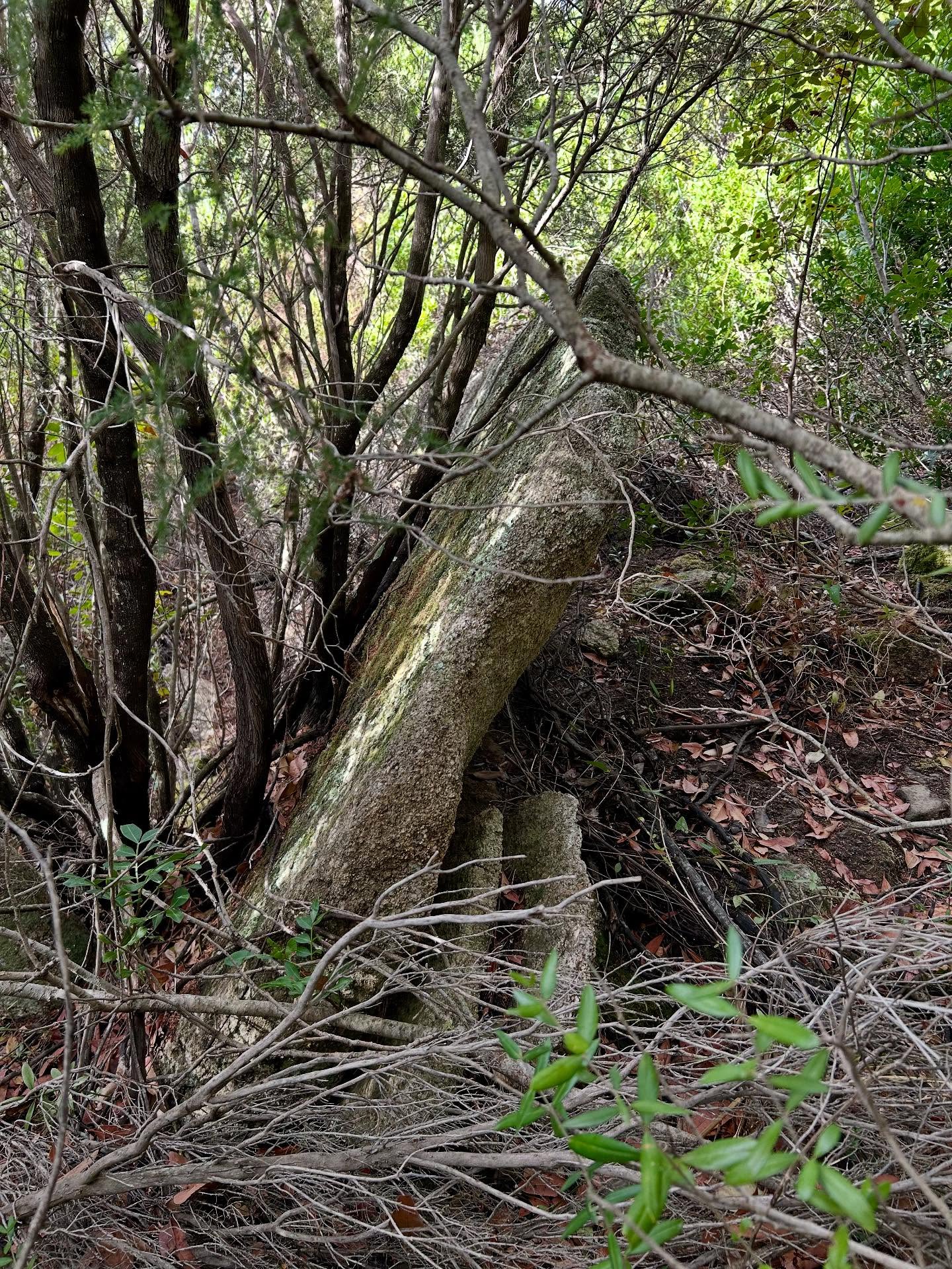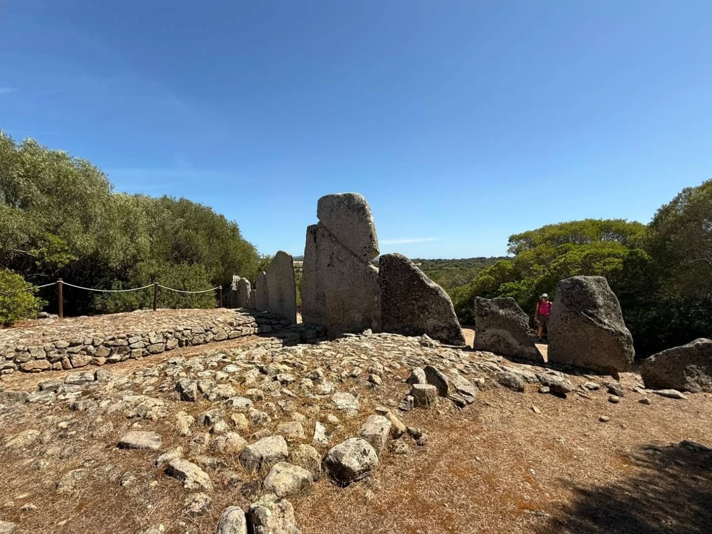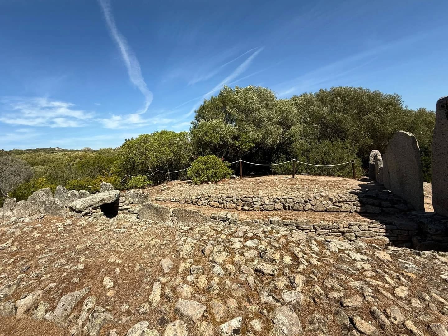 Costituita da lastre di granito infisse a coltello nel terreno, questa sepoltura megalitica risale al Neolitico (Cultura di Arzachena), con un ulteriore riutilizzo durante l’Età del Bronzo.