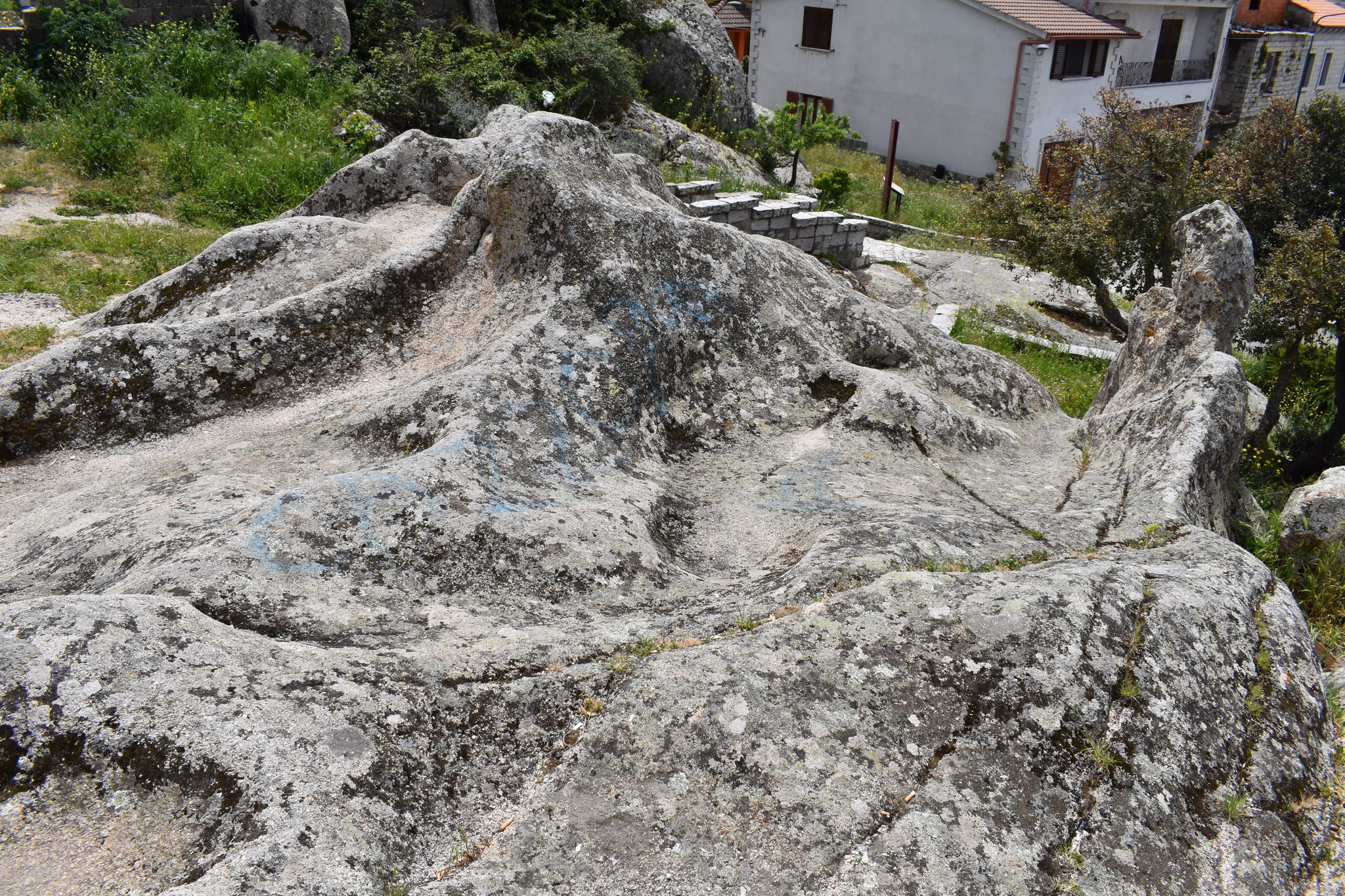 Domu de janas all’interno dell’abitato di Buddusò, scavata con pianta cruciforme in un affioramento di granito