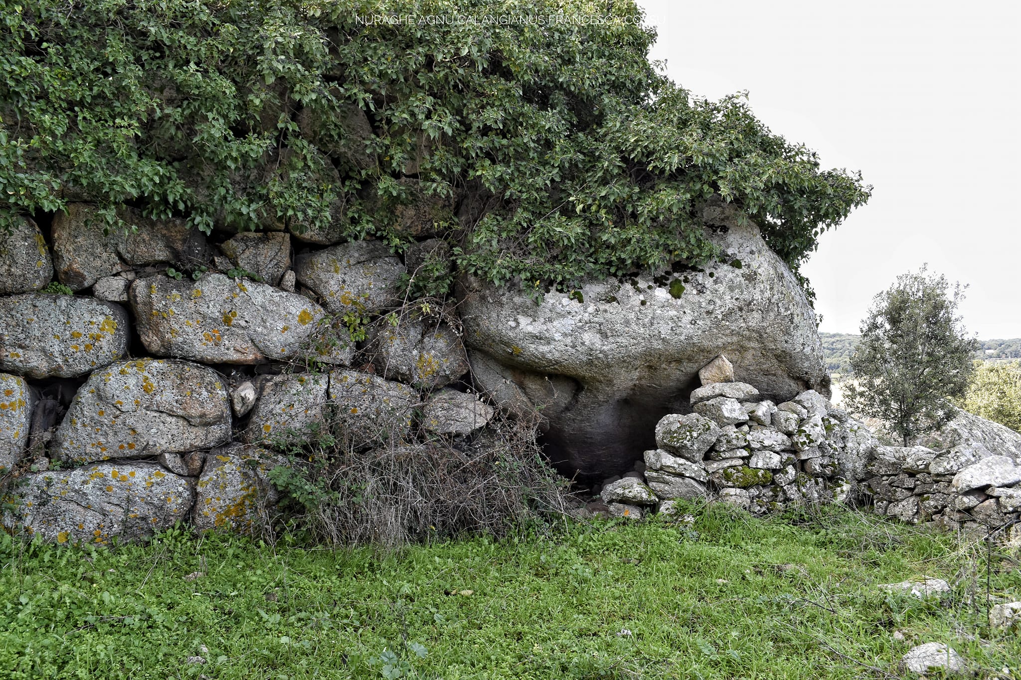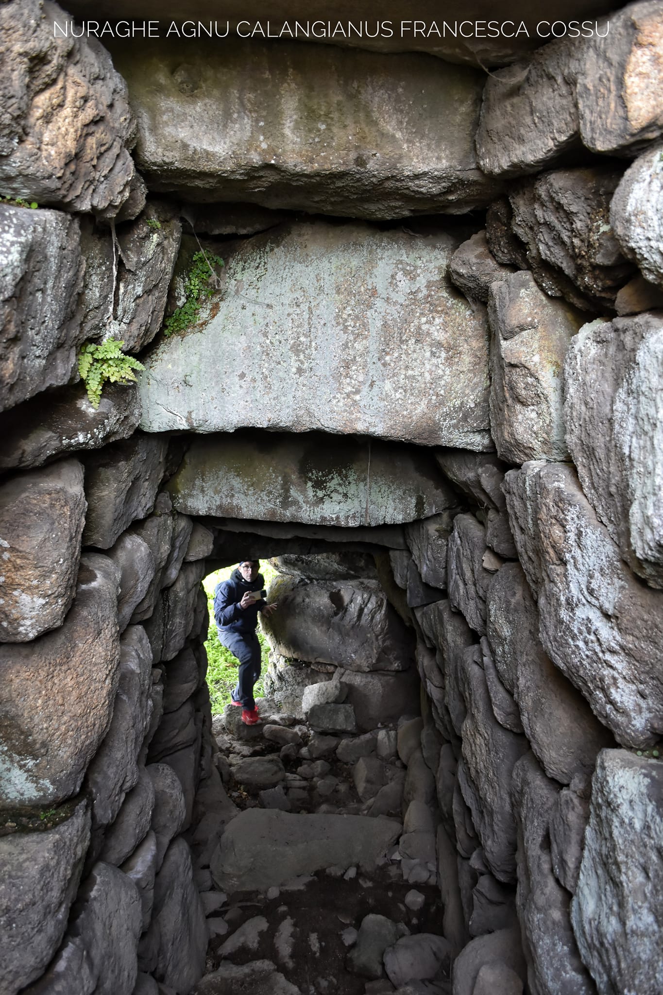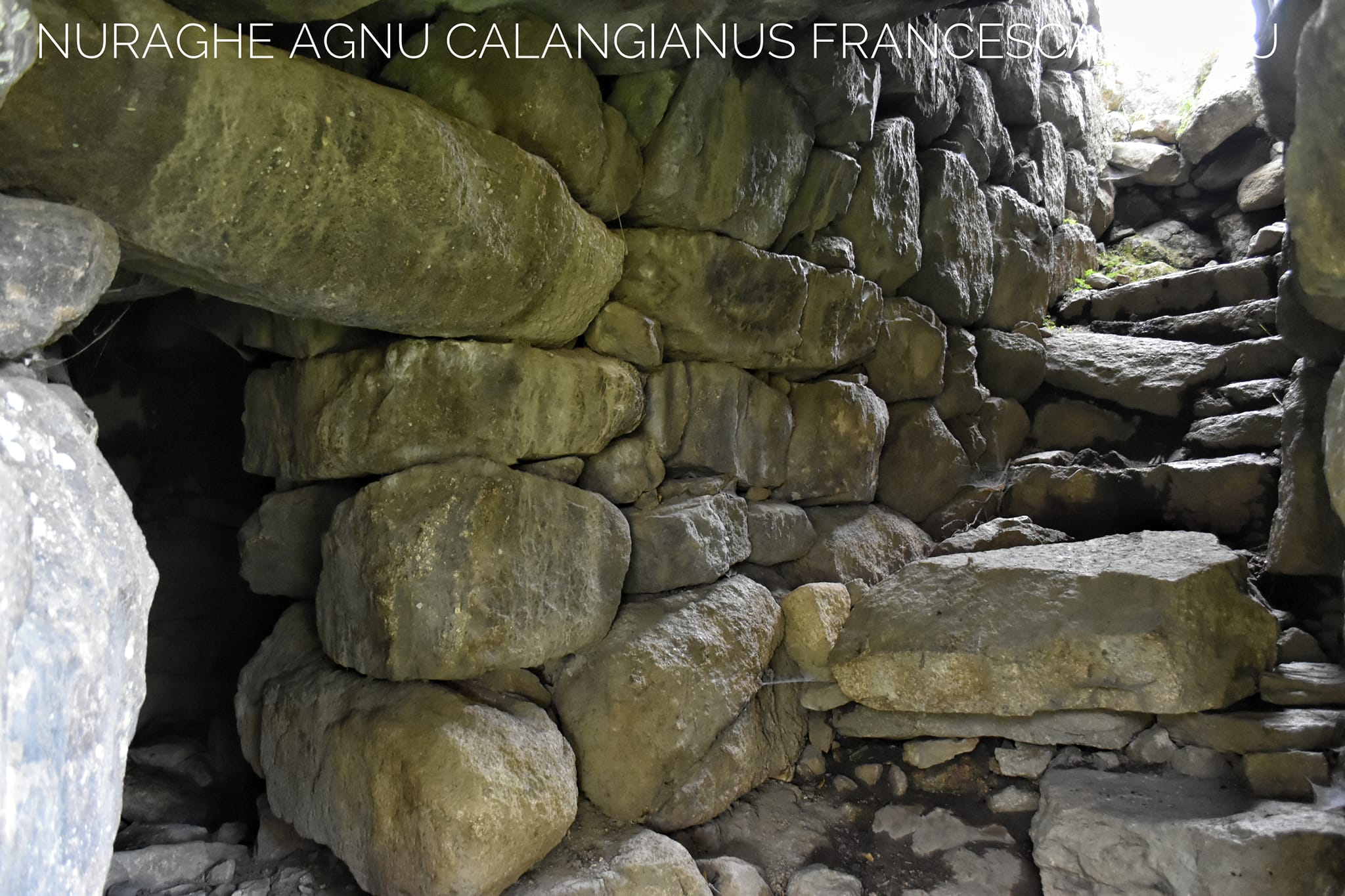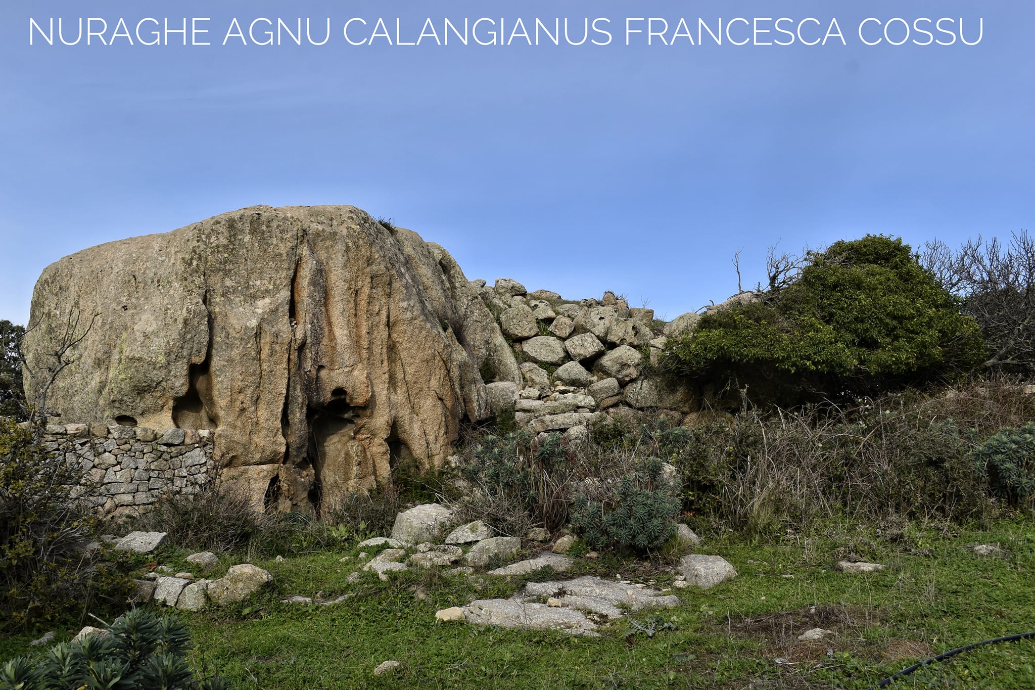 Il Nuraghe Agnu è realizzato in granito, con pianta a ferro di cavallo, in quanto è in parte addossato alla parete rocciosa. Presenta un monumentale ingresso, orientato a est e dotato di architrave, da cui si penetra in un corridoio che era caratterizzato da una porta scorrevole in legno, che scendeva dall’alto. Sui lati si aprono due corridoi , uno dei quali porta ad una celletta cupolata, l’altro passa all’interno dal muro e porta all’esterno, attraverso la roccia naturale.