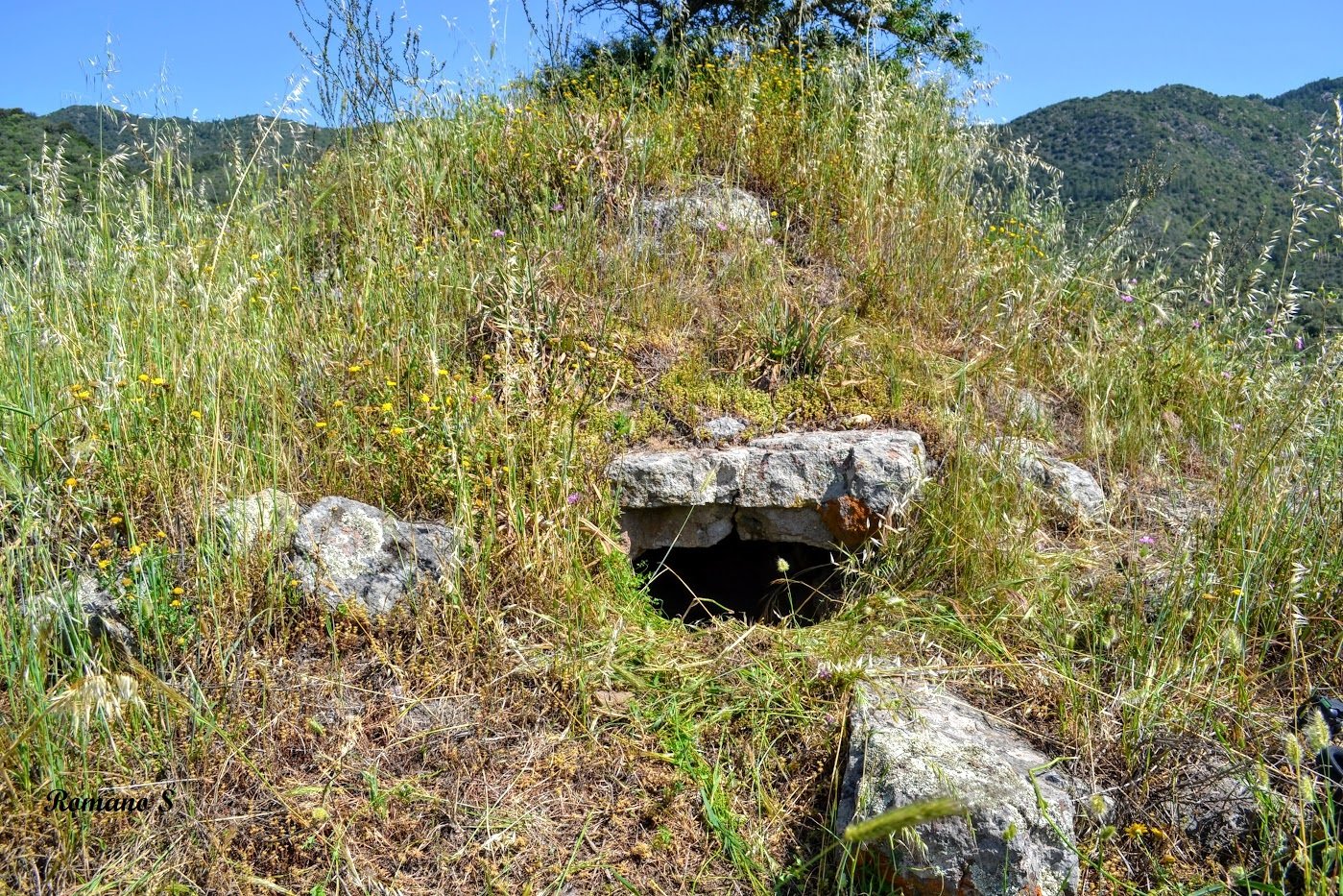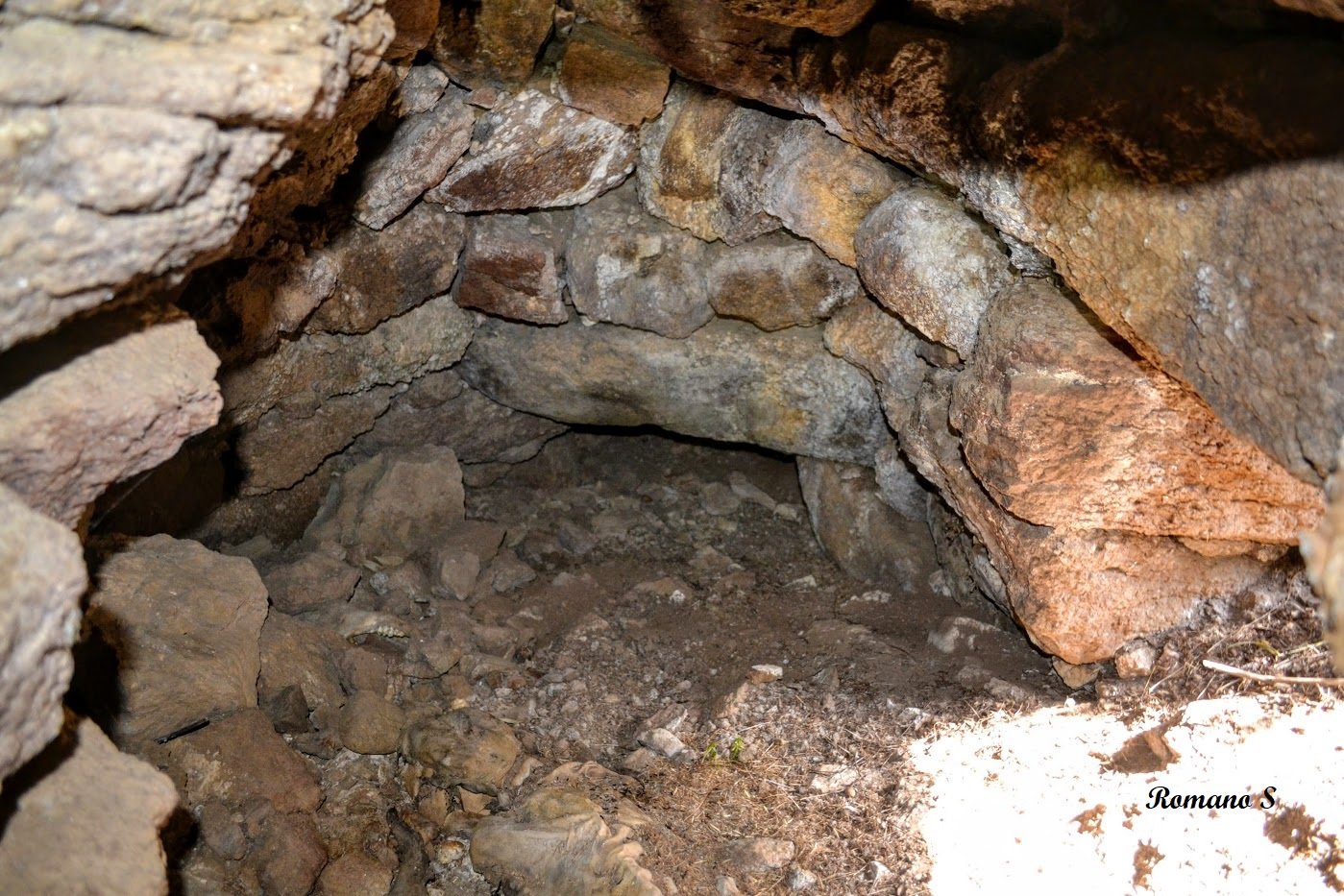 Completamente interrato all’esterno, conserva all’interno una piccola tholos che si prolunga in un corridoio cieco. Si tratta più precisamente di un protonuraghe o nuraghe a corridoio.