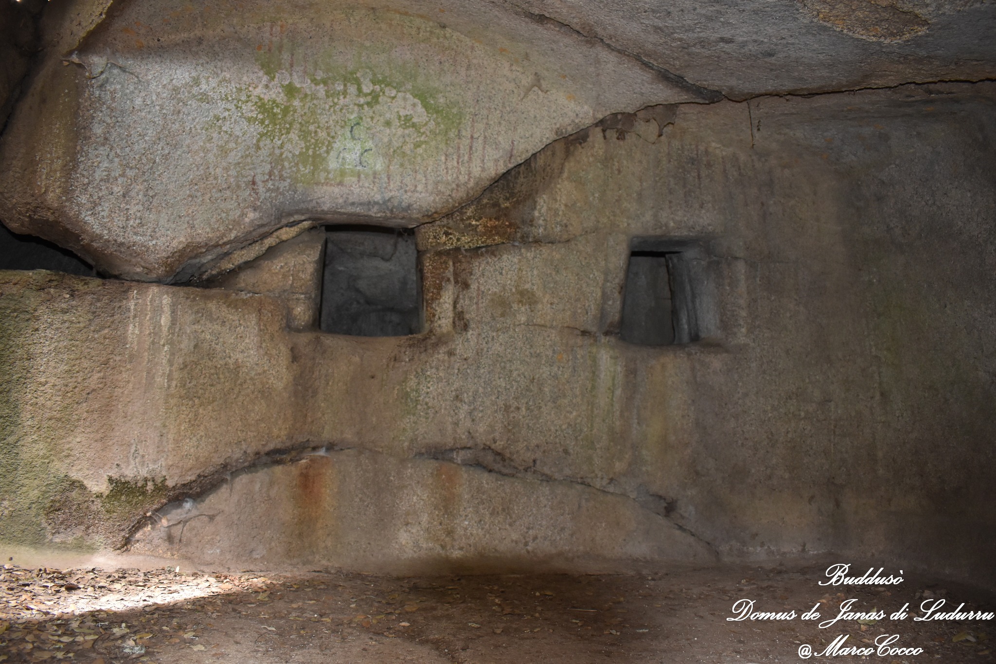 La necropoli è scavata in un affioramento granitico dell’altopiano di Buddusò. E’ costituita da 6 ipogei e datata al 3200-2800 a.C. Alcune domus presentano ambienti monocellulari mentre altre hanno pianta pluricellulare. Una delle domus riportano tracce di pittura murale rossa a bande parallele su fasce in rilievo.