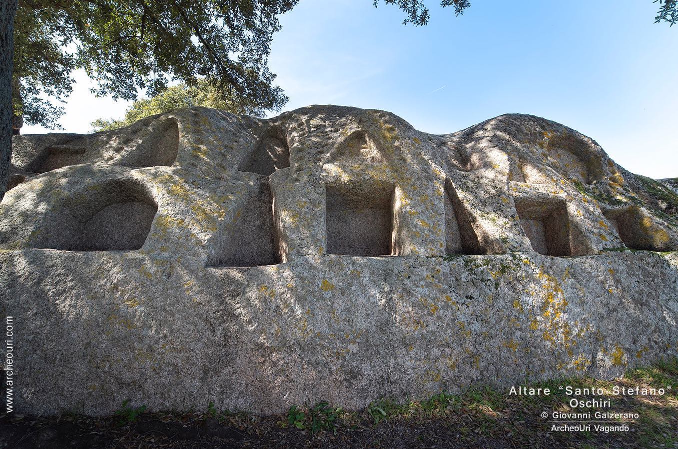 Tutta l’area compresa tra la necropoli a domus de janas e la chiesa di Santo Stefano è ricca di rocce tafonate adattate a nicchie e nicchioni, in cui spesso è difficle riconoscere l’azione della natura o quella dell’uomo. In particolare intorno alla chiesa sono individuabili cinque siti con rocce istoriate: