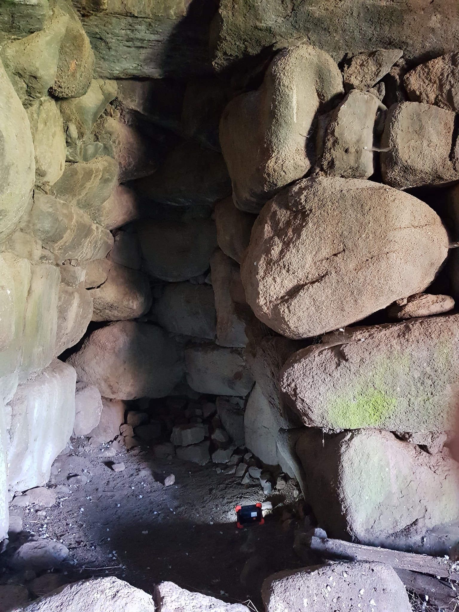 Costruito interamente in granito è del tipo a corridoio centrale, presenta una tipologia mista tra l’impianto dei nuraghe a corridoio e di quelli a thòlos con corridoio centrale e camere binarie, ha una struttura massiccia e irregolare. La Tholos è integra. Il bastione è raggiungibile attraverso una scala accessibile dal cortile. L’ingresso conduce ad un corridoio centrale, con copertura ad ogiva, che attraversa in senso longitudinale tutta la costruzione e sbuca su un grande cortile.