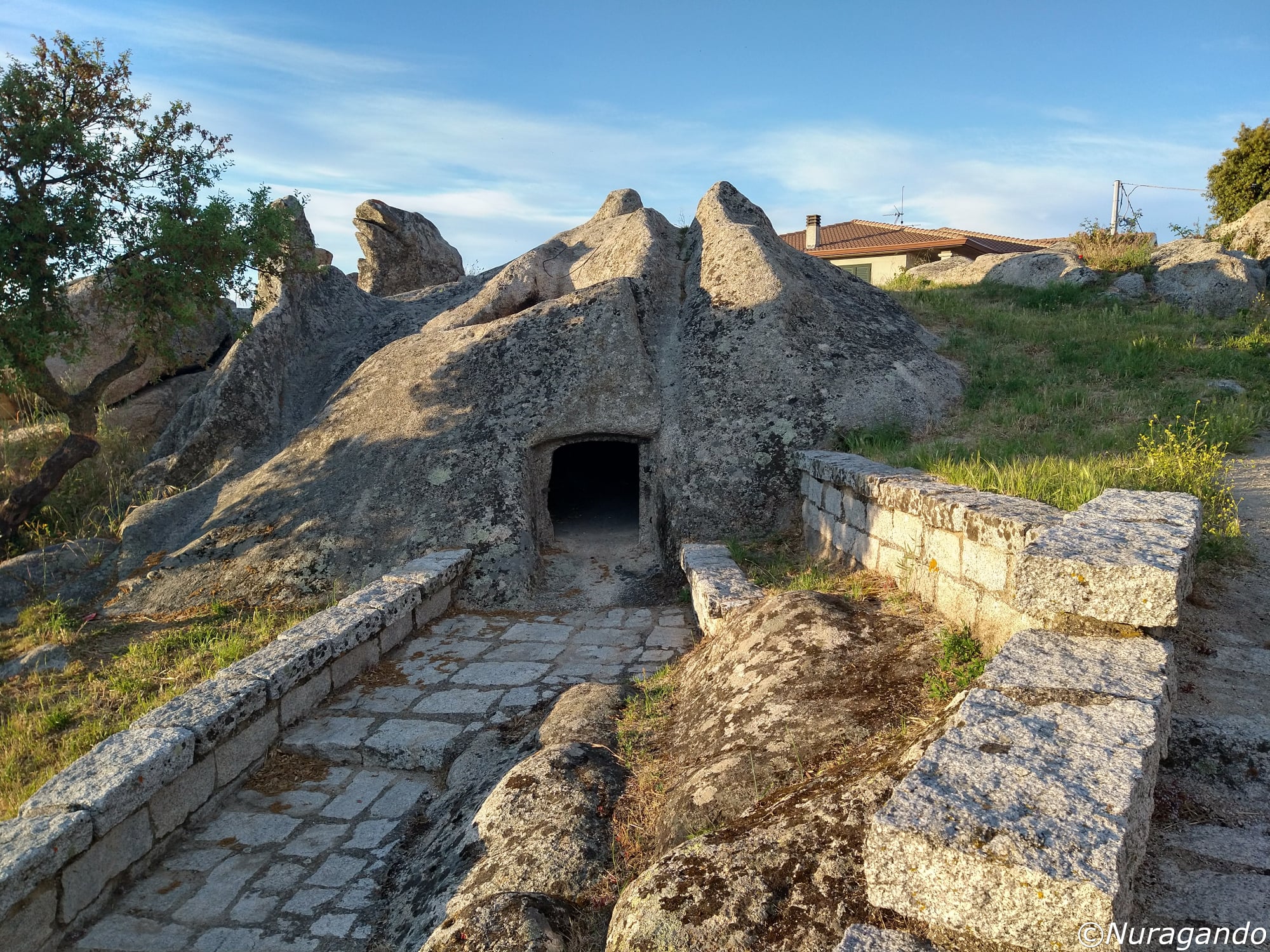 Domus de janas all’interno dell’abitato di Buddusò, scavata con pianta cruciforme in un affioramento di granito