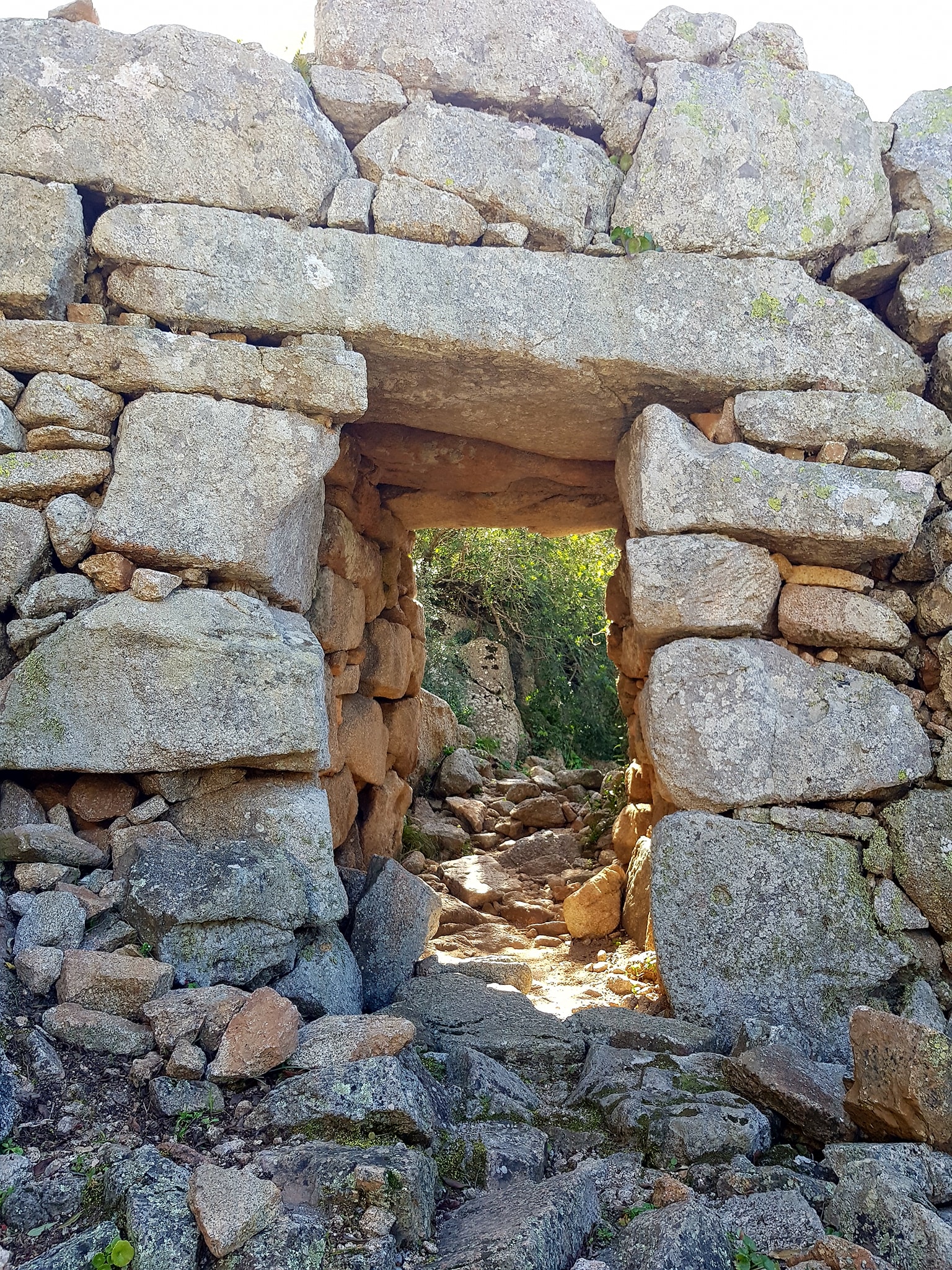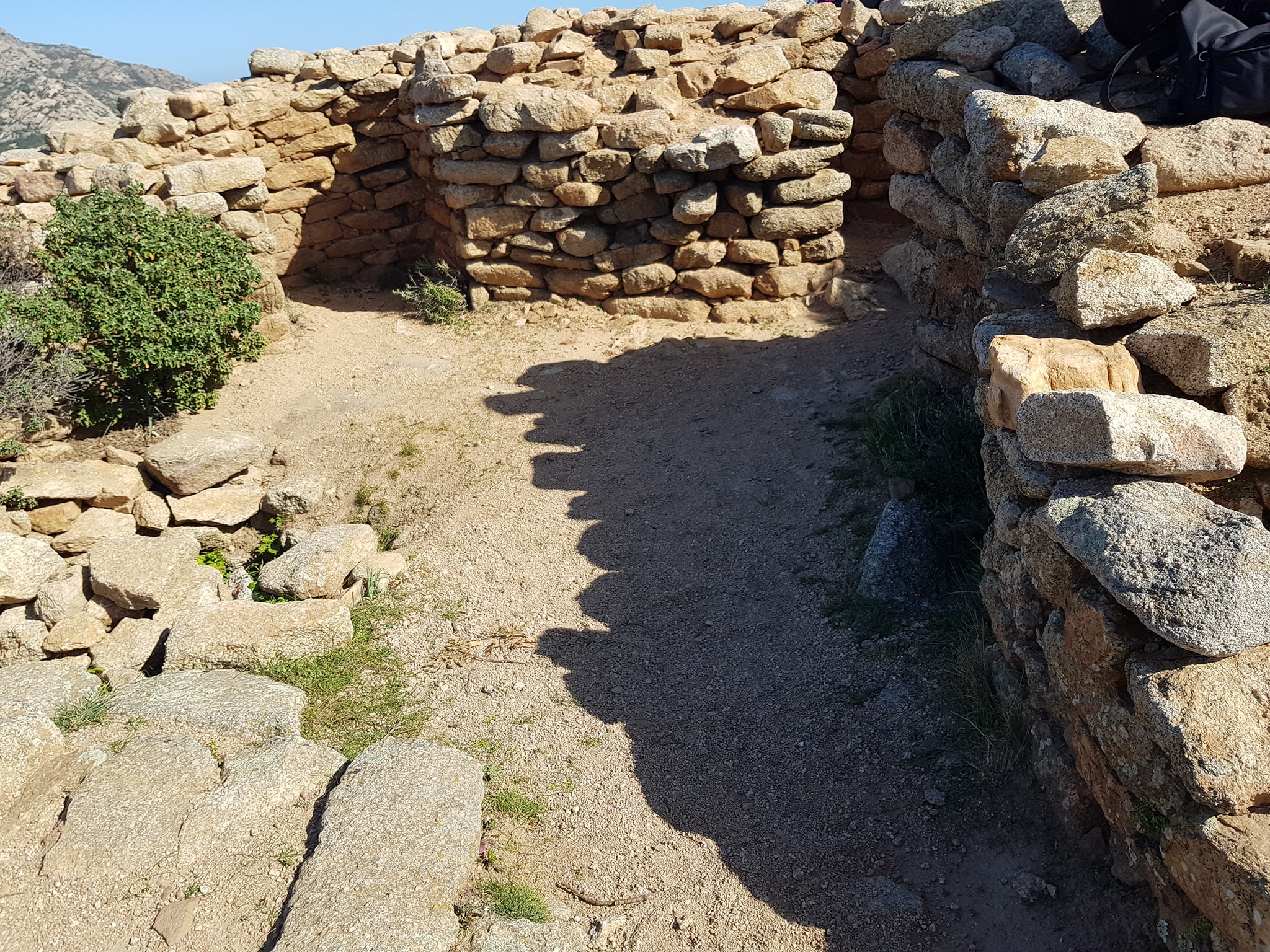 L’ingresso, rimasto a cielo aperto, presenta la nicchia a destra intatta e a sinistra il vano scala totalmente crollato ma percorribile fino al piano superiore dal quale si può scorgere l’interno della tholos. Sono ancora visibili due nicchie laterali e il materiale di crollo avvenuto all’interno.
