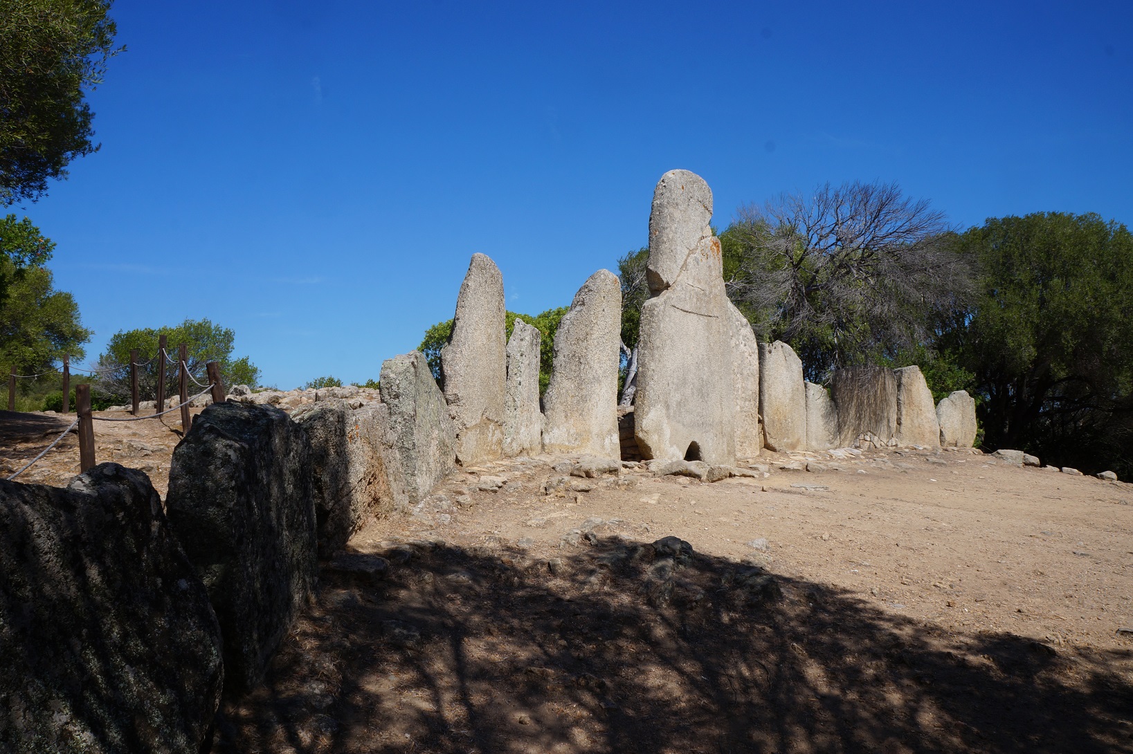 La tomba venne costruita in più fasi. La prima è databile alla prima età del bronzo, durante il periodo in cui in Sardegna era diffusa la cultura di Bonnanaro (1800 a.C. circa). All’epoca la tomba doveva apparire come un dolmen a cista, ricoperto da un tumulo. In epoca nuragica il sito venne riadattato in tomba dei giganti con l’ampliamento della camera funeraria e la realizzazione dell’esedra, composta da 14 lastre tra cui spicca la stele centrale, dotata di ingresso alta quasi 4 metri.