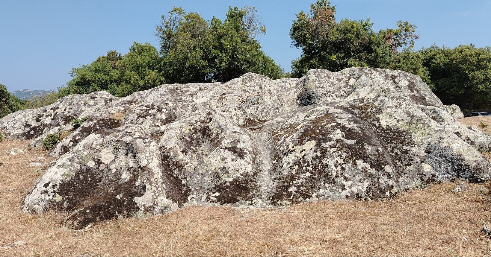 La tomba venne costruita in più fasi. La prima è databile alla prima età del bronzo, durante il periodo in cui in Sardegna era diffusa la cultura di Bonnanaro (1800 a.C. circa). All’epoca la tomba doveva apparire come un dolmen a cista, ricoperto da un tumulo. In epoca nuragica il sito venne riadattato in tomba dei giganti con l’ampliamento della camera funeraria e la realizzazione dell’esedra, composta da 14 lastre tra cui spicca la stele centrale, dotata di ingresso alta quasi 4 metri.