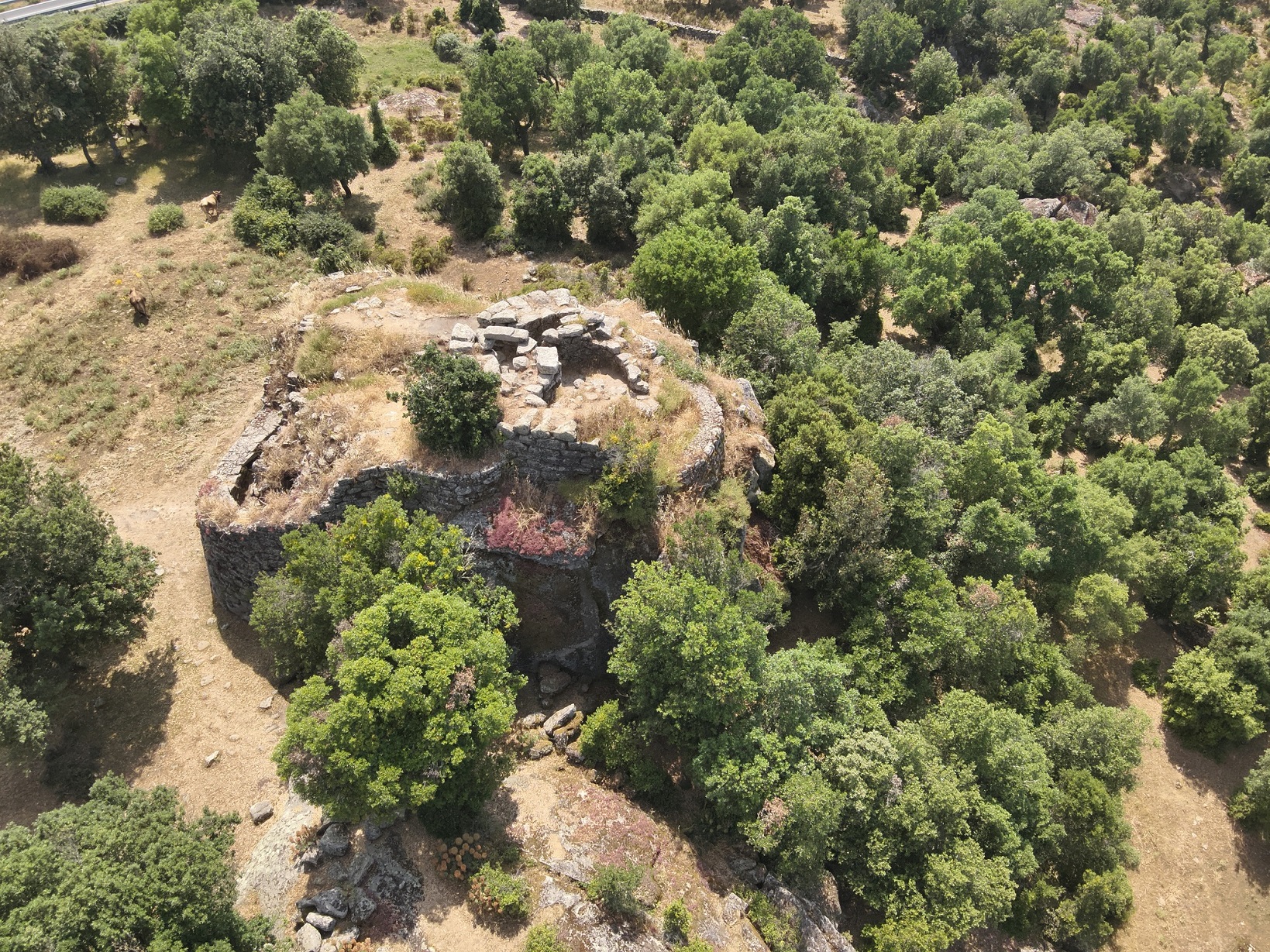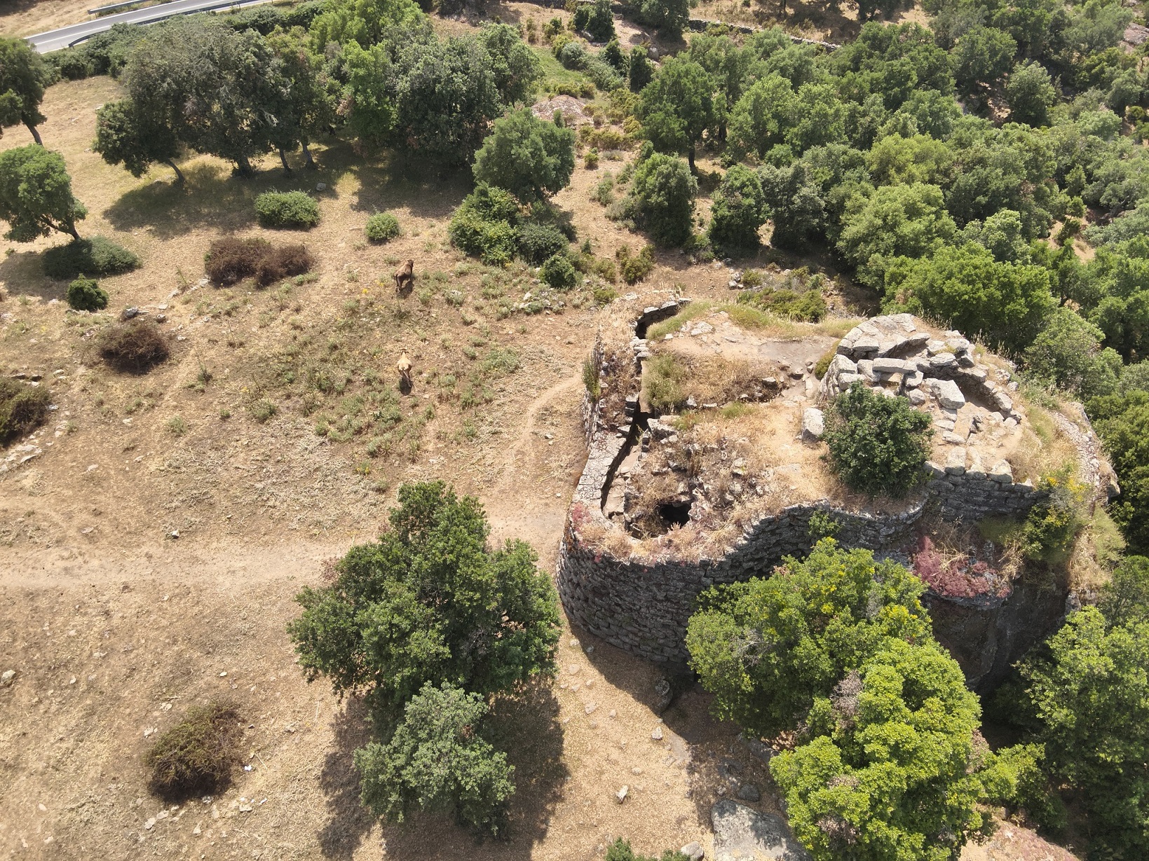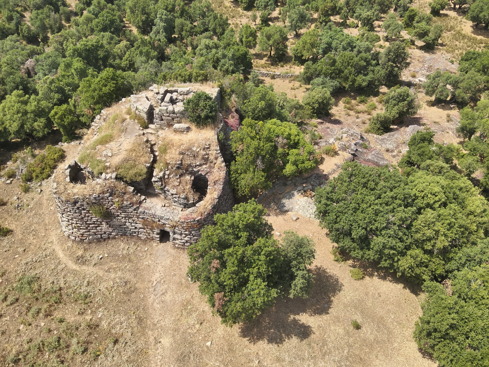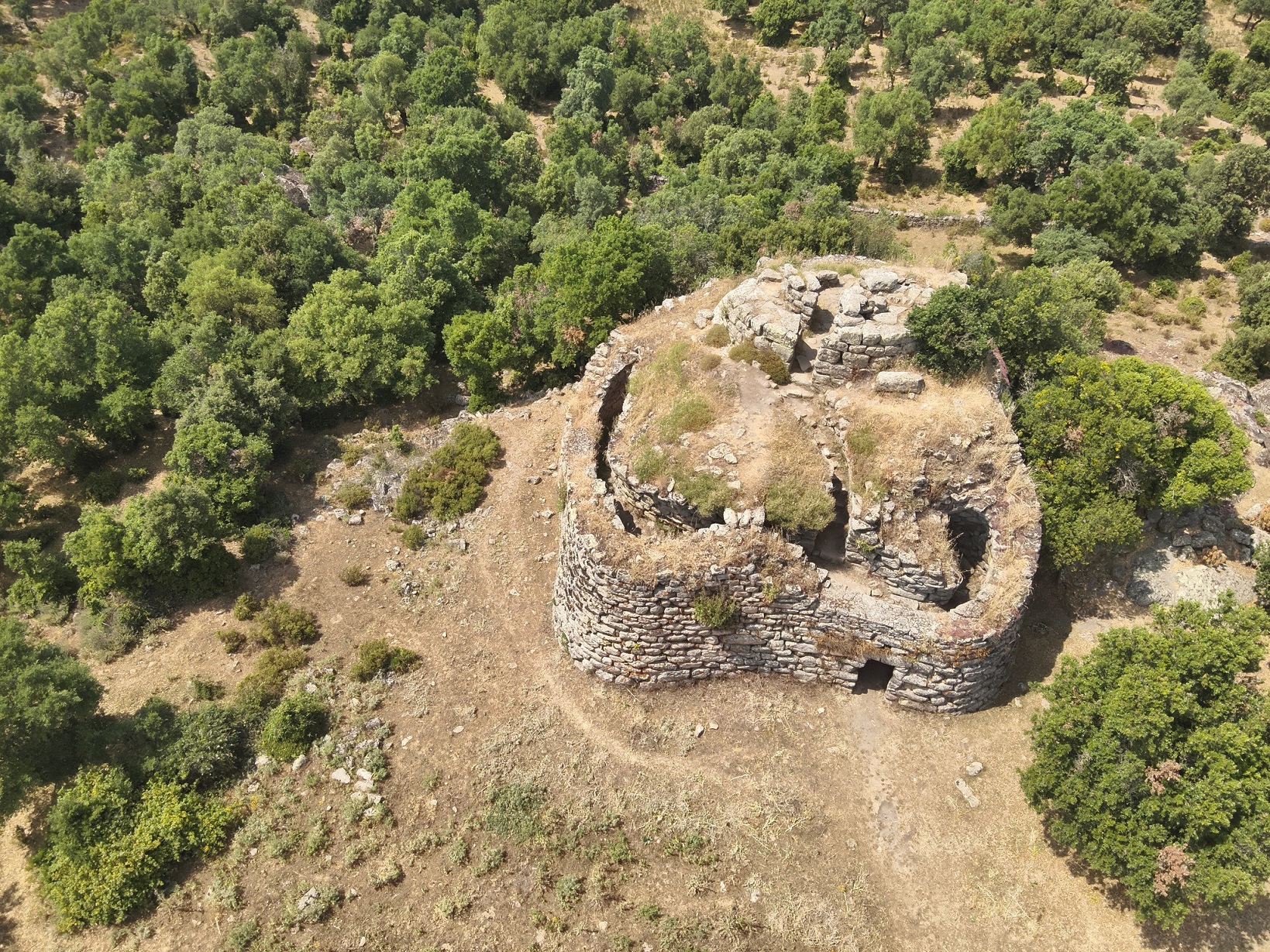 Il nuraghe, che sorge a circa 794 m d’altitudine, è di tipo misto, presenta cioè sia elementi dei nuraghi a corridoio che dei nuraghi a thòlos. È costituito da una torre centrale alla quale si addossa un bastione trilobato. Intorno al nuraghe è presente un villaggio di capanne e, a breve distanza, due tombe dei giganti e un dolmen.