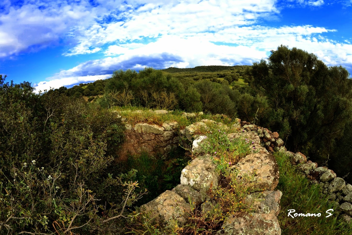 Sembra un nuraghe a corridoio, parzialmente diroccato e immerso nella vegetazione