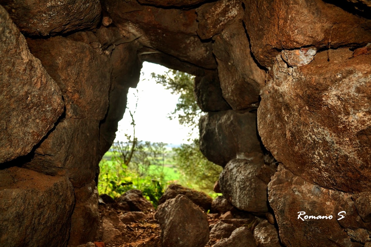 Nuraghe diroccato e avvolto da fichi d’india e vegetazione. Conserva il bel portale d’ingresso con l’architrave spaccato e pericoloso., la tholos e la scale verso il piano superiore.