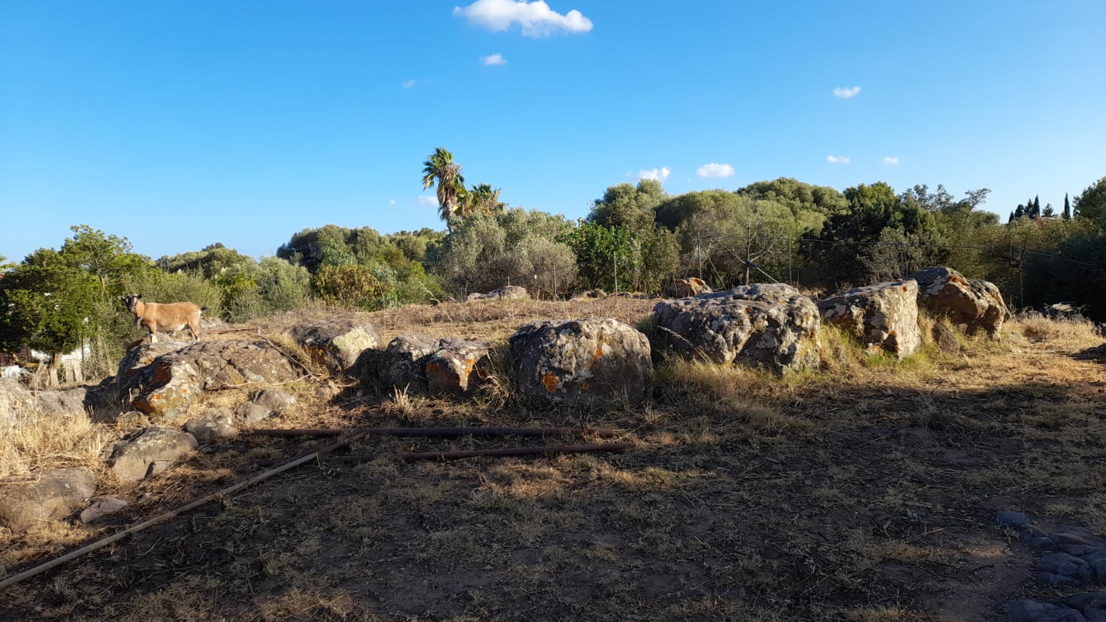 Localizzato all’interno di una proprietà privata ad uso abitativo. Si conservano due filari di base di torri nuragiche. All’interno della stessa proprietà sono presenti due menhir risultati fuori contesto