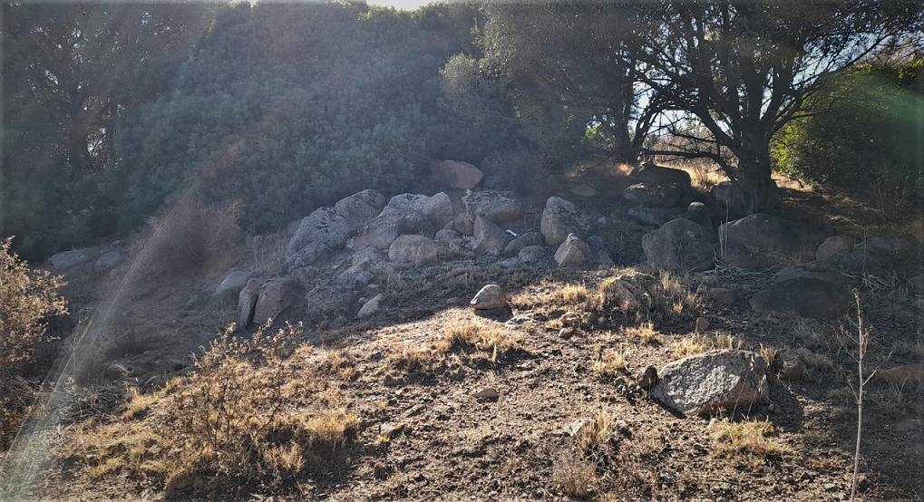 Del nuraghe in superficie non resta niente. Il visitatore vede solo un cumulo di terra con degli olivastri secolari