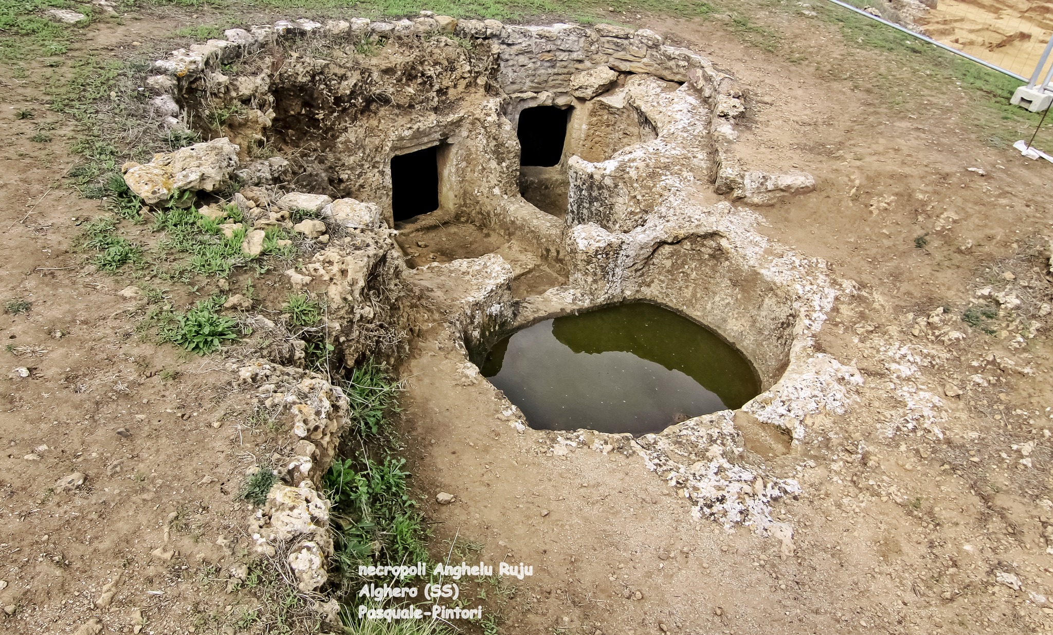 La necropoli è costituita da due gruppi, di 7 e 31 unità, di domus de janas ipogee; una soltanto è monocellulare mentre le altre hanno planimetrie più articolate e una di esse contiene fino a undici vani. Sono del tipo “a proiezione verticale e orizzontale”, ossia accessibili attraverso un pozzetto verticale oppure un dromos discendente, quasi sempre provvisto di gradini che immettono nel vestibolo.