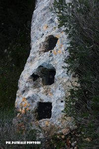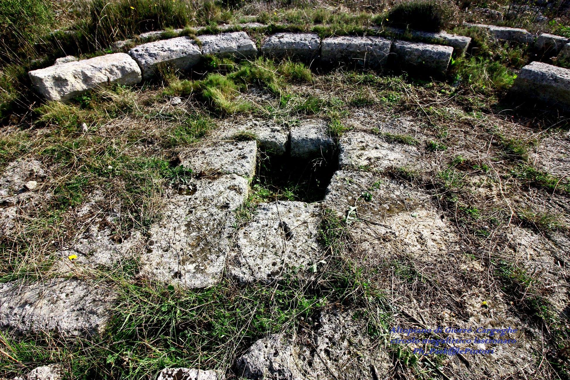 Area santuariale consistente in diversi ambienti circondati da una recinzione irregolarmente ellitica. Uno di questi edifici a pianta perfettamente rotonda con pavimento lastricato con lastre di calcare connesse con assoluta precisione. L’ accuratezza della costruzione e l’esistenza di un originario schema progettuale è dimostrata dalle tracce del segno circolare dell’impianto del primo filare sul pavimento, tracciato con una sorta di compasso.