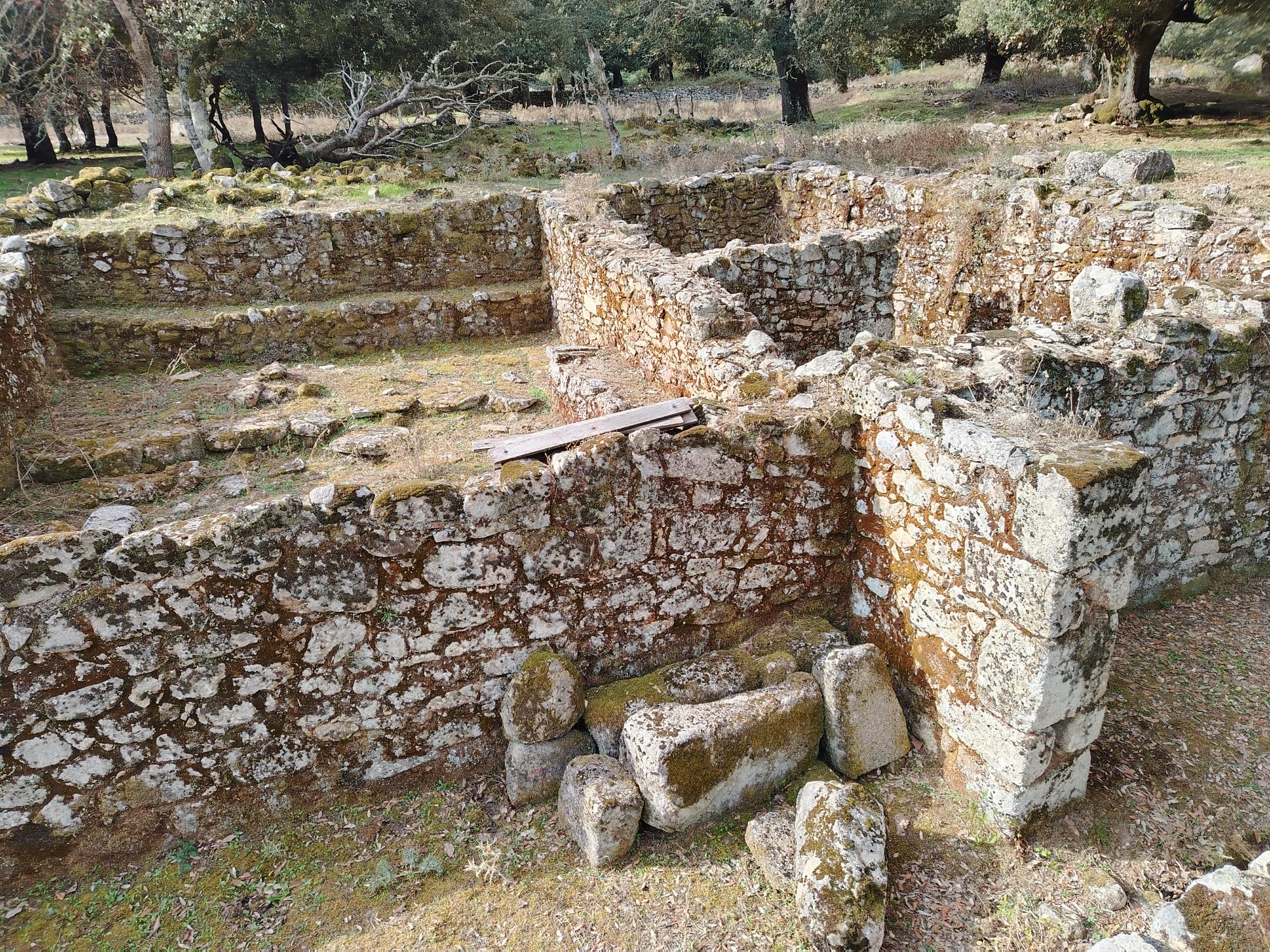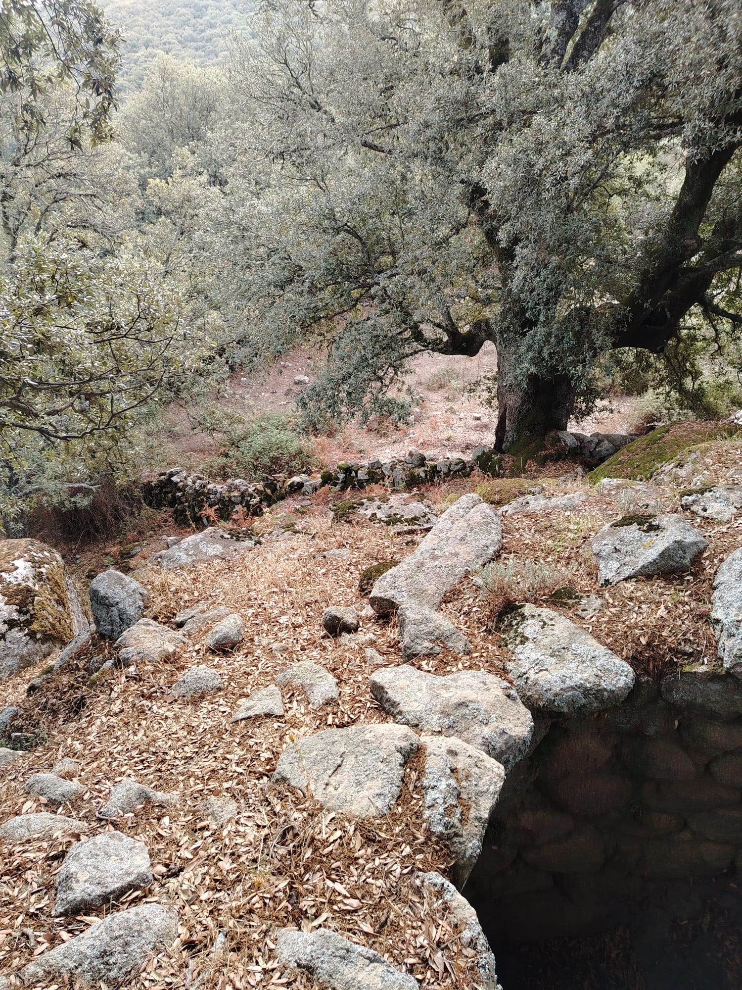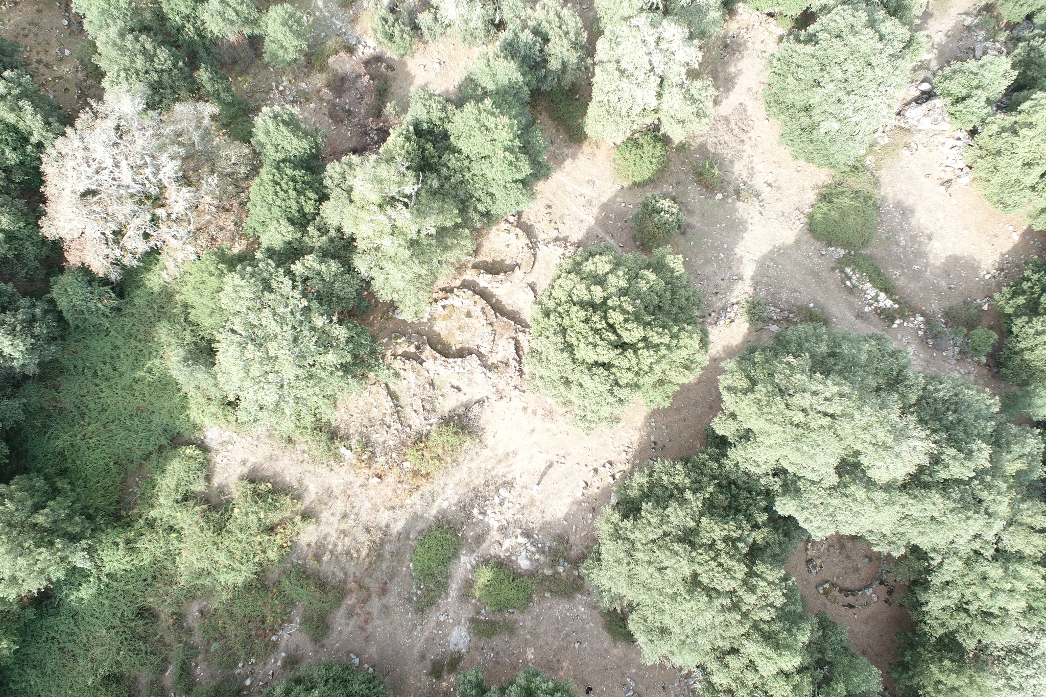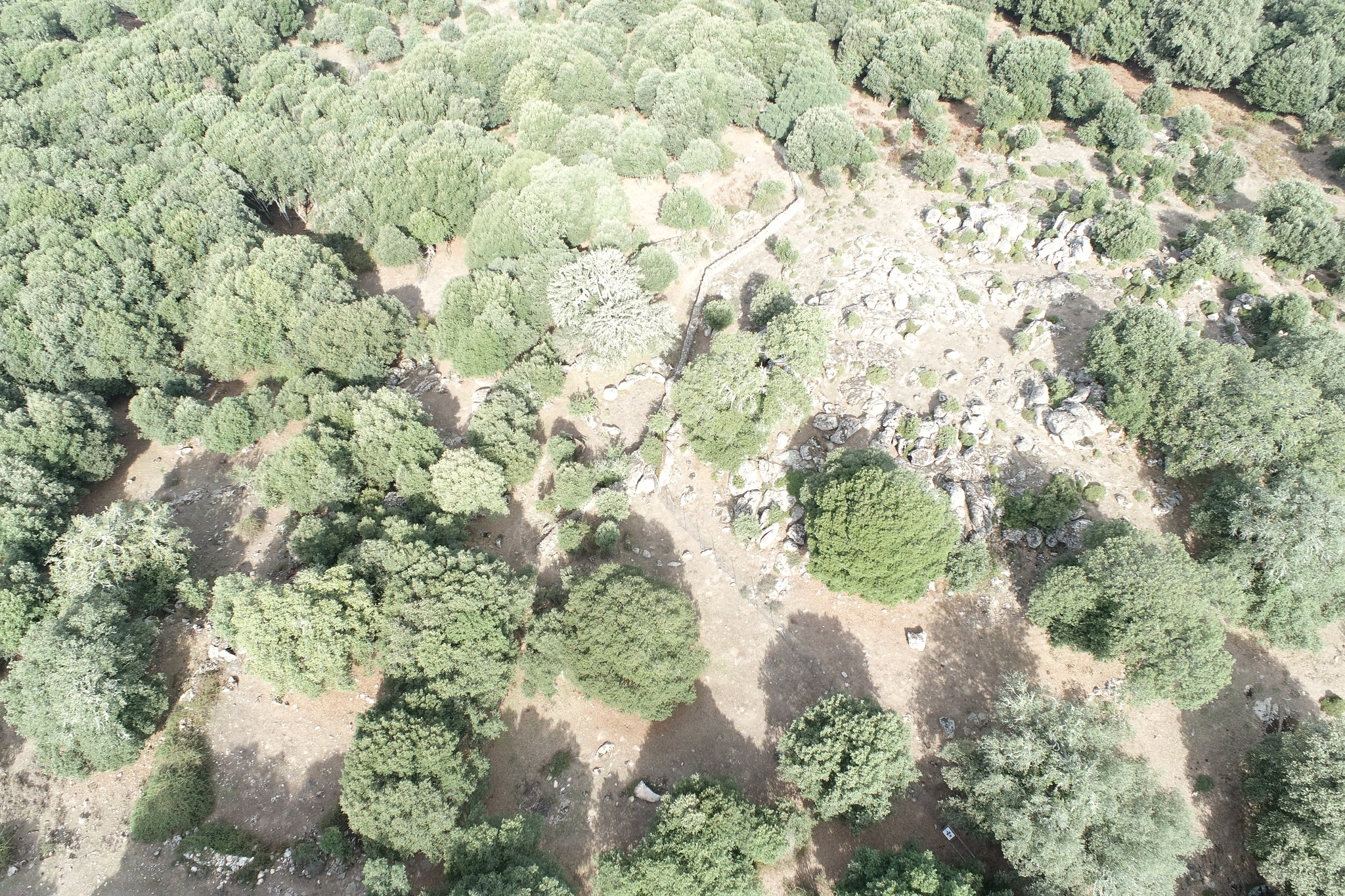 Il nuraghe colpisce per il fatto che risulta edificato su un enorme formazione granitica, l’accesso è attualmente possibile solo dalla sommità con una ripida scala. Il suo interno però risulta ostruito dai crolli. Tutto intorno al nuraghe vi sono i massi derivanti dai crolli dei paramenti esterni del nuraghe stesso. Poco distante si trova il pozzo anch’esso ostruito.