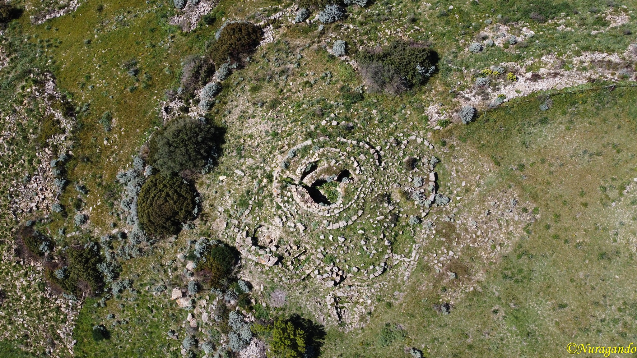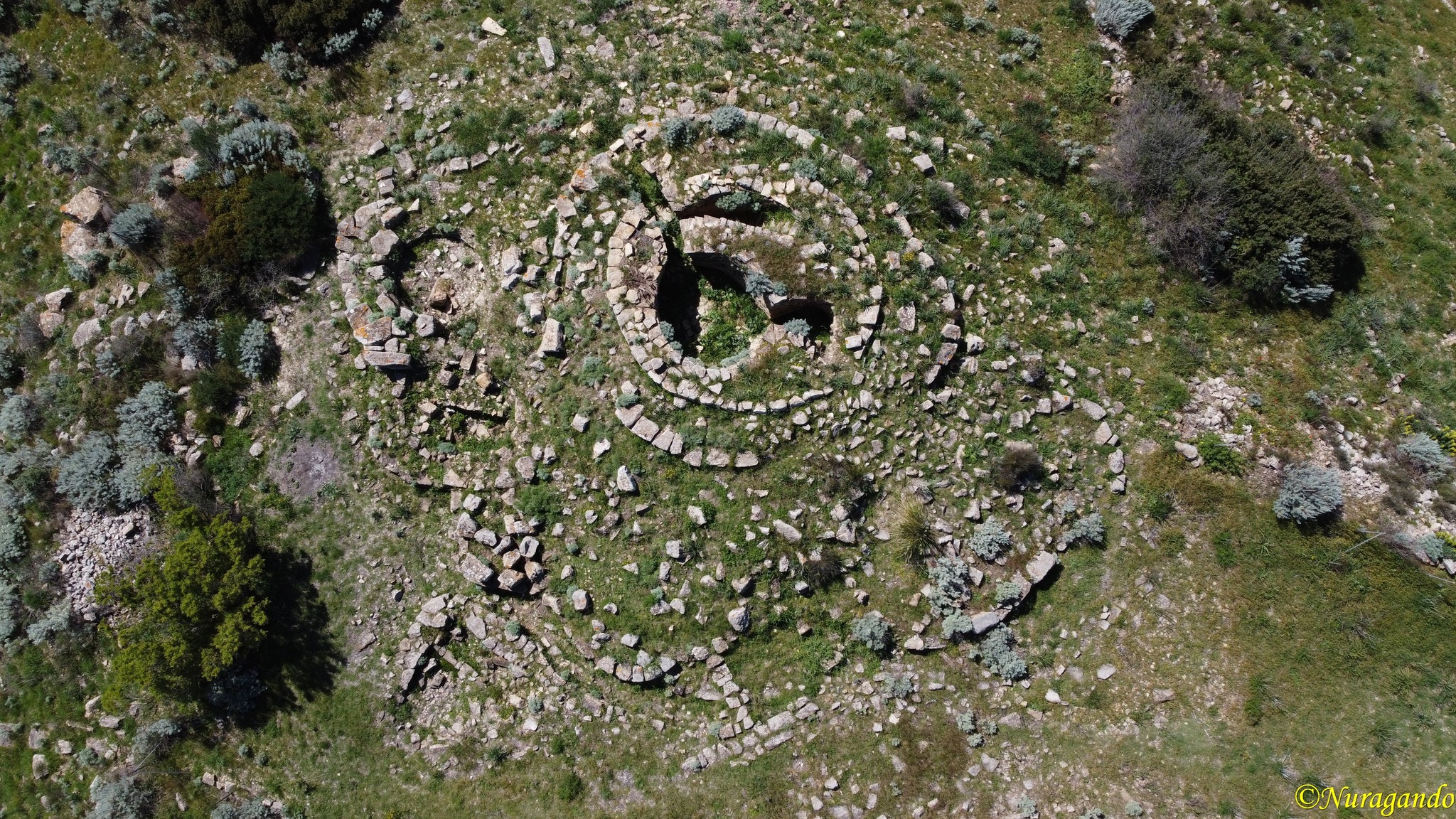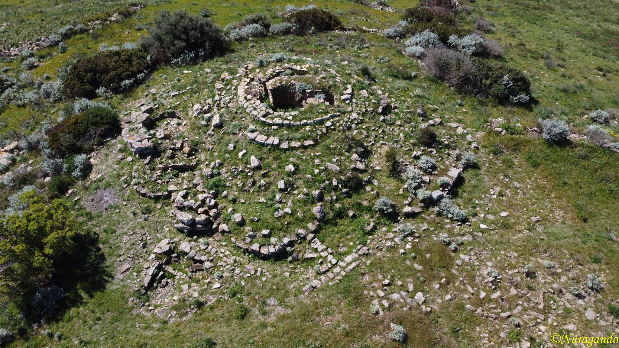 Intorno al nuraghe, oltre a resti delle capanne circolari del villaggio nuragico, vi sono cospicui resti di vani di forma rettangolare, forse pertinenti al riutilizzo di età punica e romana, riuso confermato anche dai ritrovamenti di ceramiche puniche ed attiche a vernice nera ascrivibili al V e IV secolo a. C. e di resti di embrici e stoviglie varie tra cui frammenti di ceramica pseudo aretina.