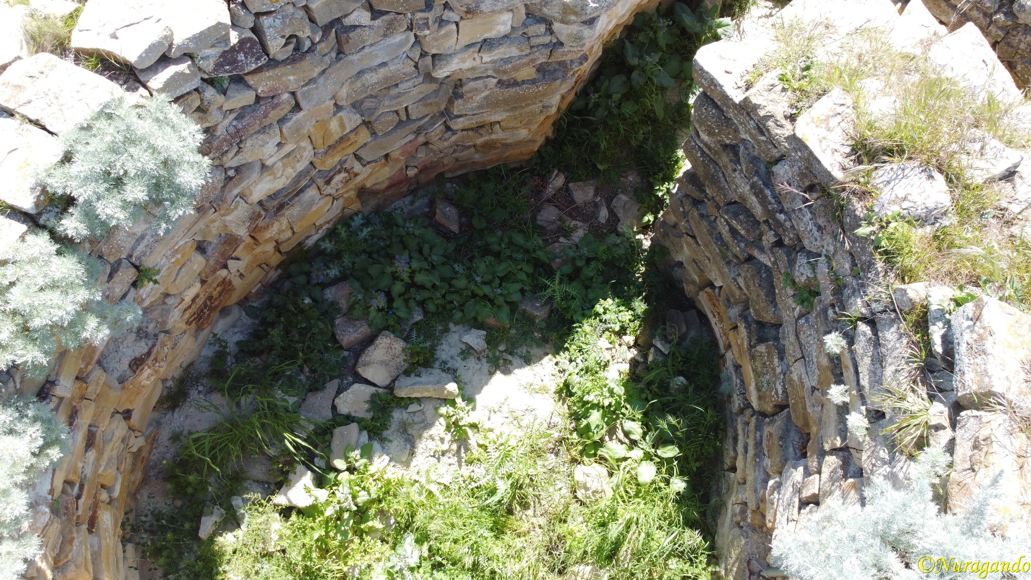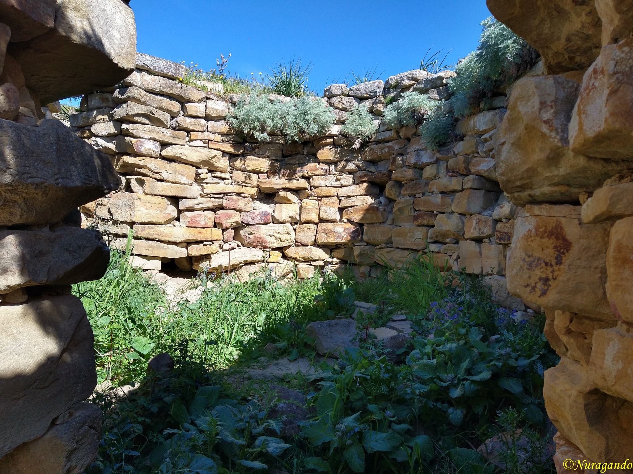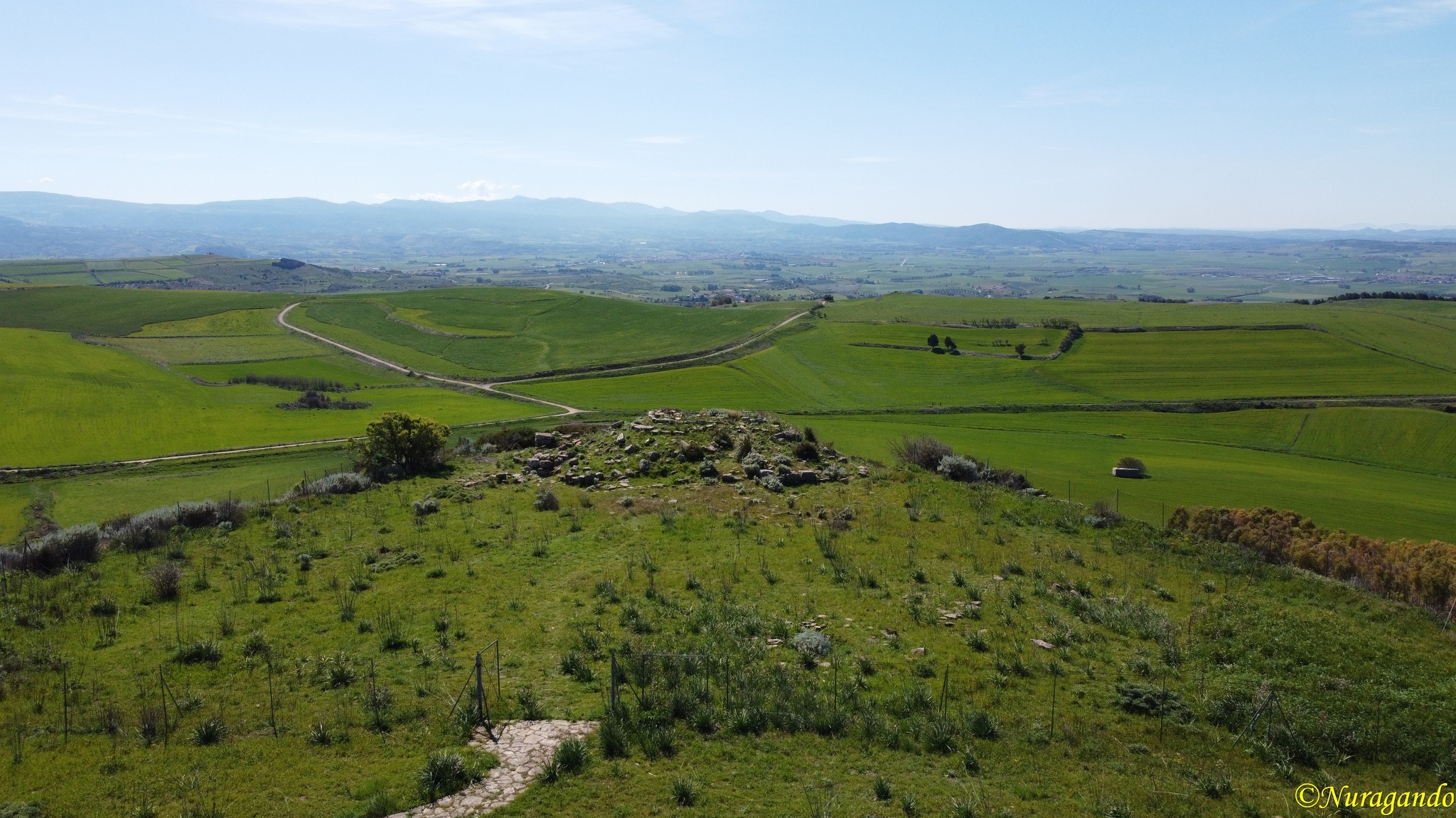 Intorno al nuraghe, oltre a resti delle capanne circolari del villaggio nuragico, vi sono cospicui resti di vani di forma rettangolare, forse pertinenti al riutilizzo di età punica e romana, riuso confermato anche dai ritrovamenti di ceramiche puniche ed attiche a vernice nera ascrivibili al V e IV secolo a. C. e di resti di embrici e stoviglie varie tra cui frammenti di ceramica pseudo aretina.