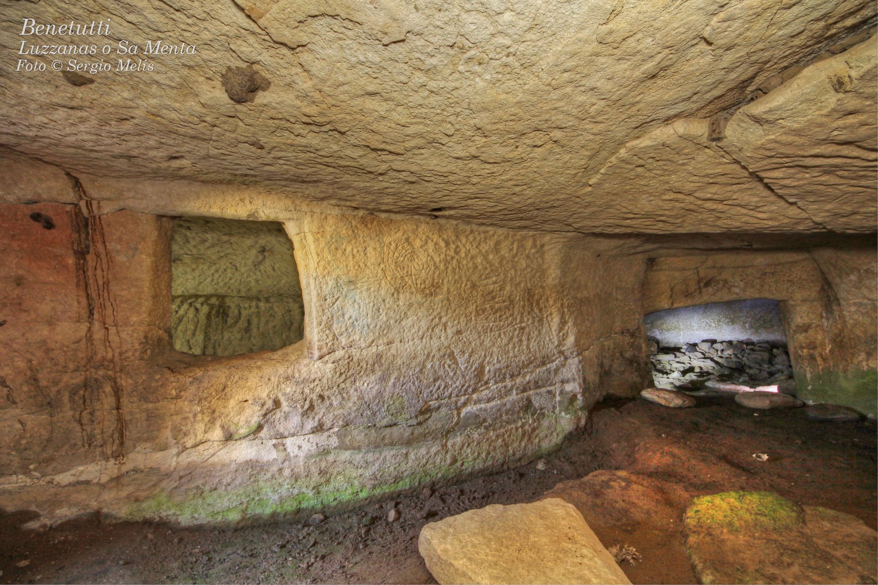 Le domus de janas Luzzanas si trovano vicino al fiume, e vi si può entrare solo dall’alto da un ingresso a pozzo. Dopo essere discesi ci troviamo in un vano dove sono presenti due portelli, che conducono a due tombe, una delle quali è formata da un’anticella più tre cellette di cui solo due accessibili. In questa Domus c’è un’incisione molto particolare che raffigura un labirinto, ma potrebbe essere stato realizzato in epoca romana.