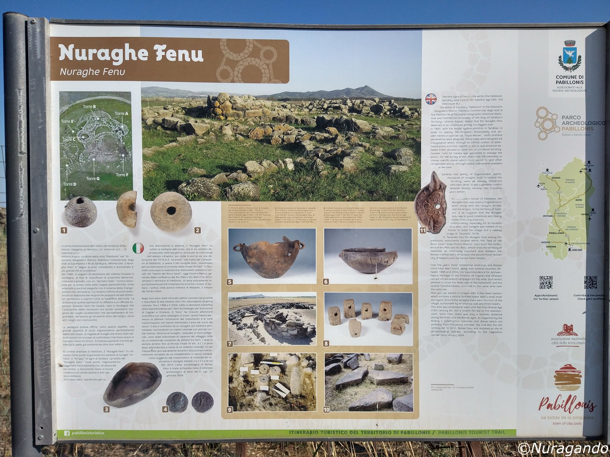 Nuraxi Fenu all’interno del quale, durante gli scavi, furono ritrovati resti di un focolare e ossa di animali, frammenti di ceramica romana ed una moneta databile al III sec d.C. che permette di ipotizzare una sporadica occupazione del sito tra il II ed il III secolo d.C. Un violento incendio segnò la fine dell”occupazione nuragica anche se fu sporadicamente frequentato nel periodo punico e romano.